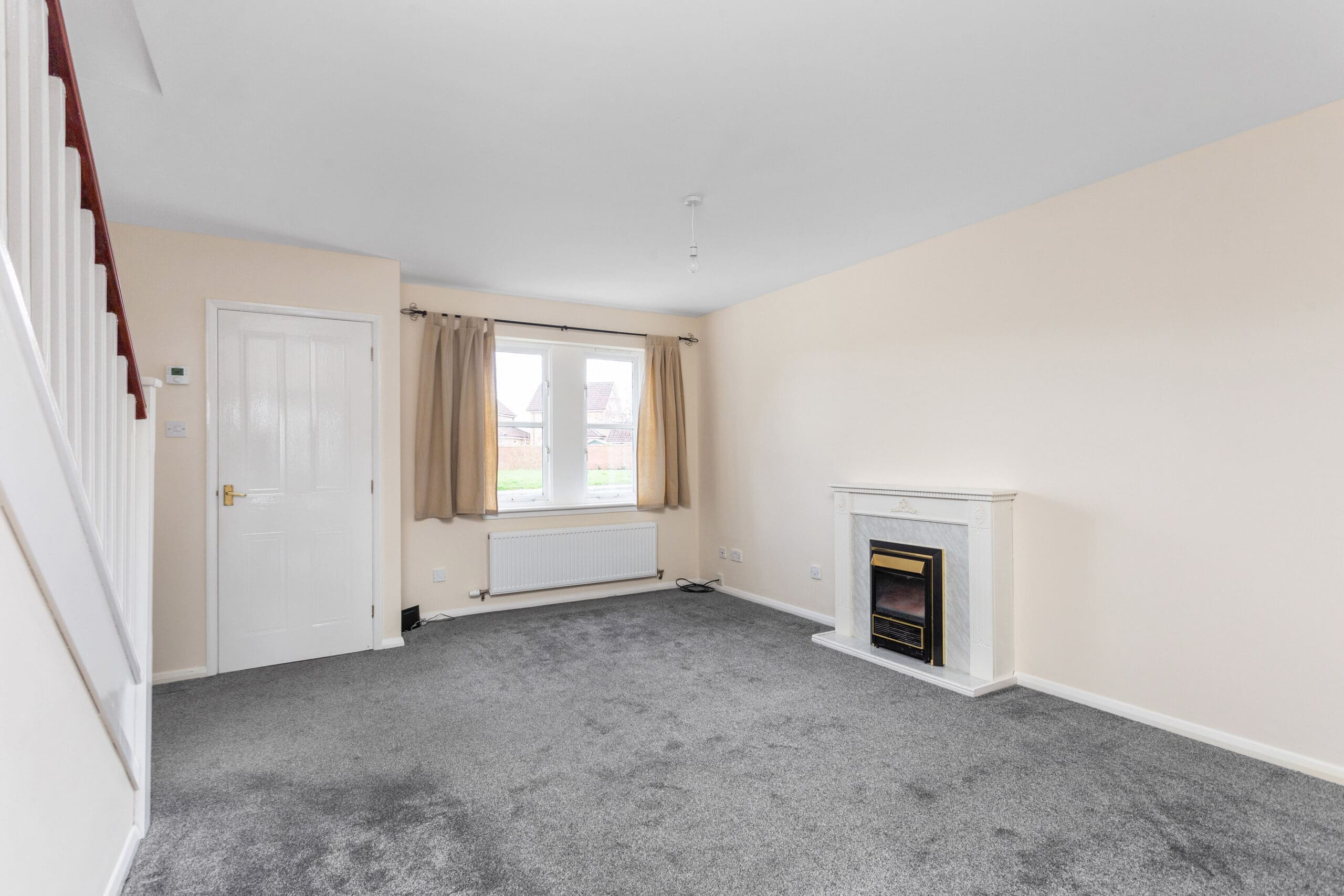 The property welcomes you with an inviting exterior, flanked by a neatly manicured front garden which is laid to lawn and an adjacent driveway, ensuring ample off-street parking for residents and visitors alike. The vestibule entrance sets the tone for the warmth within, guiding you into a light-filled lounge adorned with fresh, neutral decor and sumptuous grey carpeting, centered around a tasteful electric fire.