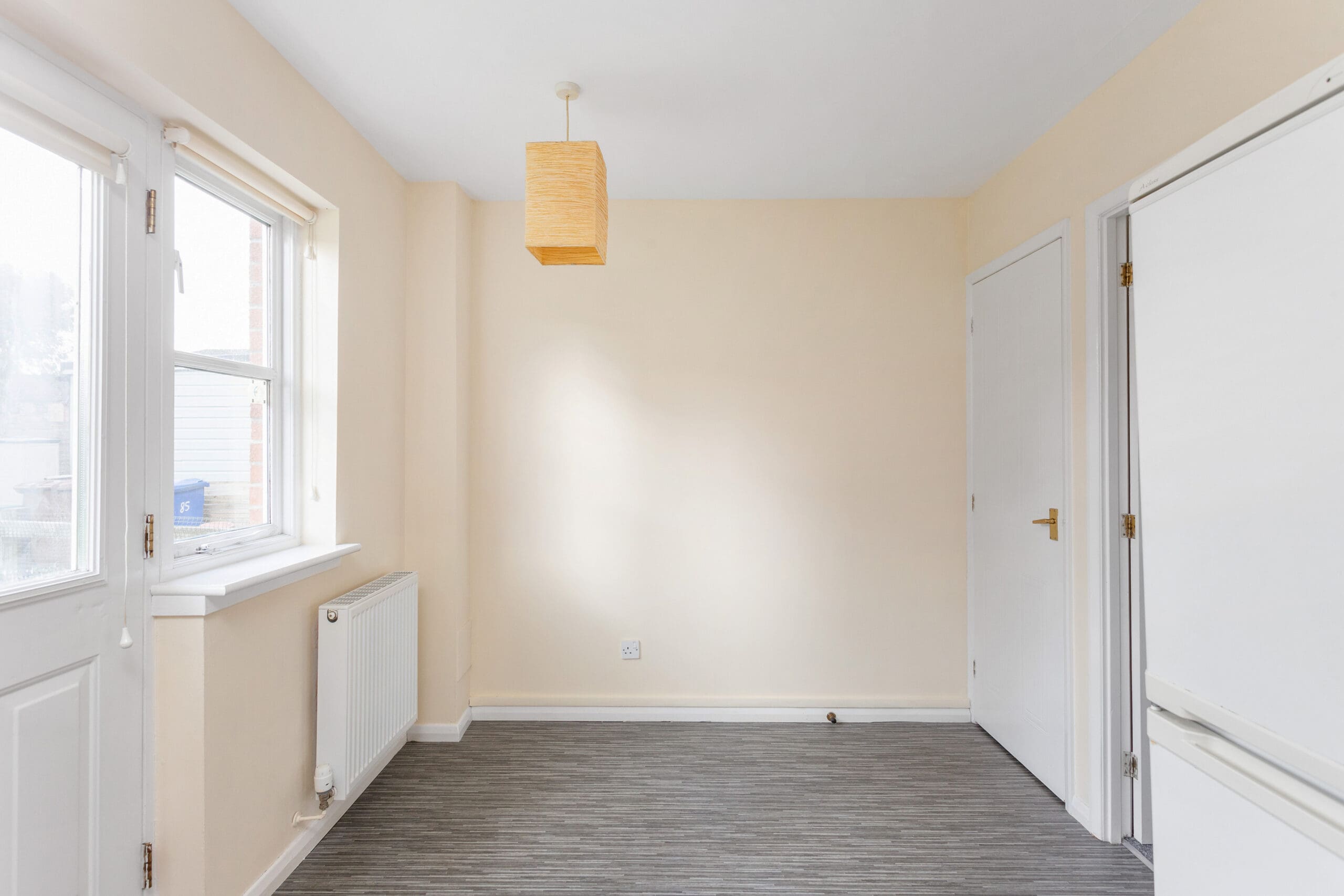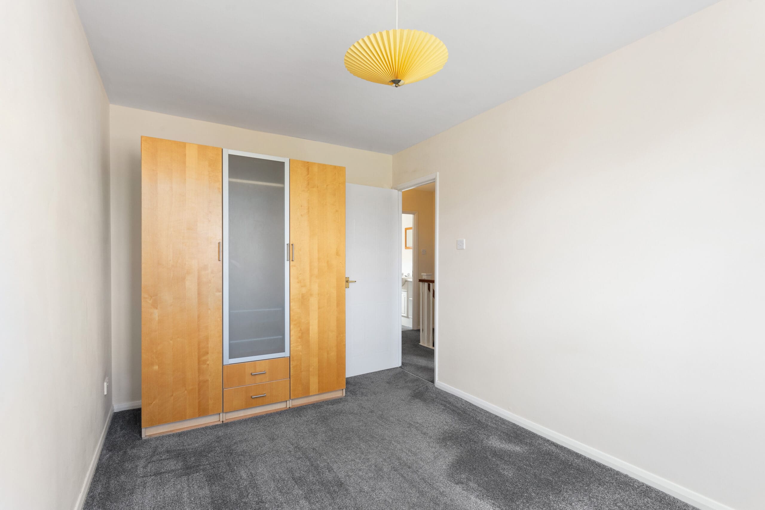 Upstairs, the three bedrooms promise comfort and serenity. The master and second bedrooms are spacious doubles, with the former boasting a fixed wardrobe. The third bedroom, a well- proportioned single, includes built-in storage for all your belongings to be neatly stored away. A family bathroom, echoing the home's cleanliness with white tiling and an opaque window, completes the upper level.