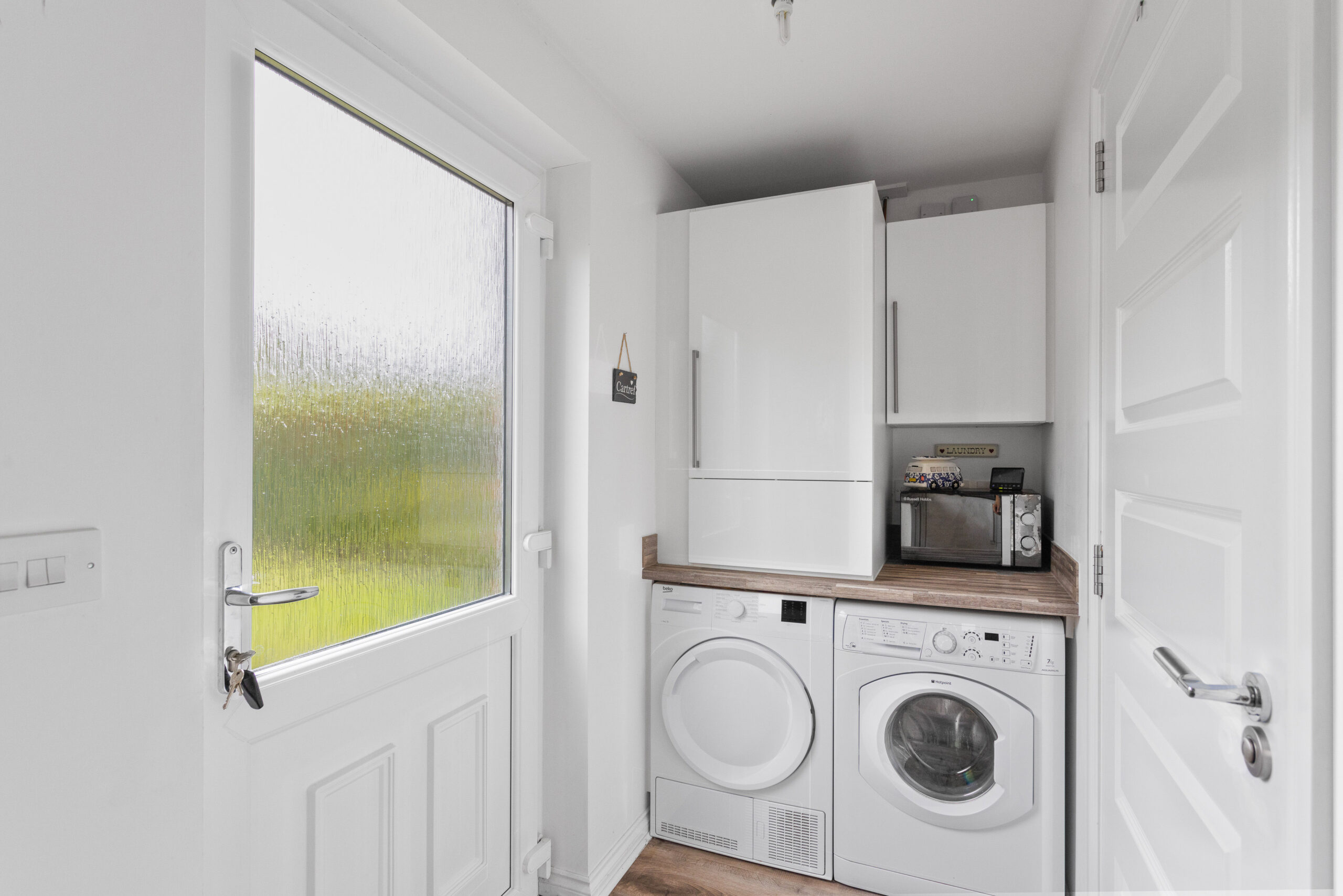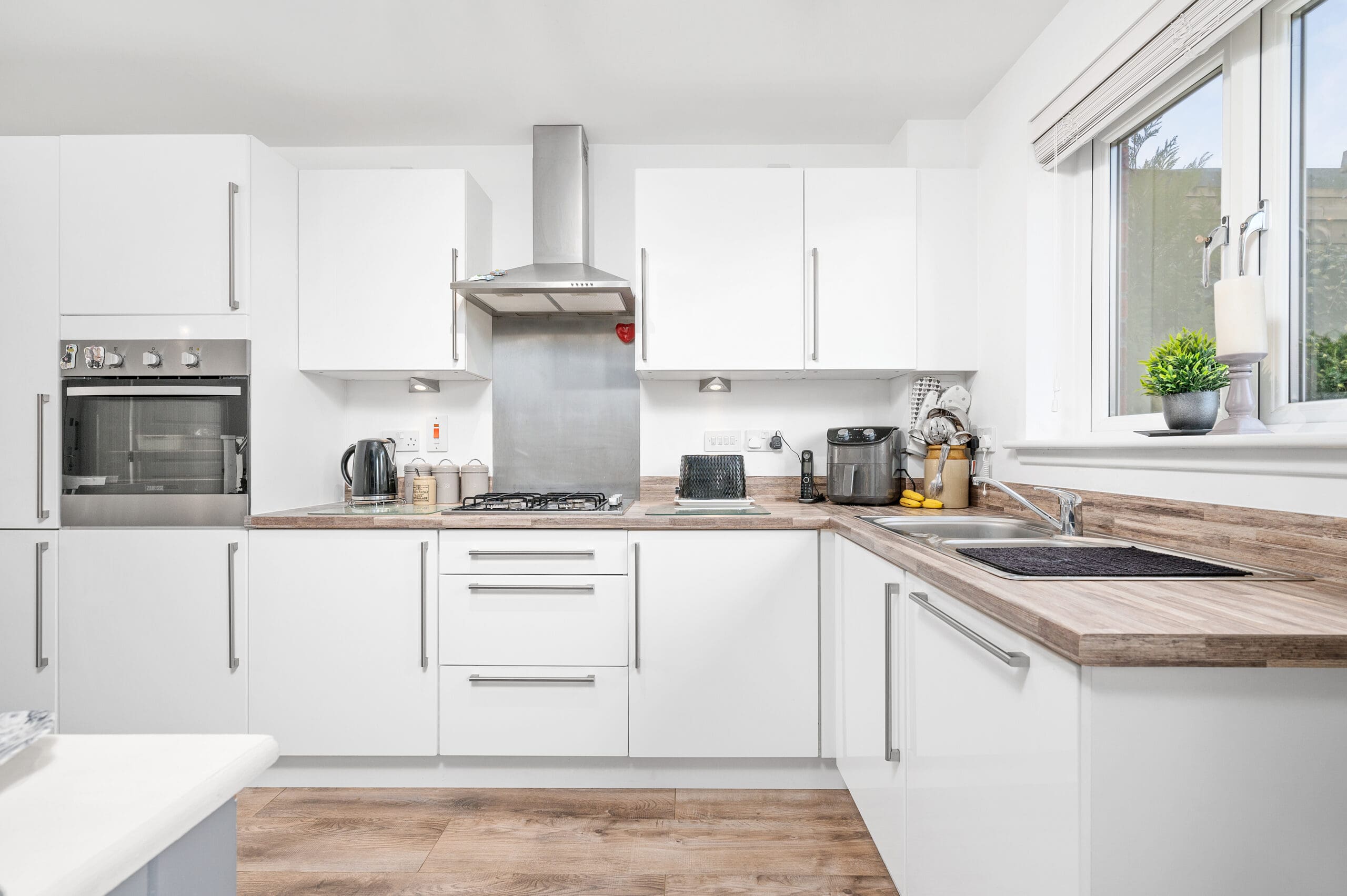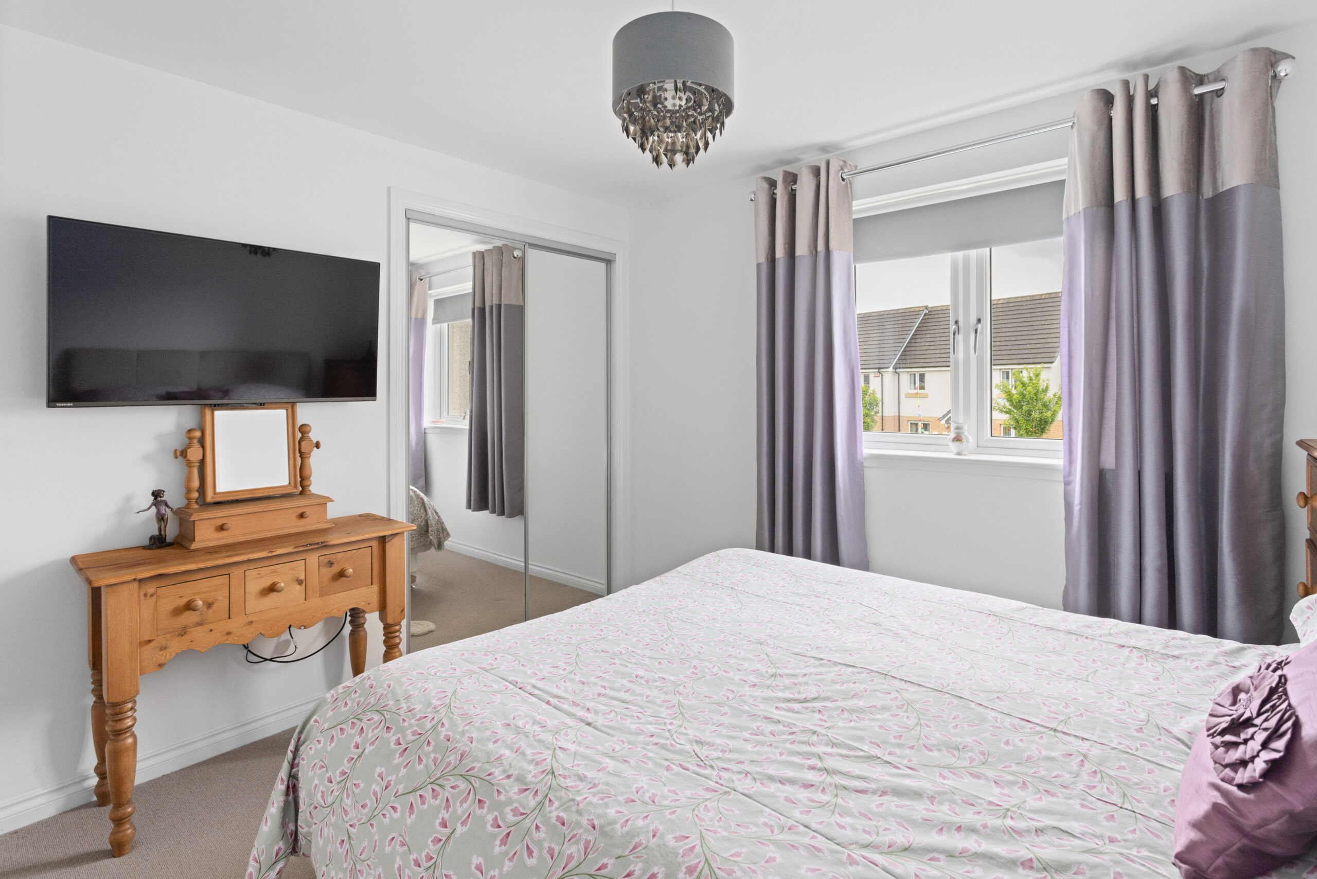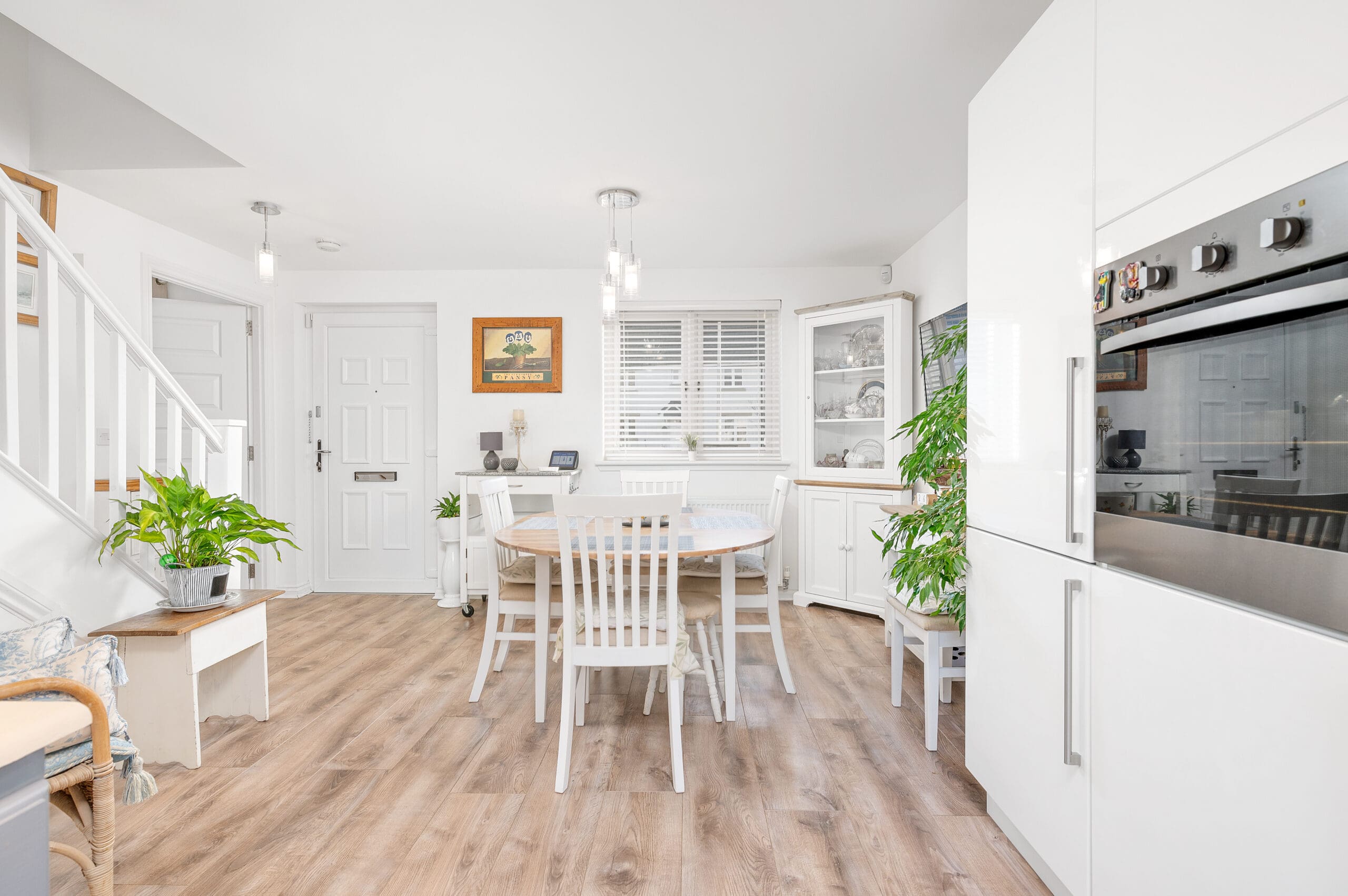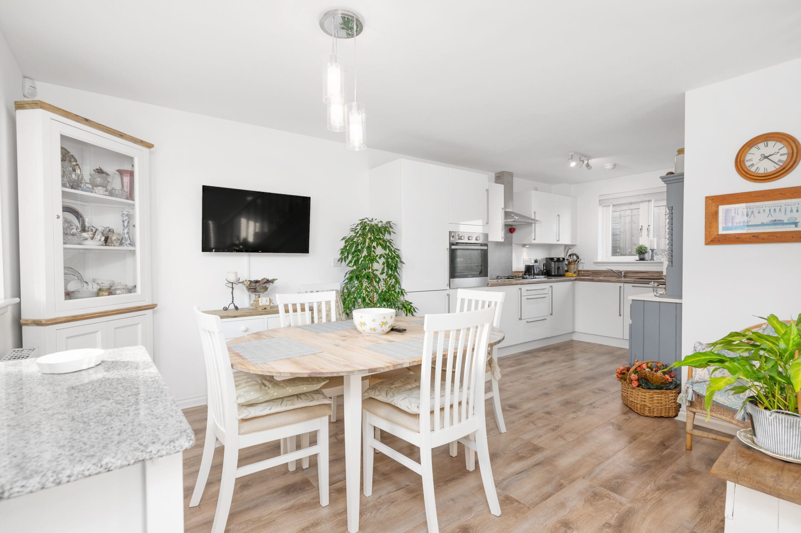 • Schedule Text: Nestled within the charming village of Kirkliston on the outskirts of Edinburgh, 24 Pikes Pool Drive offers an immaculately presented three-bedroom, 3-bathroom home, perfect for families seeking a balance of village charm and urban convenience. This delightful property boasts fresh neutral decor and contemporary finishes throughout, creating a warm and inviting atmosphere. Upon entering the residence, one is greeted by a welcoming exterior with maintenance-free artificial grass, leading into a stunning open-plan kitchen/diner that serves as the heart of the home. The modern kitchen is equipped with sleek white high gloss base and wall units, integrated appliances, and stylish laminate flooring that extends into the utility and lounge area. A handy utility space offers additional convenience, including a free-standing washer and dryer. The utility area provides access to the rear garden and the conveniently located cloakroom with white w.c and sink. The lounge is a bright, open space with a window overlooking the front and French doors opening to the garden, complete with a wall-mounted electric fire for cosy evenings. A lovely space to relax and unwind. The upper landing, bathed in natural light, grants access to three carpeted bedrooms, each a testament to comfort and tranquillity. The master bedroom enjoys space for a king size bed and the luxury of an en-suite shower room and fitted mirror wardrobes, while bedroom 2 also hosts a king size bed and built-in mirror wardrobes with sliding doors. Bedroom 3 is another generous, light and airy bedroom located to the rear of the property and offers ample space for free-standing bedroom furniture. A family bathroom featuring a white three-piece suite with a shower above, tasteful grey textured tiling, and a heated stainless steel towel rail, adds to the appeal. Externally, the property benefits from a fully enclosed rear garden with a lush lawn and paved patio area, alongside a garden shed for additional storage. An allocated parking space and ample visitor parking are available to the rear. Equipped with gas heating, double glazing, and an alarm system, this move-in-ready home is the ideal setting for a family to begin their new chapter in comfort and style.