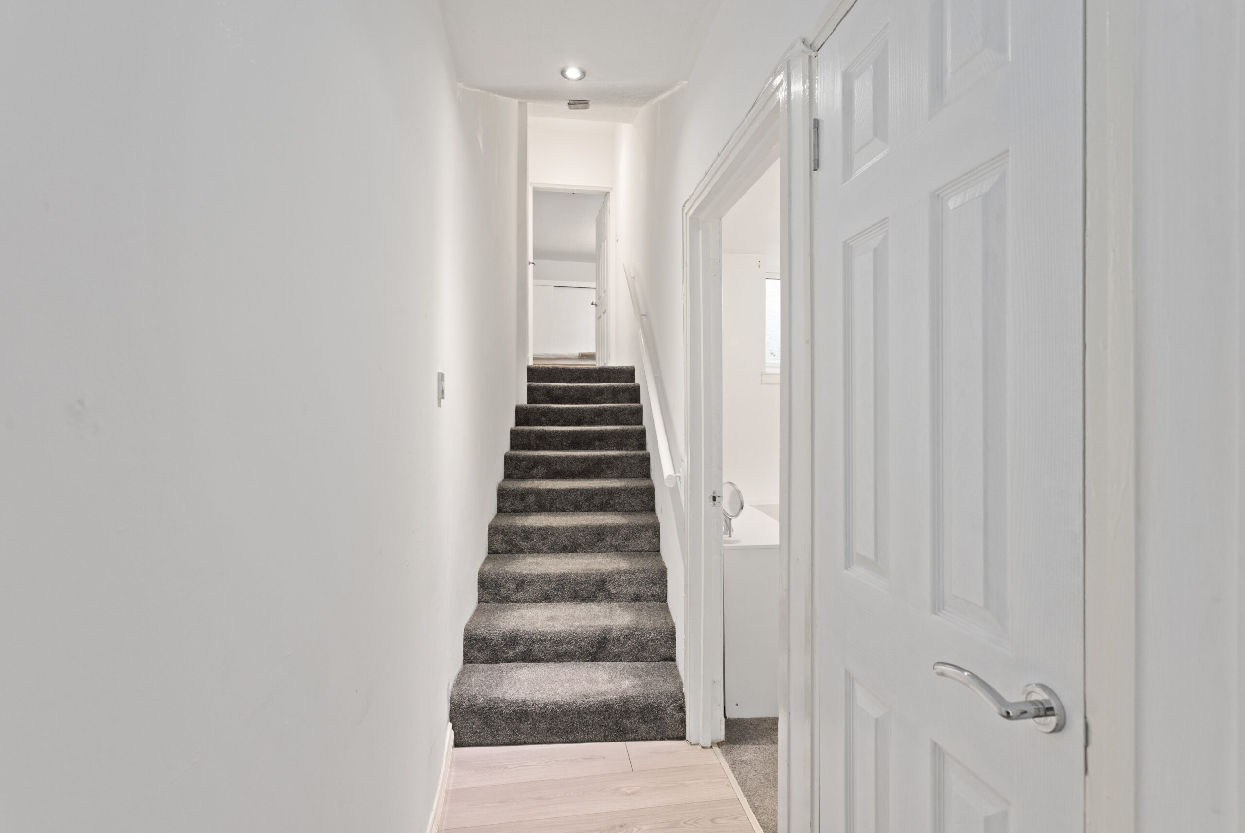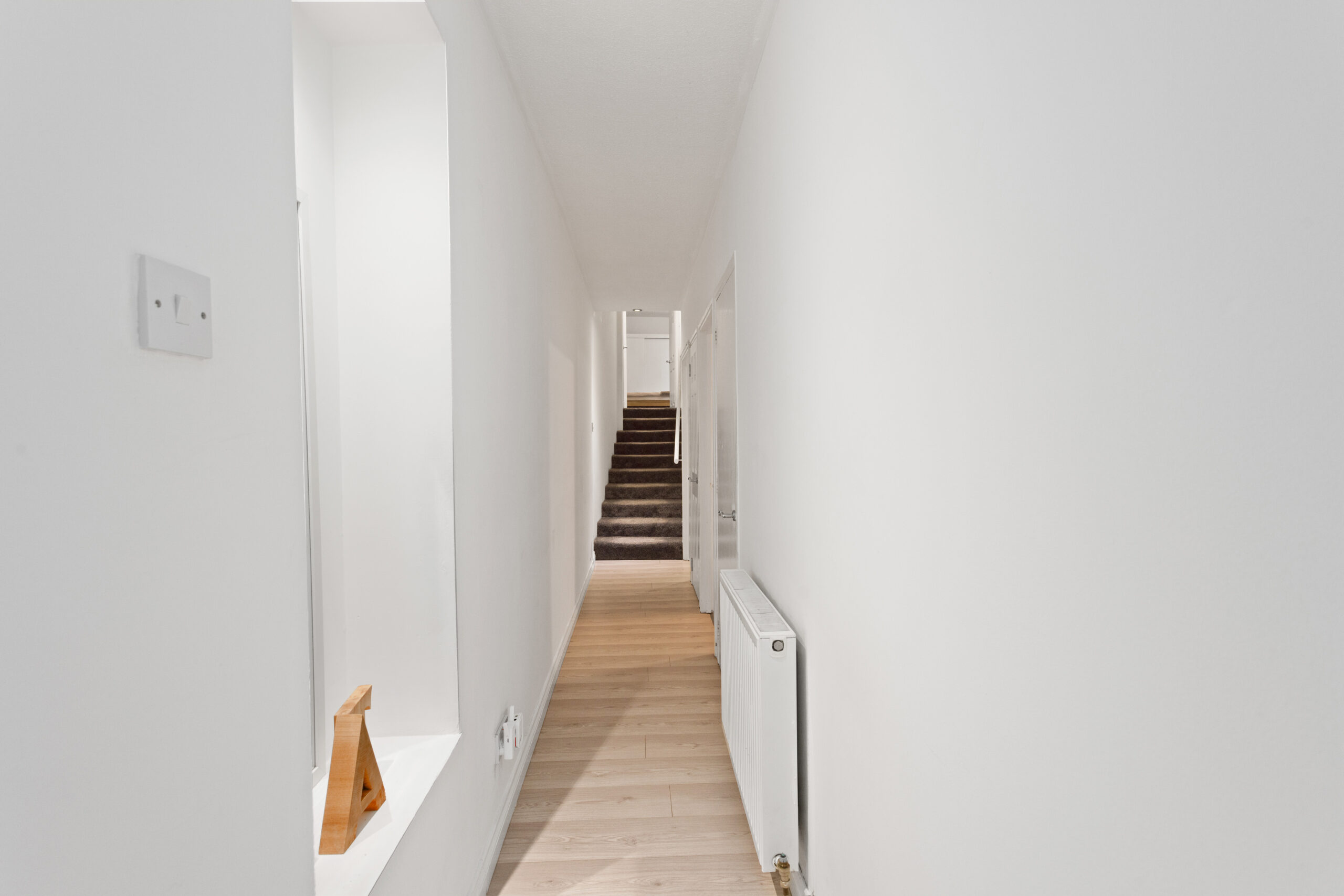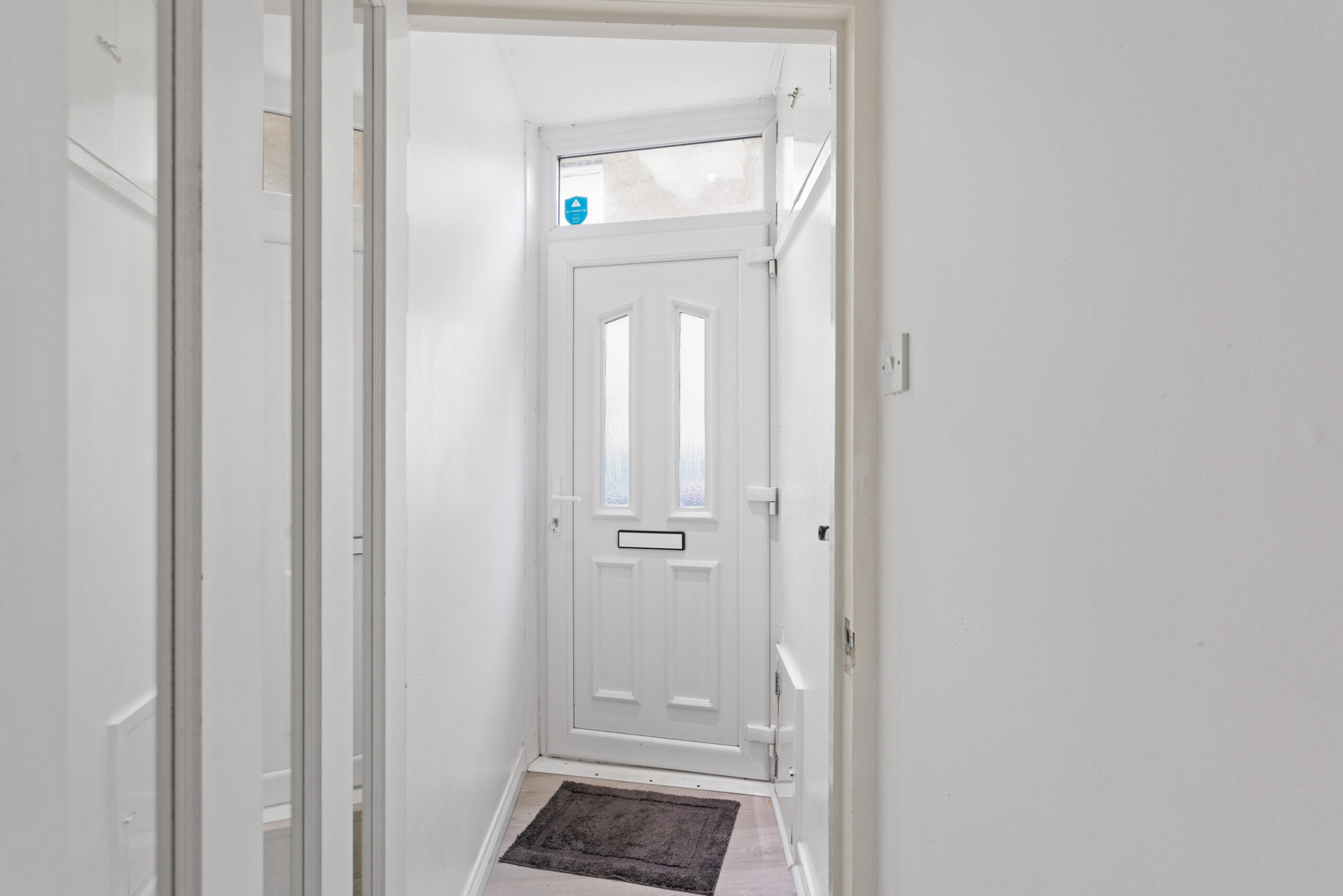 Upon entry through the UPVC double-glazed door, you are welcomed by a warm vestibule leading into a hallway adorned with laminate flooring and not one, but three storage cupboards offering ample space for all your essentials.
