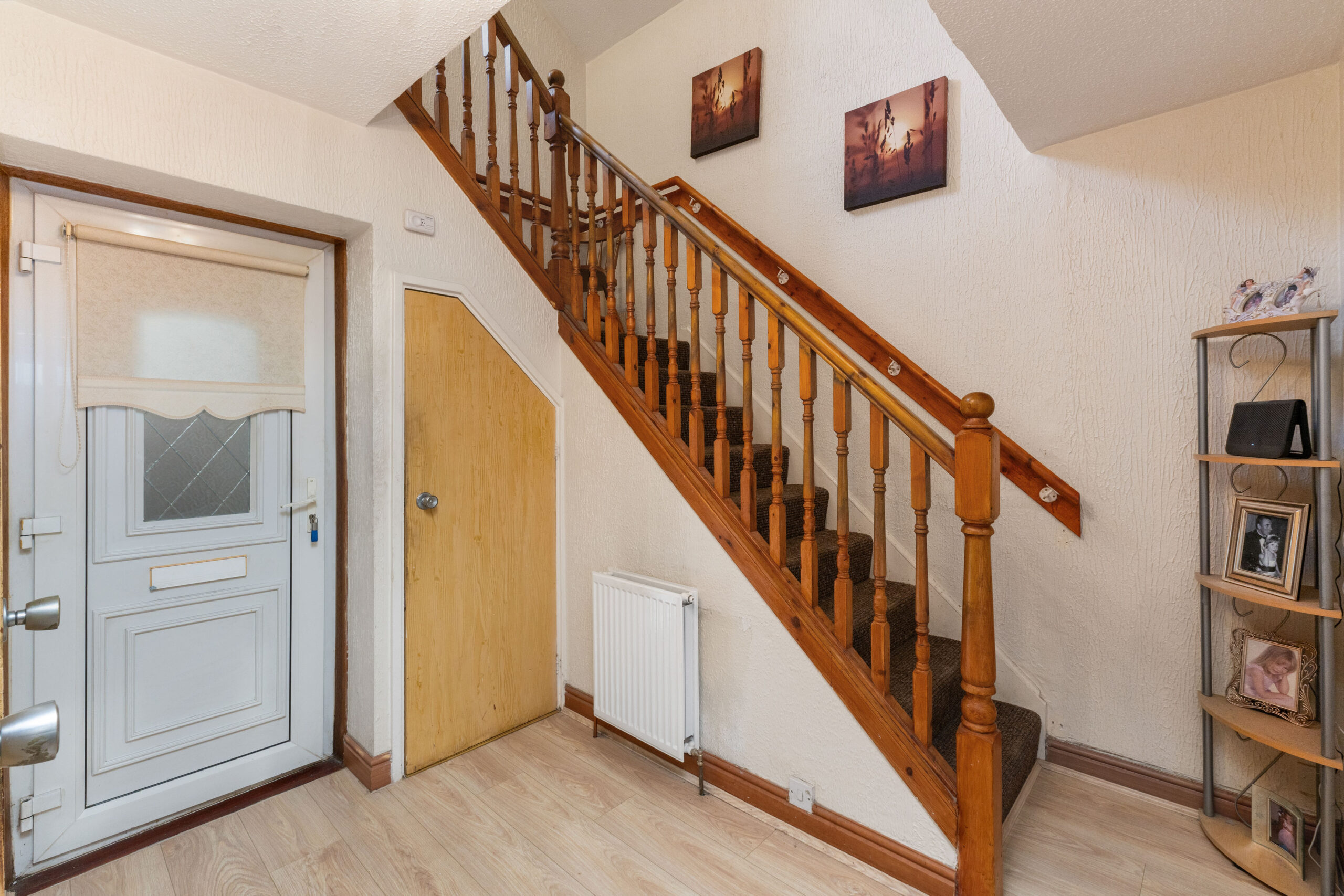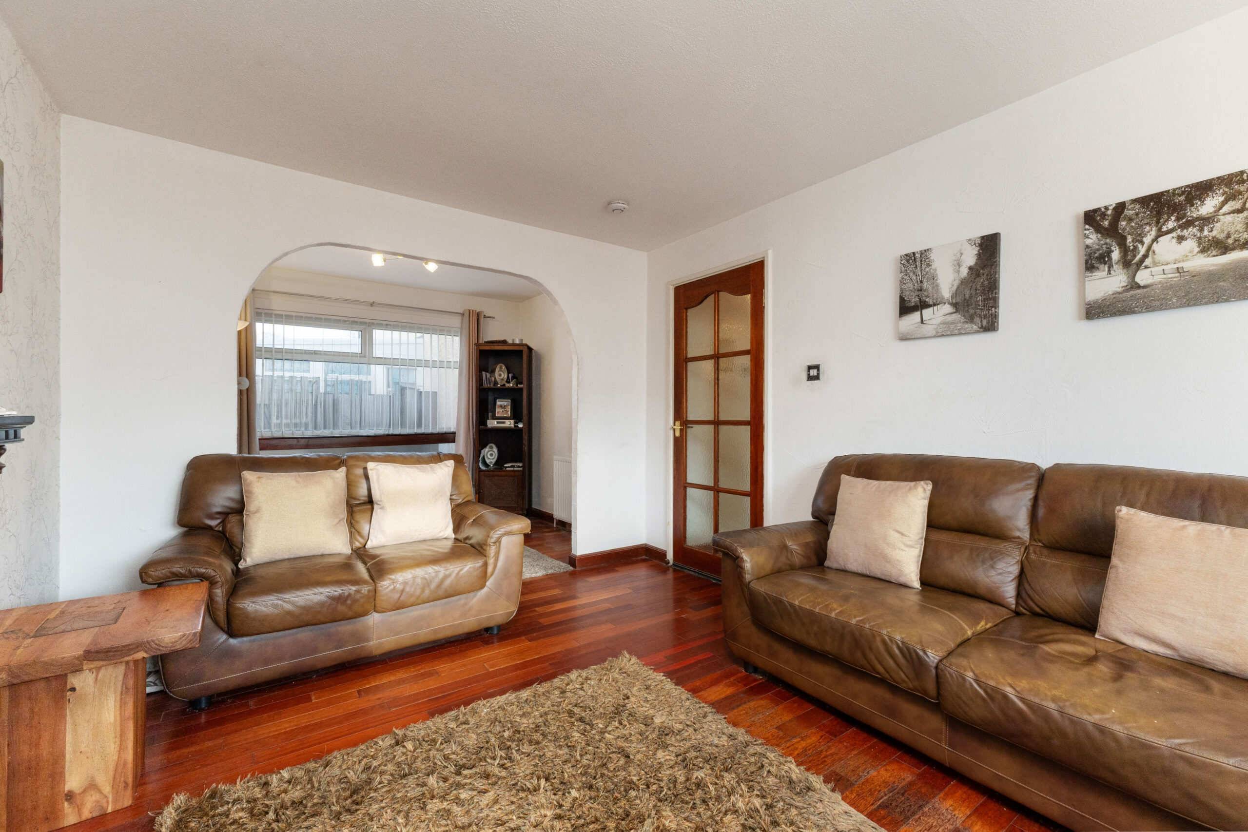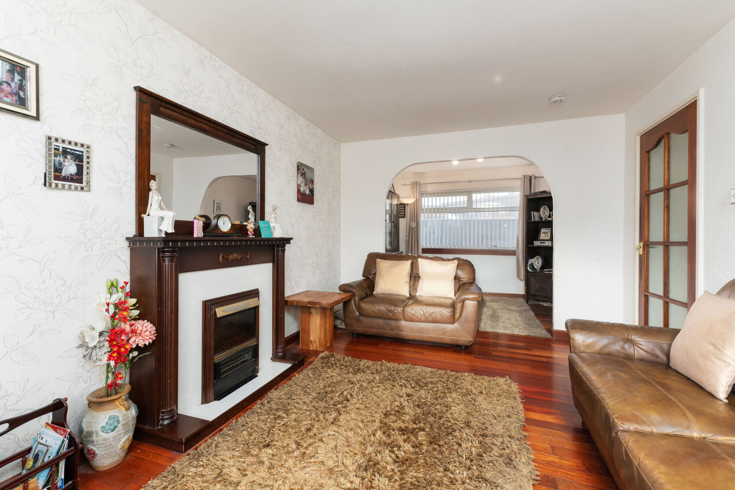 Boasting three well-proportioned bedrooms, two bathrooms and an array of storage solutions, this superb house is designed with family life in mind. Upon entering, the hallway directs you to the heart of the home, a spacious dual-aspect lounge/diner graced with an archway that seamlessly delineates relaxation and dining zones. The living area, with its inviting electric fire, laminate flooring, and ample space for a large dining table, becomes an ideal setting for both cosy evenings and lively gatherings.