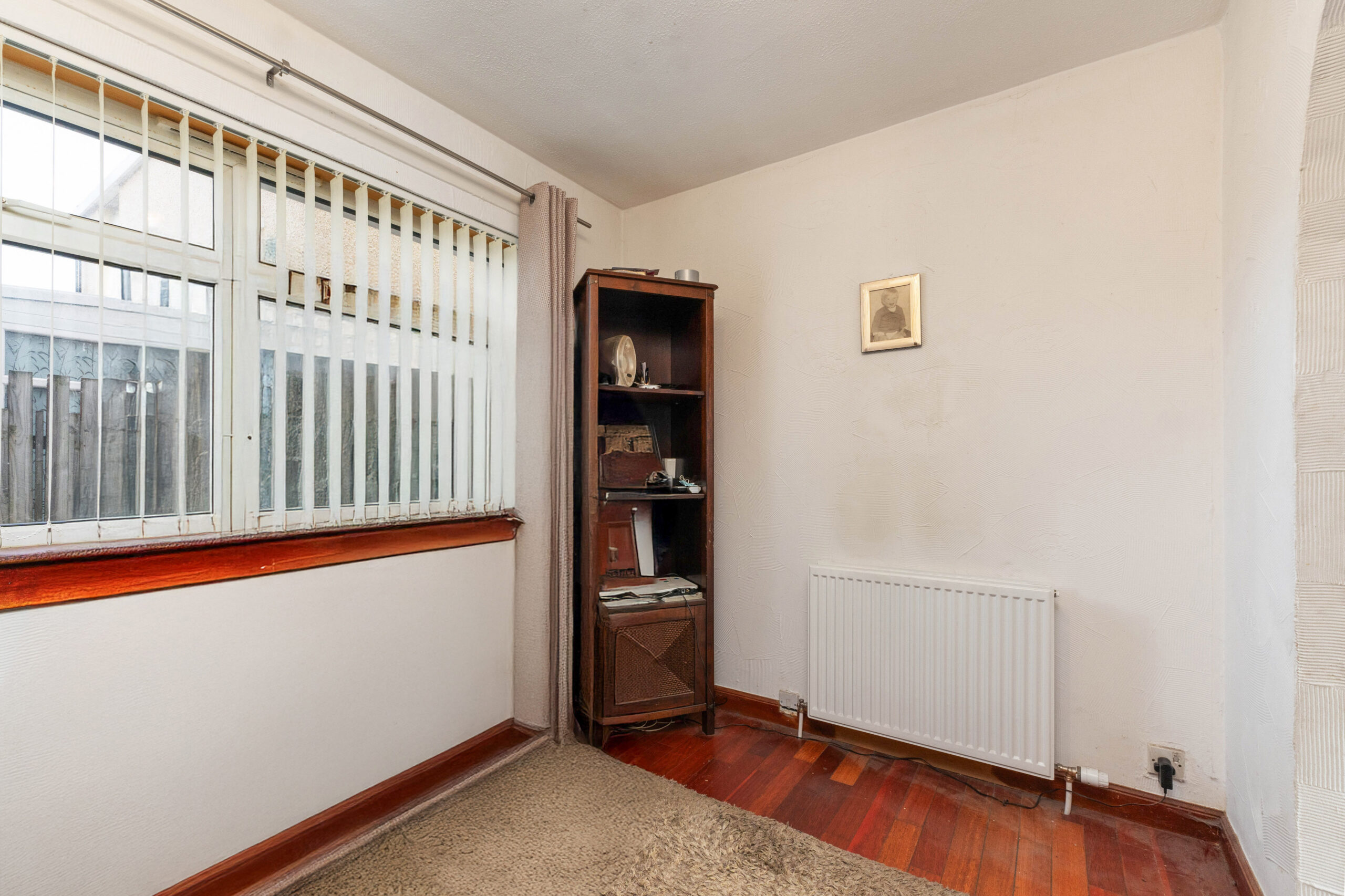 Extras: Floor coverings, window fittings, light fittings, integrated oven, hob, dishwasher, electric fire and the garden shed (no warranty)