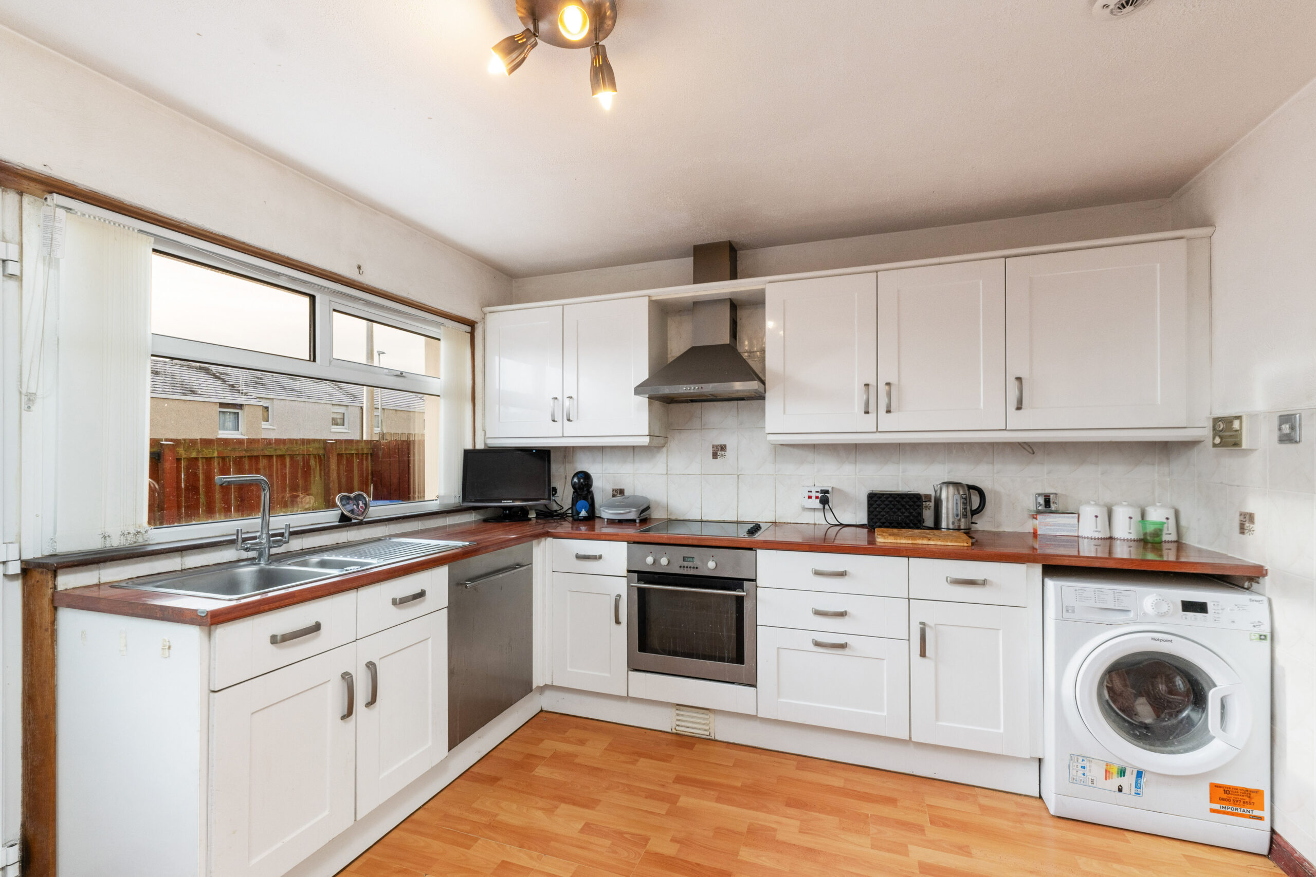 • Schedule Text: Welcome to 4 Granby Avenue, a delightful, terraced home nestled in the heart of Howden, Livingston. This residence presents a fantastic opportunity for families and first-time buyers seeking a family home within a stone's throw of local schools, the bustling town centre, and seamless motorway connections. Boasting three well-proportioned bedrooms, two bathrooms and an array of storage solutions, this superb house is designed with family life in mind. Upon entering, the hallway directs you to the heart of the home, a spacious dual-aspect lounge/diner graced with an archway that seamlessly delineates relaxation and dining zones. The living area, with its inviting electric fire, laminate flooring, and ample space for a large dining table, becomes an ideal setting for both cosy evenings and lively gatherings. The practical kitchen awaits with its generous worktop space, an assortment of base and wall units, and room for casual dining, while a door conveniently opens out to the low-maintenance, fully enclosed rear garden, complete with a handy garden shed. A practical cloakroom featuring a WC and sink complements the ground floor, while the staircase ascends to the airy upper landing. Here you'll discover three bedrooms; two sizeable doubles with fitted wardrobes and a generous single, all served by a wet room styled with wet wall panelling in the shower area. The property is warmed by efficient gas central heating and features double-glazing throughout, providing a comfortable and cosy environment all year round. Having been lovingly owned by the current family for 50 years, 4 Granby Avenue is now ready to welcome its new owners and create new memories. Extras: Floor coverings, window fittings, light fittings, integrated oven, hob, dishwasher, electric fire and the garden shed (no warranty)