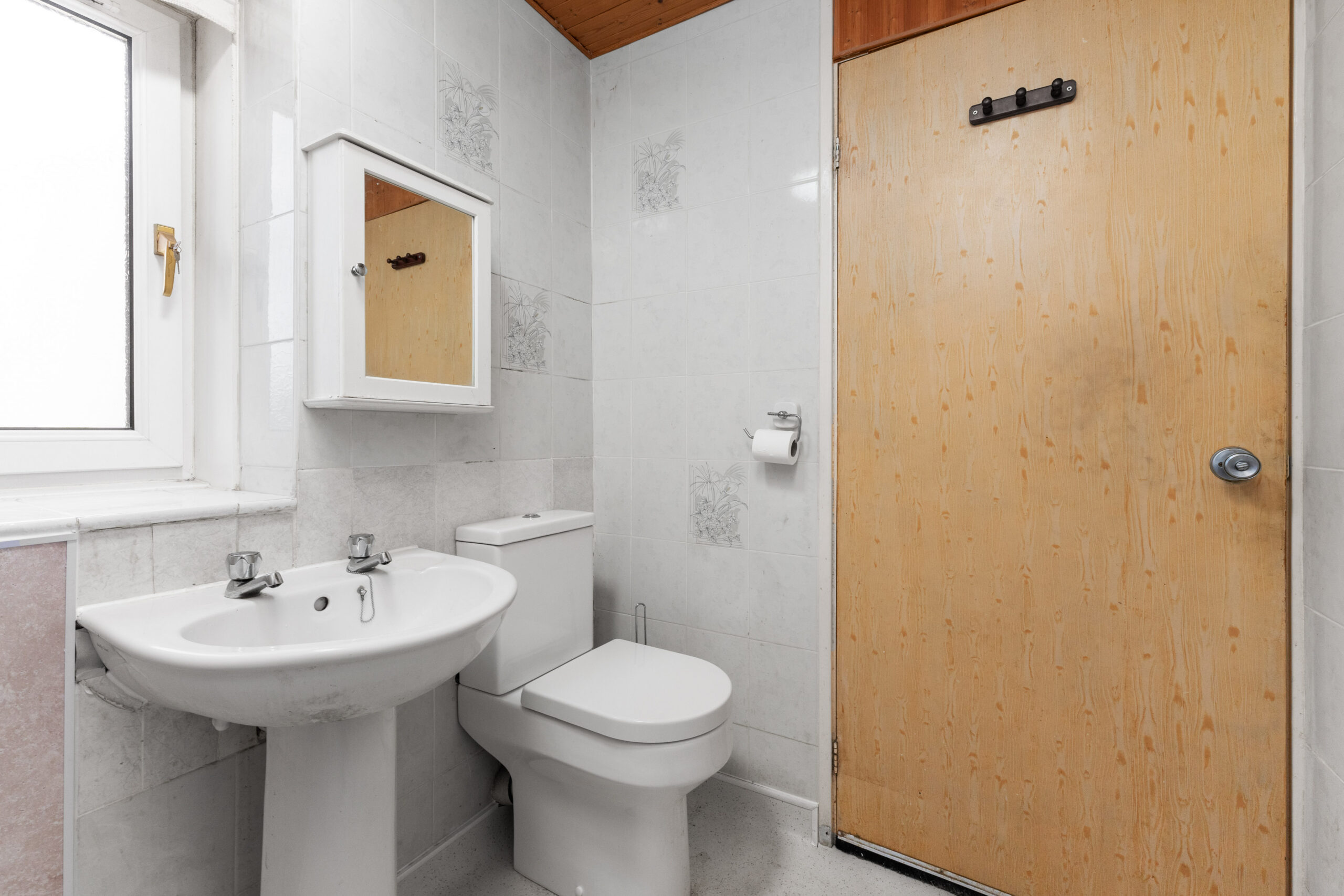 A practical cloakroom featuring a WC and sink complements the ground floor, while the staircase ascends to the airy upper landing. Here you'll discover three bedrooms; two sizeable doubles with fitted wardrobes and a generous single, all served by a wet room styled with wet wall panelling in the shower area.