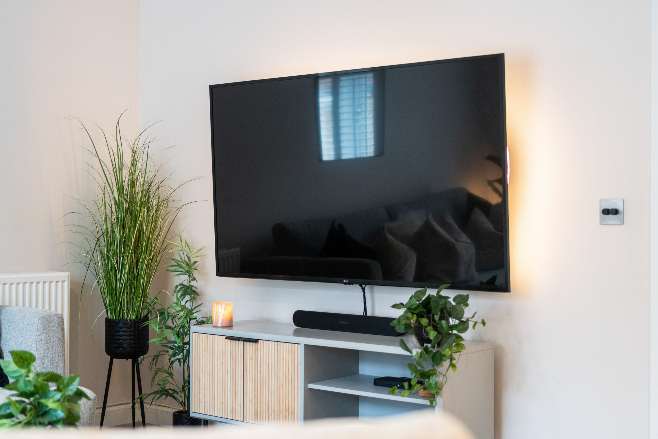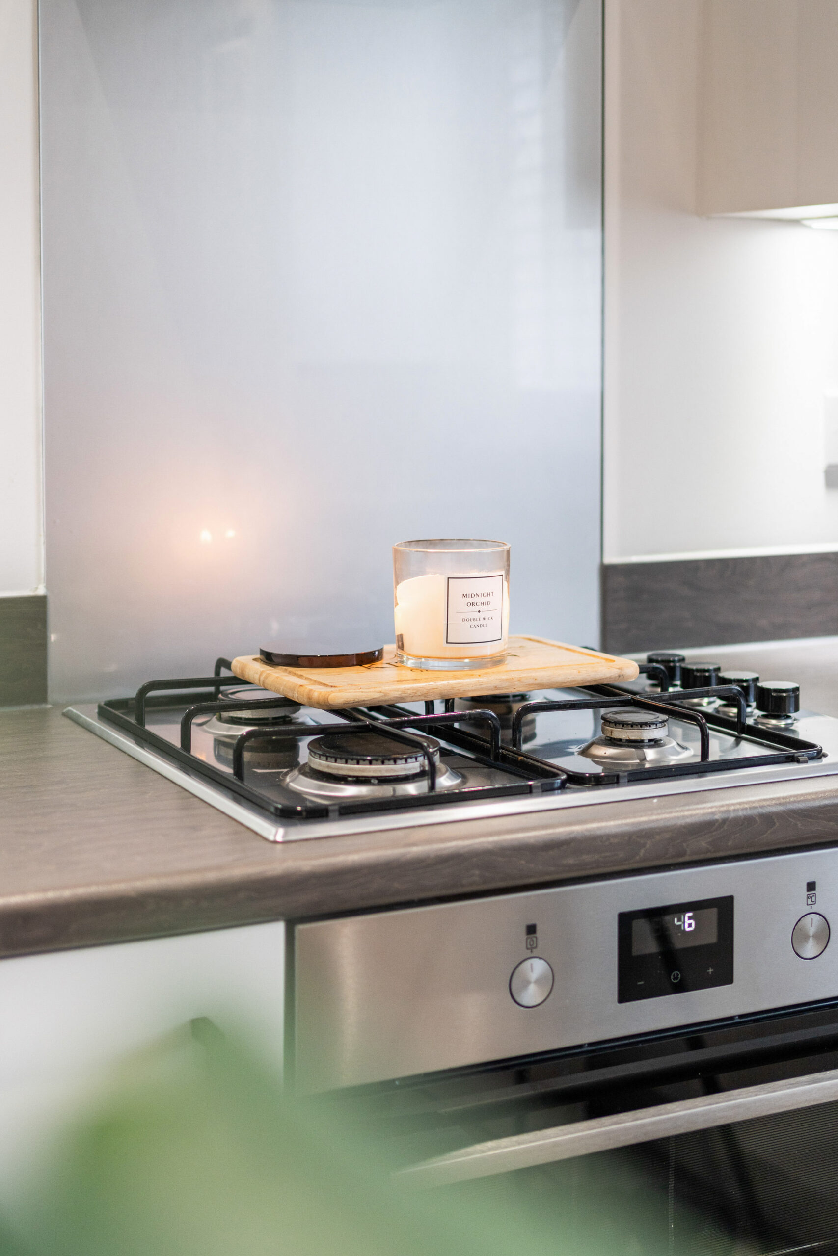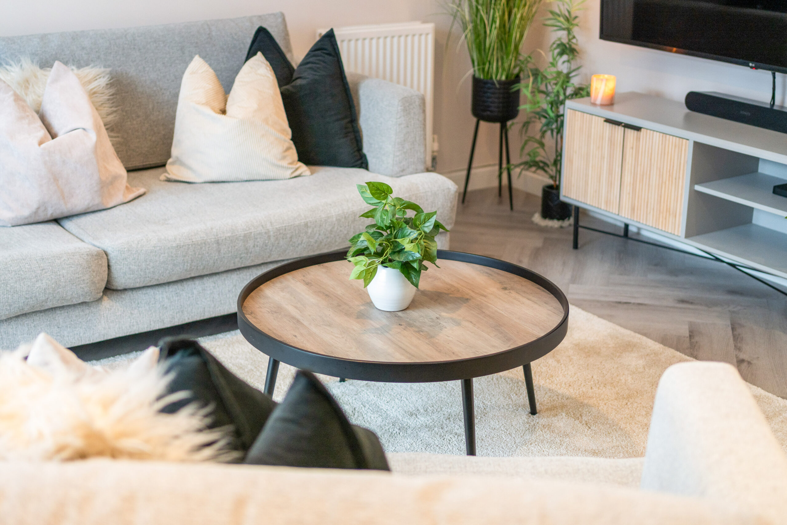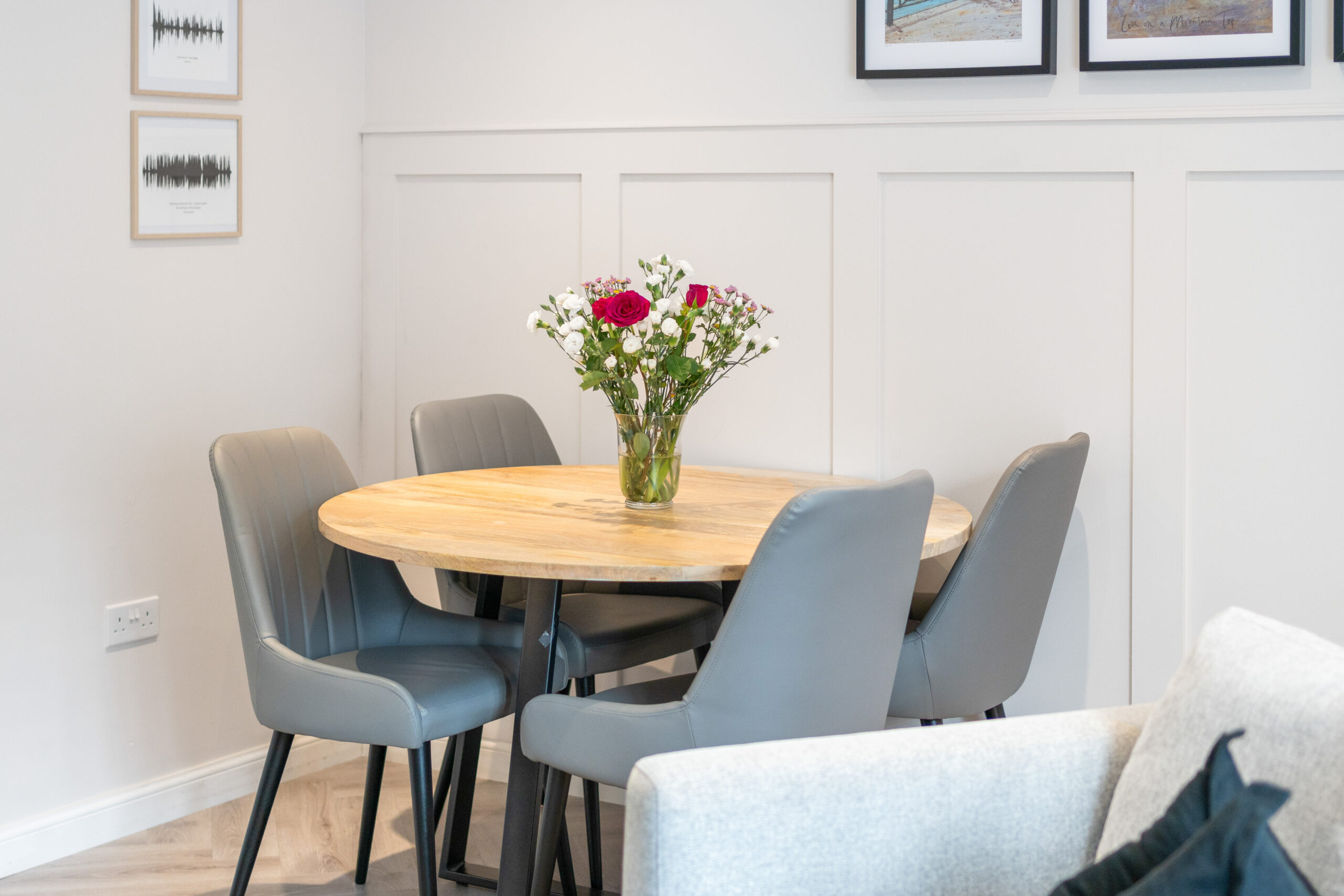 The kitchen is a masterpiece of modern design, featuring chic white high-gloss base and wall units, integrated appliances, and sleek black finishes. This space is as stylish as it is functional. The spacious lounge/diner overlooks the beautifully landscaped rear garden. The room is enhanced by a gorgeous, panelled feature wall and soft, neutral decor, creating a warm and inviting atmosphere-an ideal space to relax, unwind, and host family and friends.