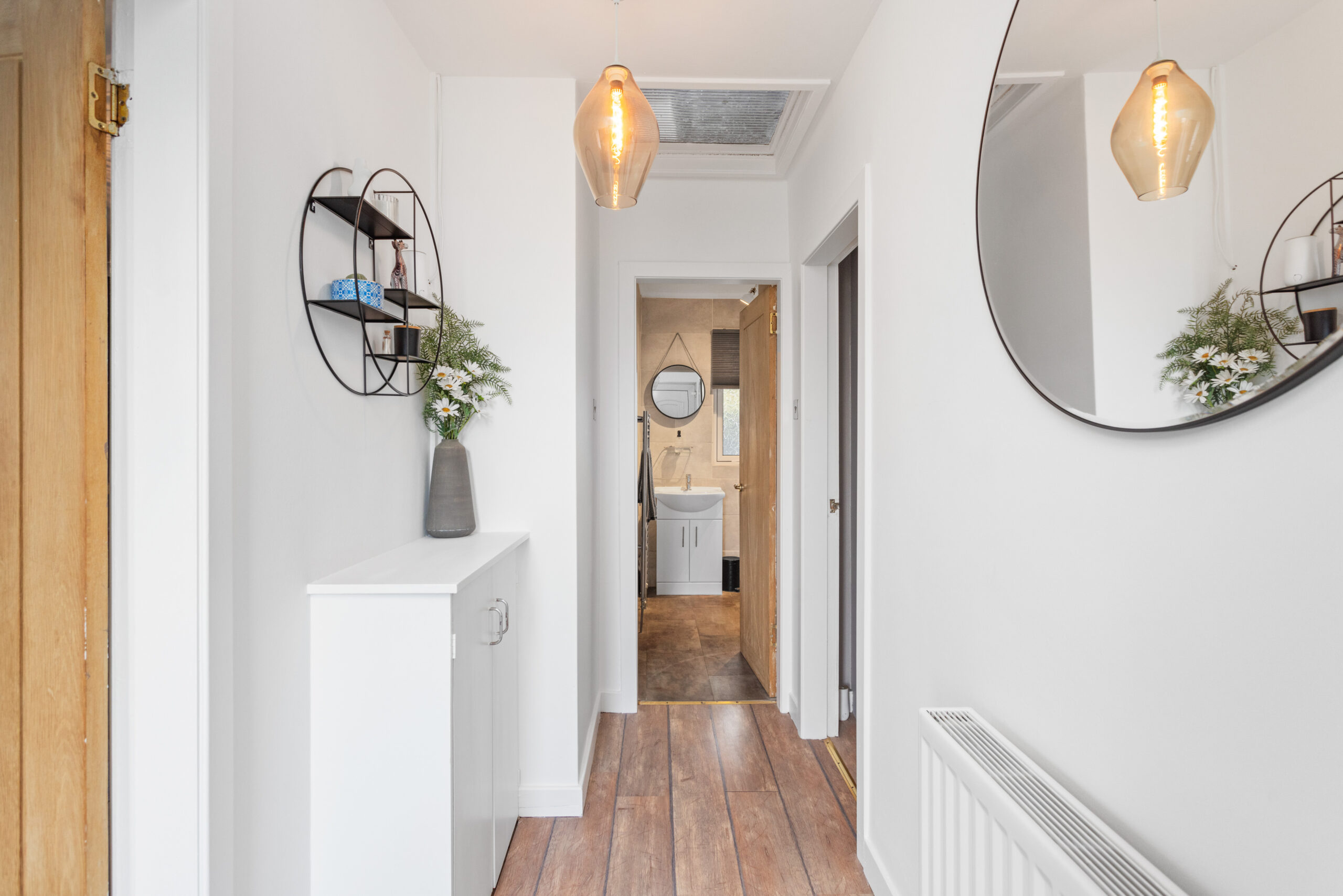 Upon entering, the welcoming hallway provides access to all accommodation and features stylish laminate flooring and elegant oak internal doors. A hatch to the loft space offers additional storage potential.
