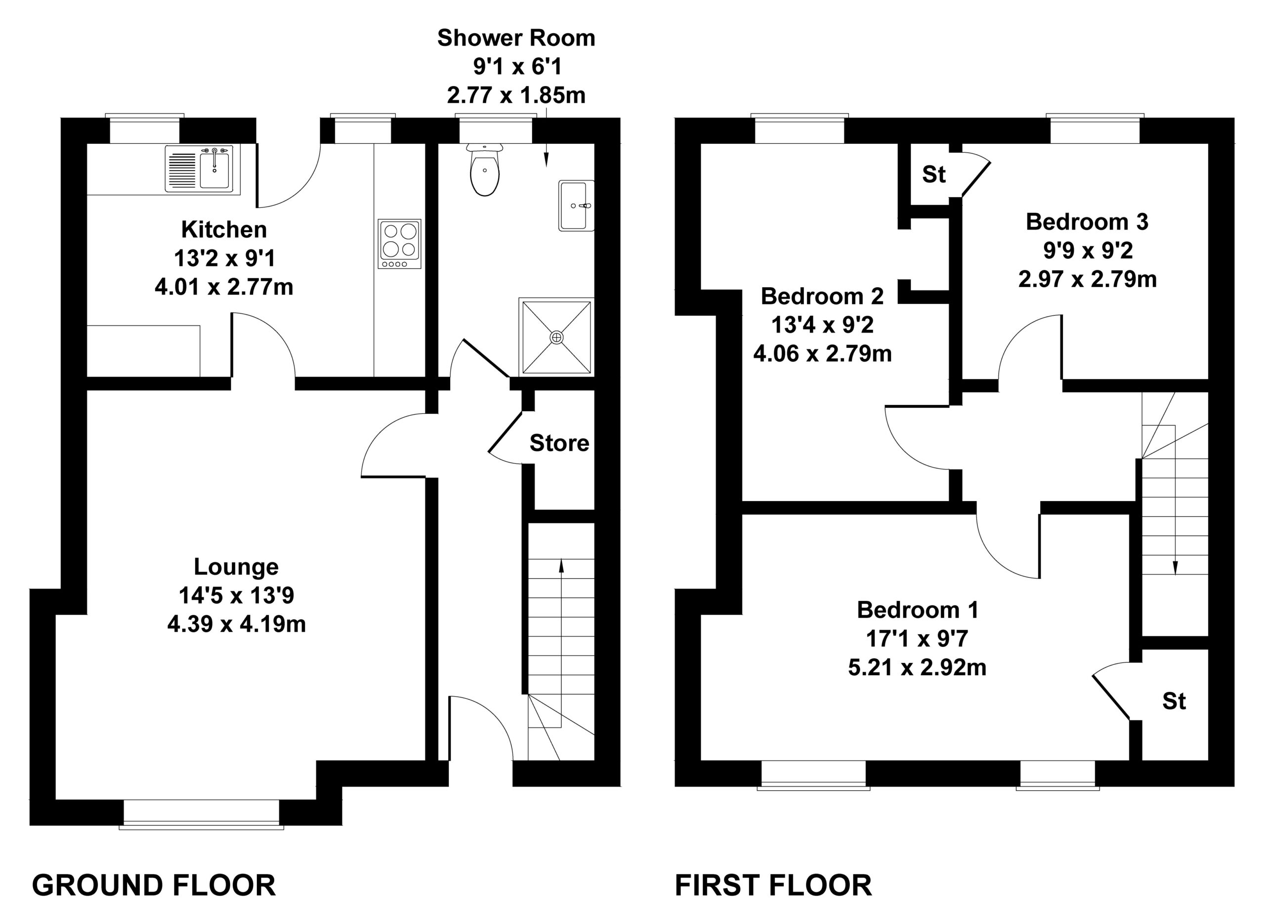 In the kitchen, you’ll find an array of base and wall units, accompanied by space for essential appliances, all brought together with a charming brick effect wallpaper and practical splashback tiles. Stepping through the kitchen door, the promise of outdoor activities beckons, with both front and rear gardens laid to lawn, plus a dedicated drying area.