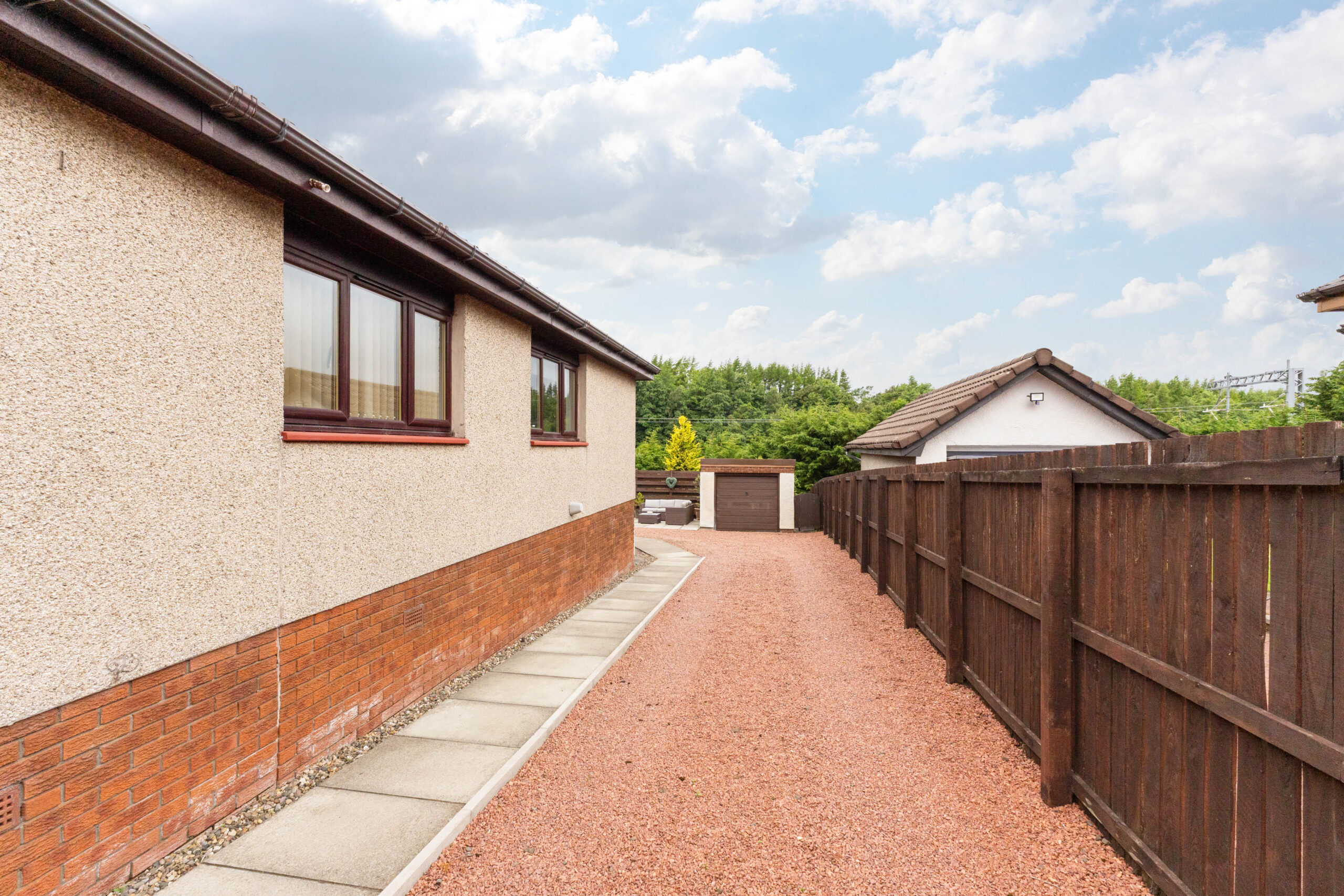 Tucked away in a peaceful and desirable location, this beautifully presented detached bungalow enjoys an impressive plot with generous proportions both inside and out. From the moment you arrive, you are greeted by its charming exterior-a pretty frontage with a manicured lawn, a neat paved pathway, and a chipped driveway offering ample space for several vehicles. The driveway extends to a detached garage, complete with power and lighting, and features a convenient side door for easy access.