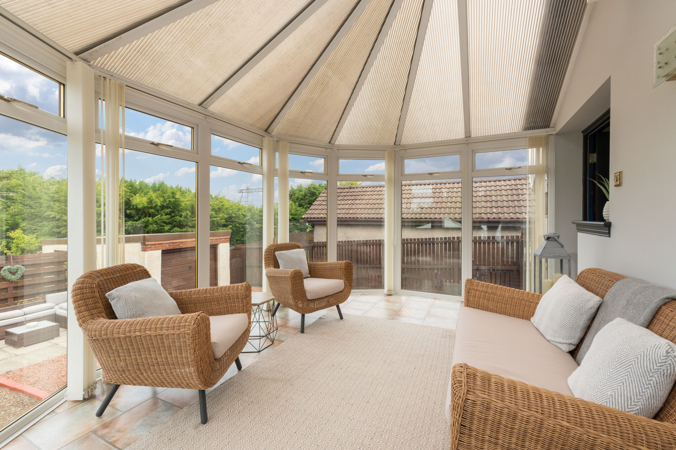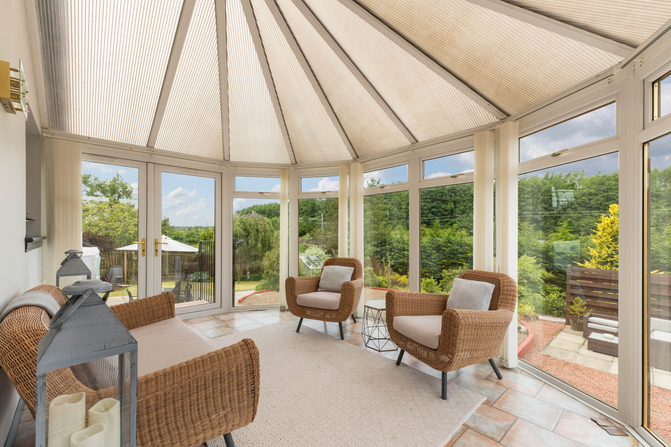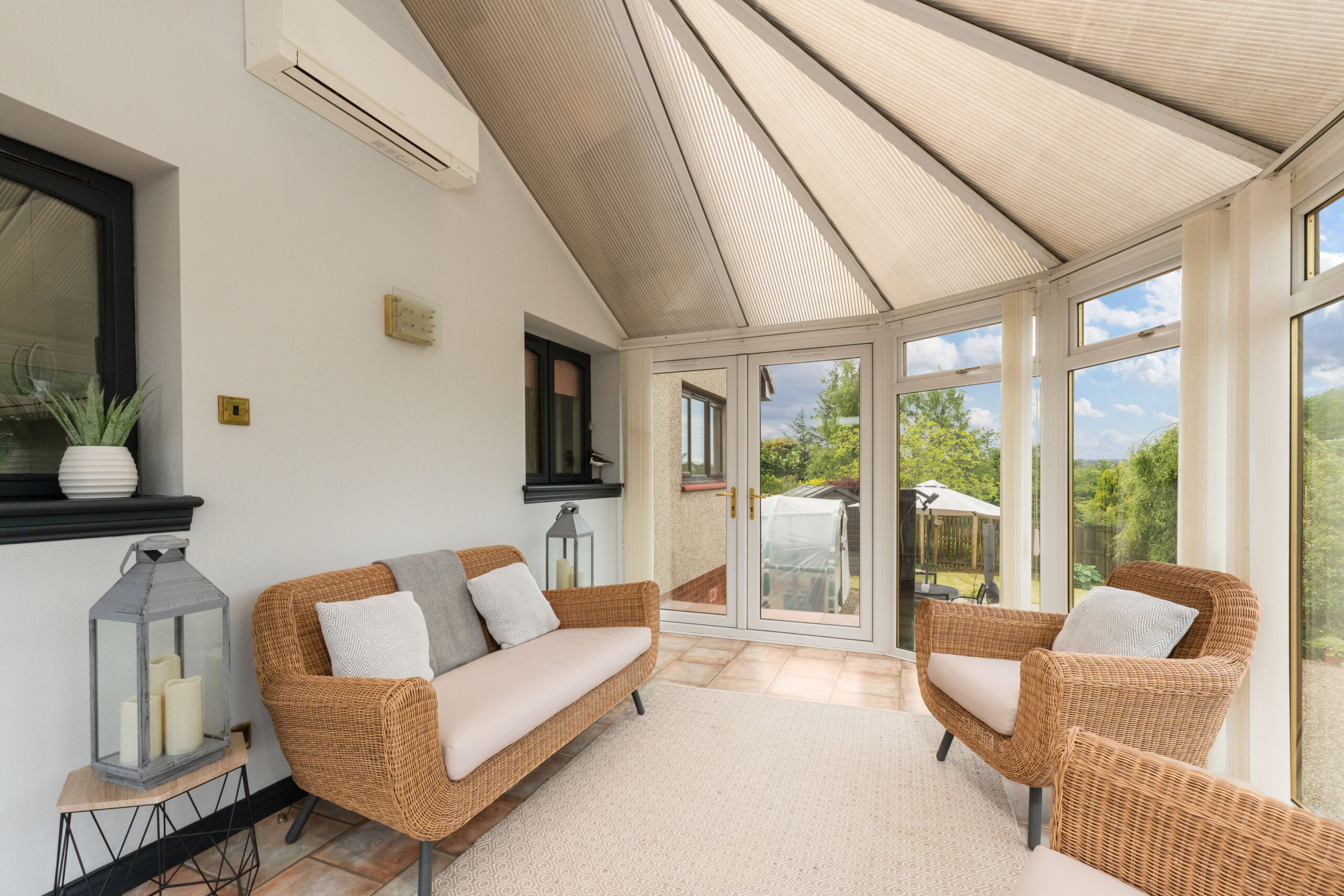 From here, step into the conservatory-a bright and tranquil haven that overlooks the expansive rear gardens. This inviting space benefits from a split air conditioning system, offering both heating and cooling, making it comfortable to enjoy all year round. It's the perfect spot to unwind with a book or a cup of coffee while taking in the beautiful surroundings.