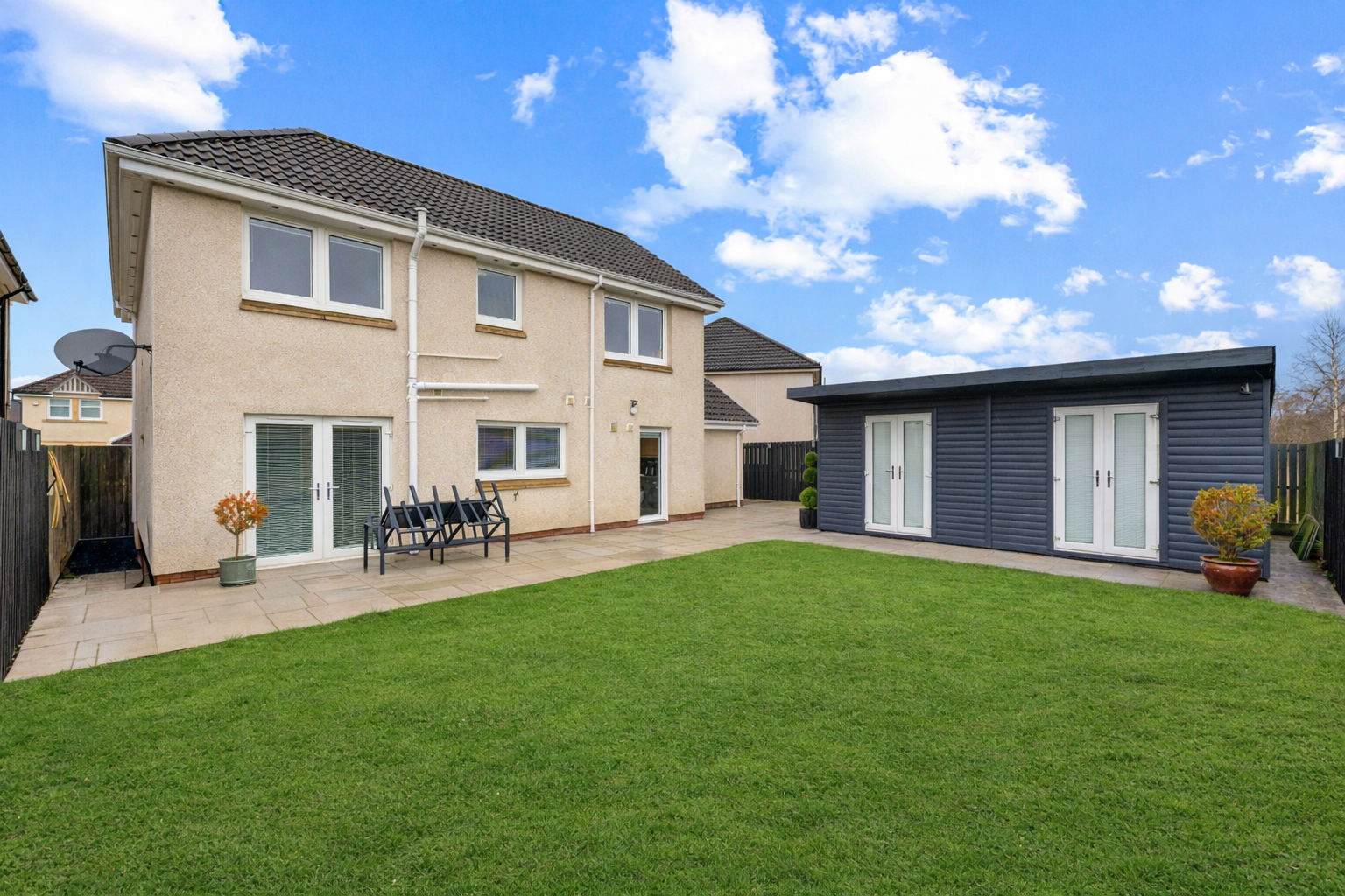 • Schedule Sizes: Bedrooms two, three and four are all well-proportioned, finished to a high standard and benefit from built-in storage, with plenty of space for additional free-standing furniture. The family bathroom is equally impressive, featuring a white free-standing bath, elegant wet wall panelling and a bespoke mirror, offering a calm and stylish space for relaxation. The rear garden is fully enclosed, making it ideal for children and pets, and it enjoys a lovely open outlook with green privacy backing onto a field. A paved patio provides the perfect spot for outdoor dining, while the lawn offers space to play and relax. A large garden cabin is a real standout feature and an incredibly versatile addition, complete with power, lighting and panel heaters. Whether used as a home office, studio, gym, entertainment space or garden bar, it offers endless possibilities to suit a variety of lifestyles. Further benefits include gas central heating, a Hive smart heating system, an upgraded boiler installed in 2020, an alarm system, and an Ezviz Ring doorbell, ensuring both comfort and security are fully covered. Throughout the home, the level of finish is consistently impressive, with no detail overlooked. Upgraded internal doors, sleek chrome USB sockets in multiple rooms and carefully positioned spotlights enhance both style and functionality, reflecting the thoughtful upgrades and high standard of presentation found in every space. Set within a sought-after and well-connected location, with access to highly regarded local schooling including West Calder High School and excellent rail links to Edinburgh and Glasgow, this outstanding family home is presented in true show-home condition. Offering style, space and flexibility in equal measure, early viewing is highly recommended to fully appreciate the quality, finish and lifestyle on offer. Extras: Floor coverings, blinds, light fittings, integrated oven, hob, microwave American fridge/freezer, alarm system, hive, Ezviz doorbell and the garden cabin.