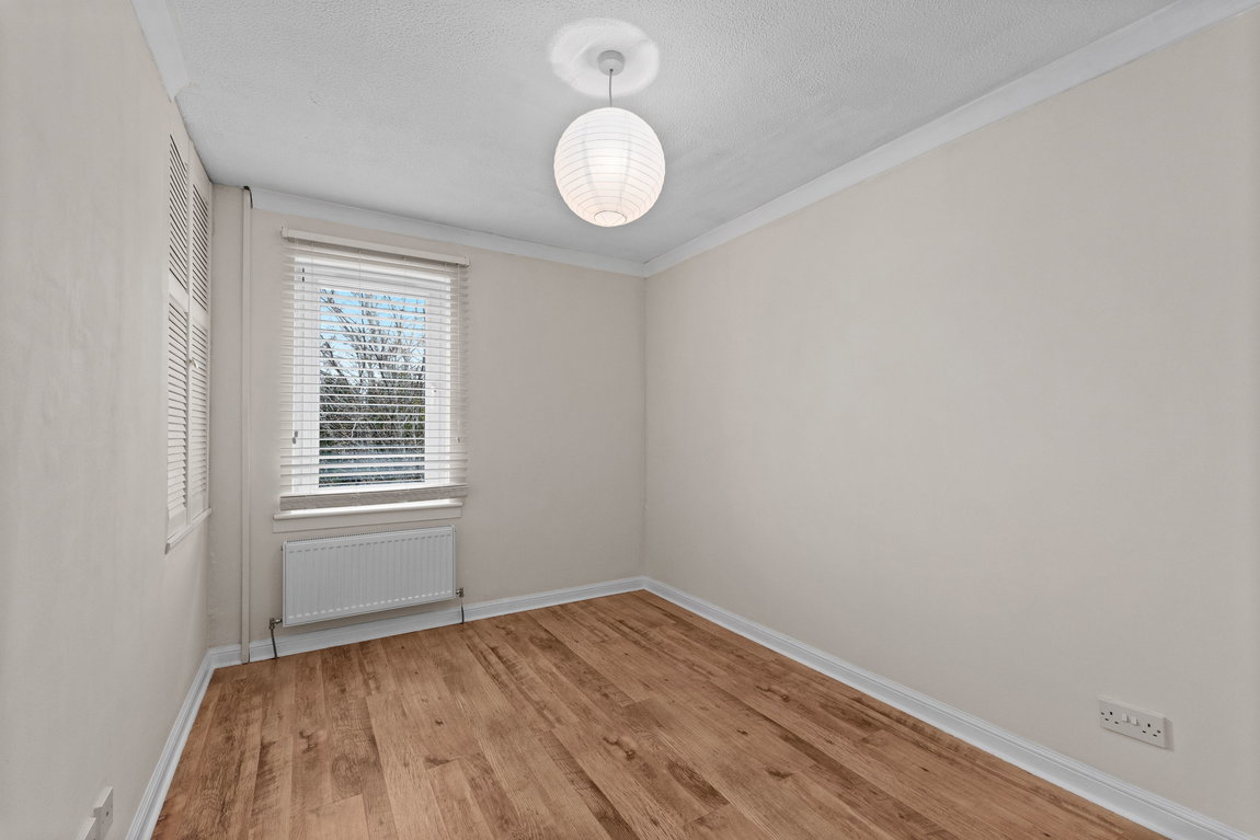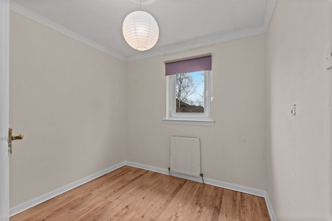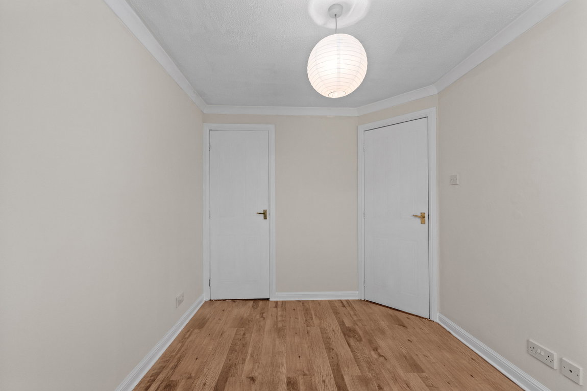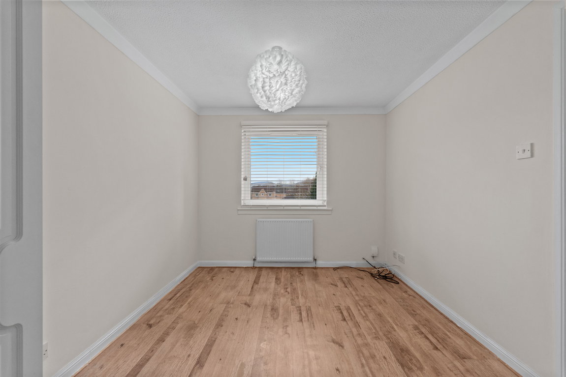 Upstairs, the property continues to impress with three well-proportioned bedrooms and a family bathroom. There is also a handy storage cupboard on the landing, which houses the water tank. The principal bedroom is positioned to the front and features two fitted wardrobes, laminate flooring and neutral decor, along with the added benefit of an en suite shower room complete with WC, wash hand basin and shower cubicle with wet wall panelling. Bedroom two is another generous double room, also front-facing, and offers excellent storage with two built-in cupboards, one with shelving and the other providing both shelving and hanging space. The third bedroom is a bright single room with neutral decor and laminate flooring, ideal as a child’s room, nursery or home office. The family bathroom is fitted with a white suite including WC, wash hand basin and bath, complemented by white tiling to the walls and a rear-facing window.