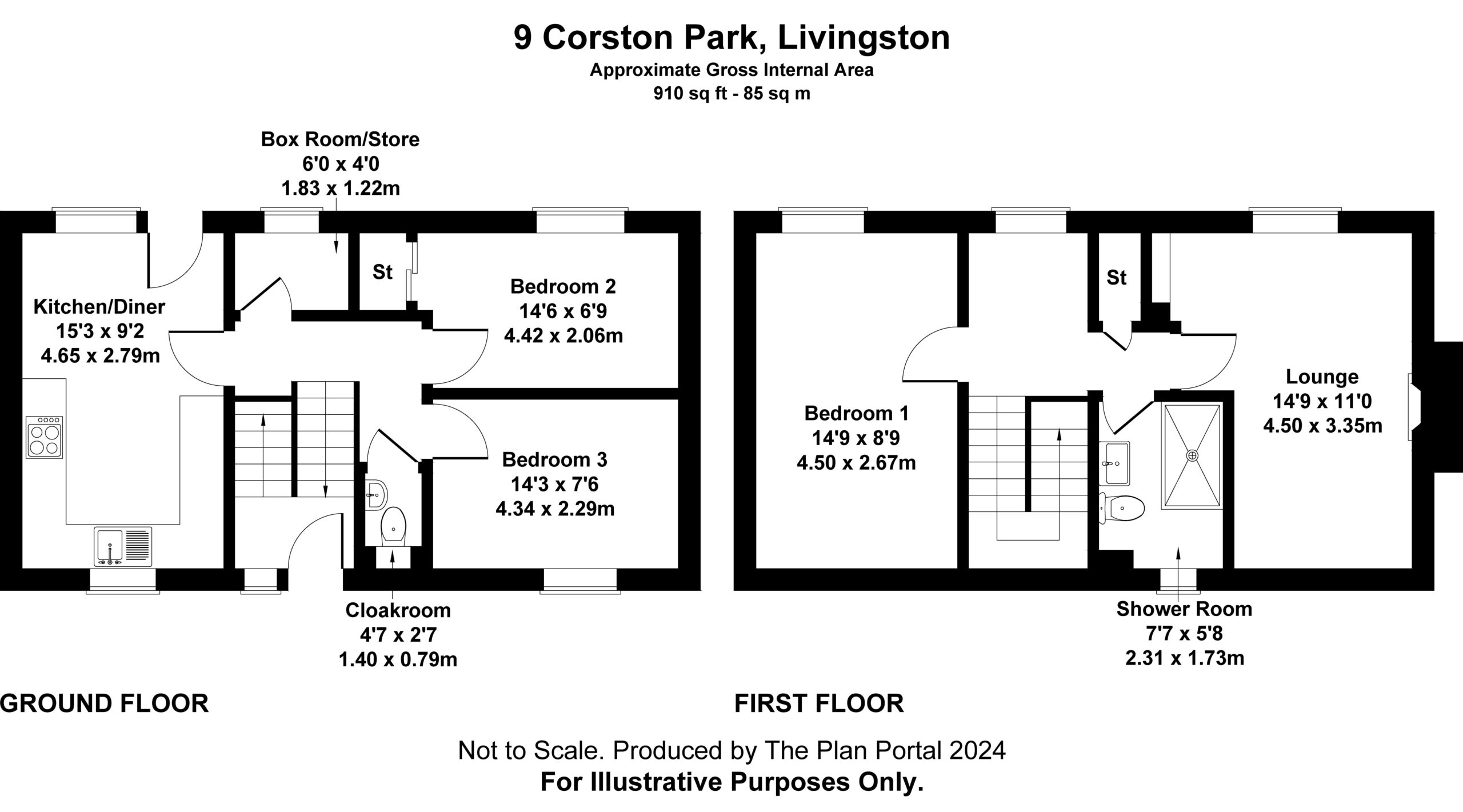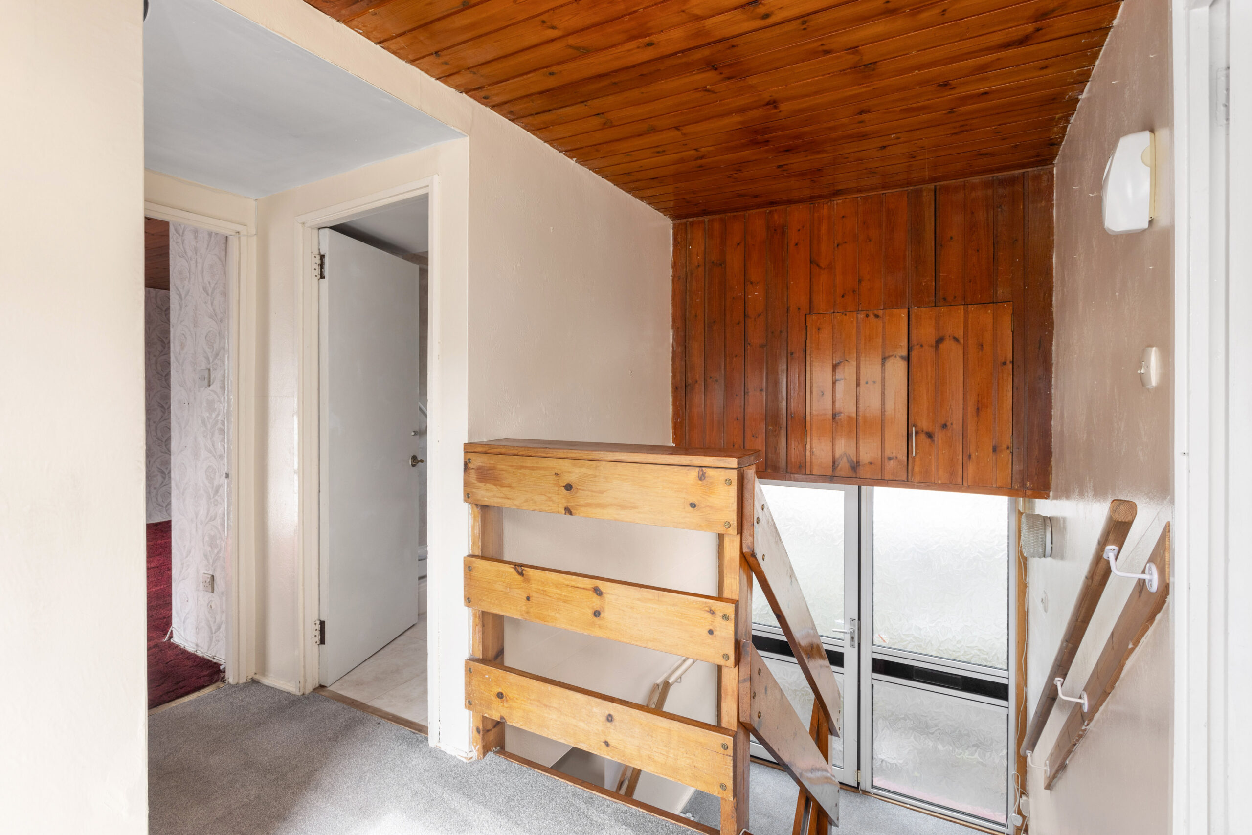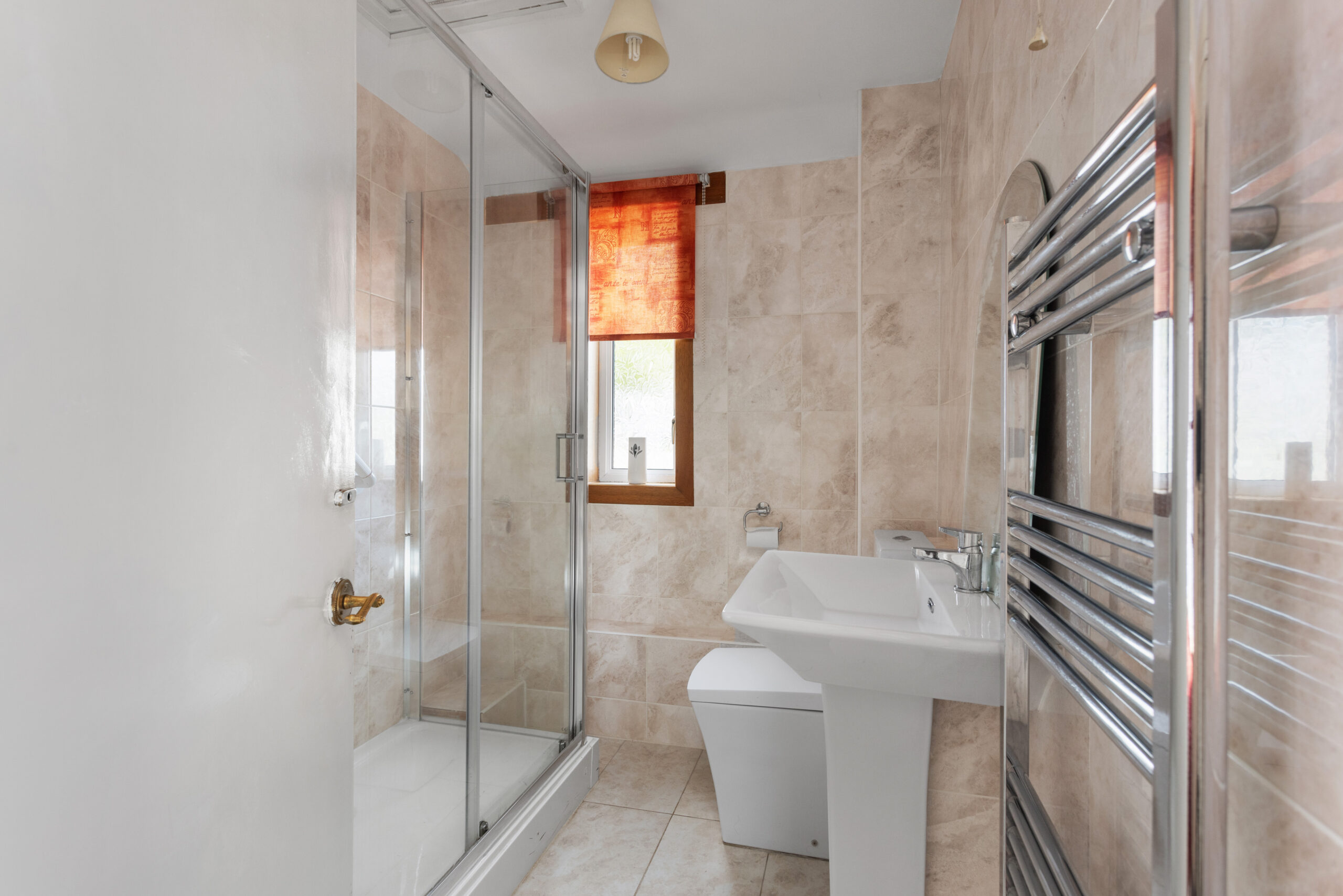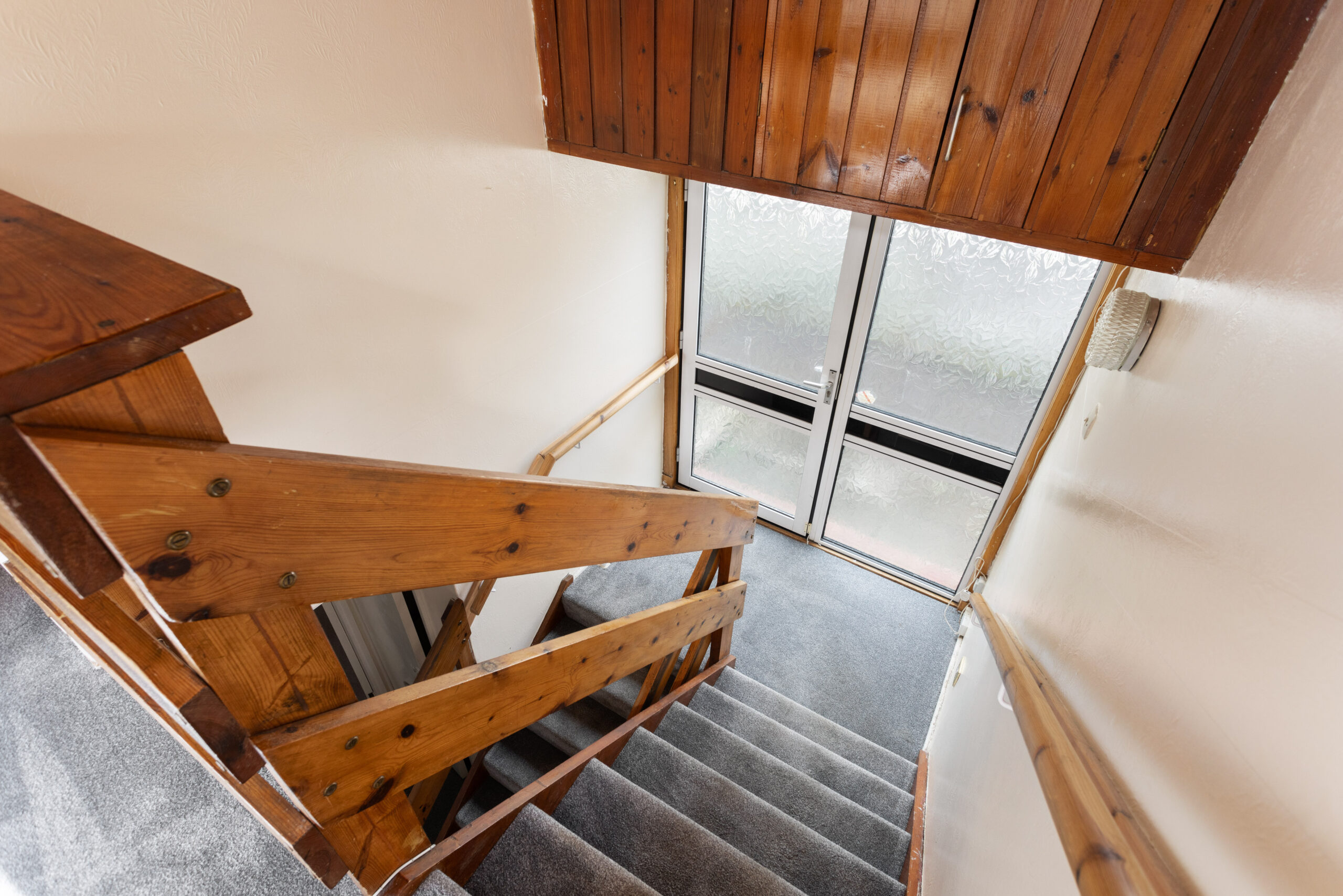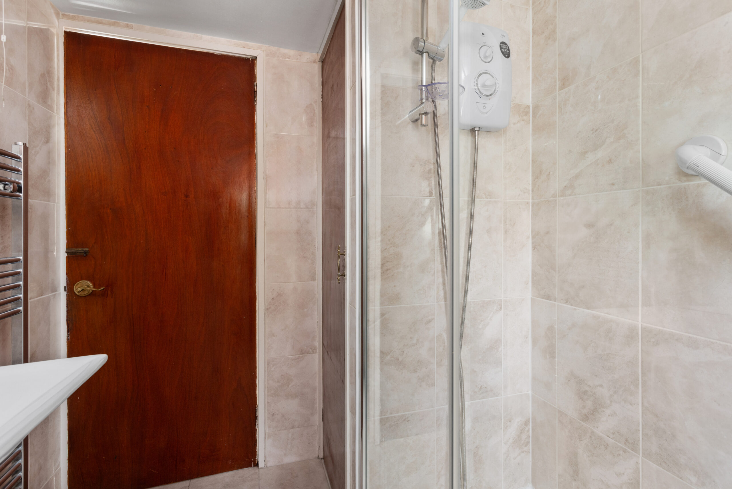 This unique split-level house boasts generous proportions and is cleverly designed to maximise space and storage. Upon ascending the stairs, you'll be greeted by a bright and airy lounge, bathed in natural light with enchanting views over the serene Almond Park, perfect for tranquil strolls. The adjacent master bedroom is a spacious double with ample room for freestanding furniture, and the accompanying shower room features a crisp white suite, with tiled walls and floor.
