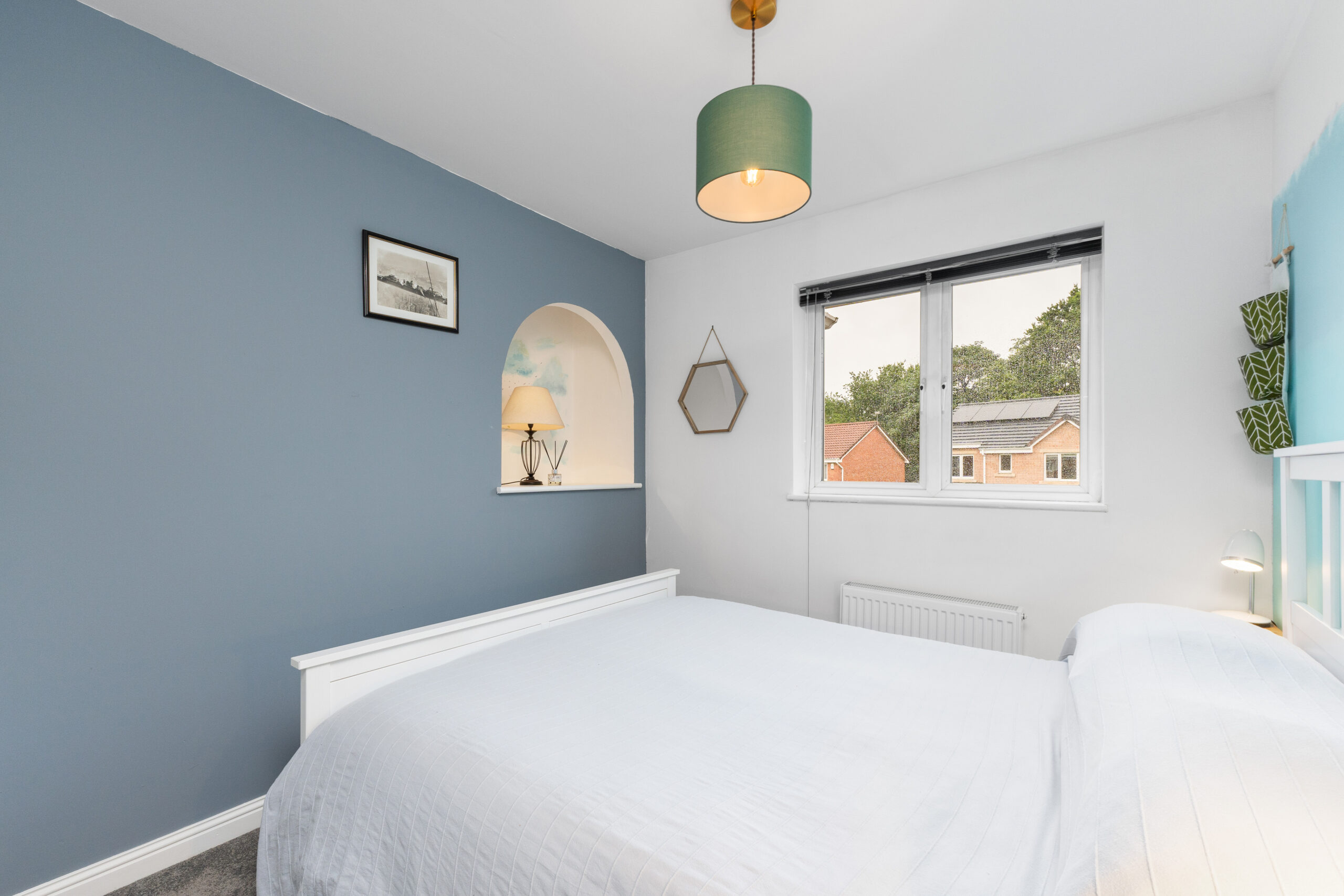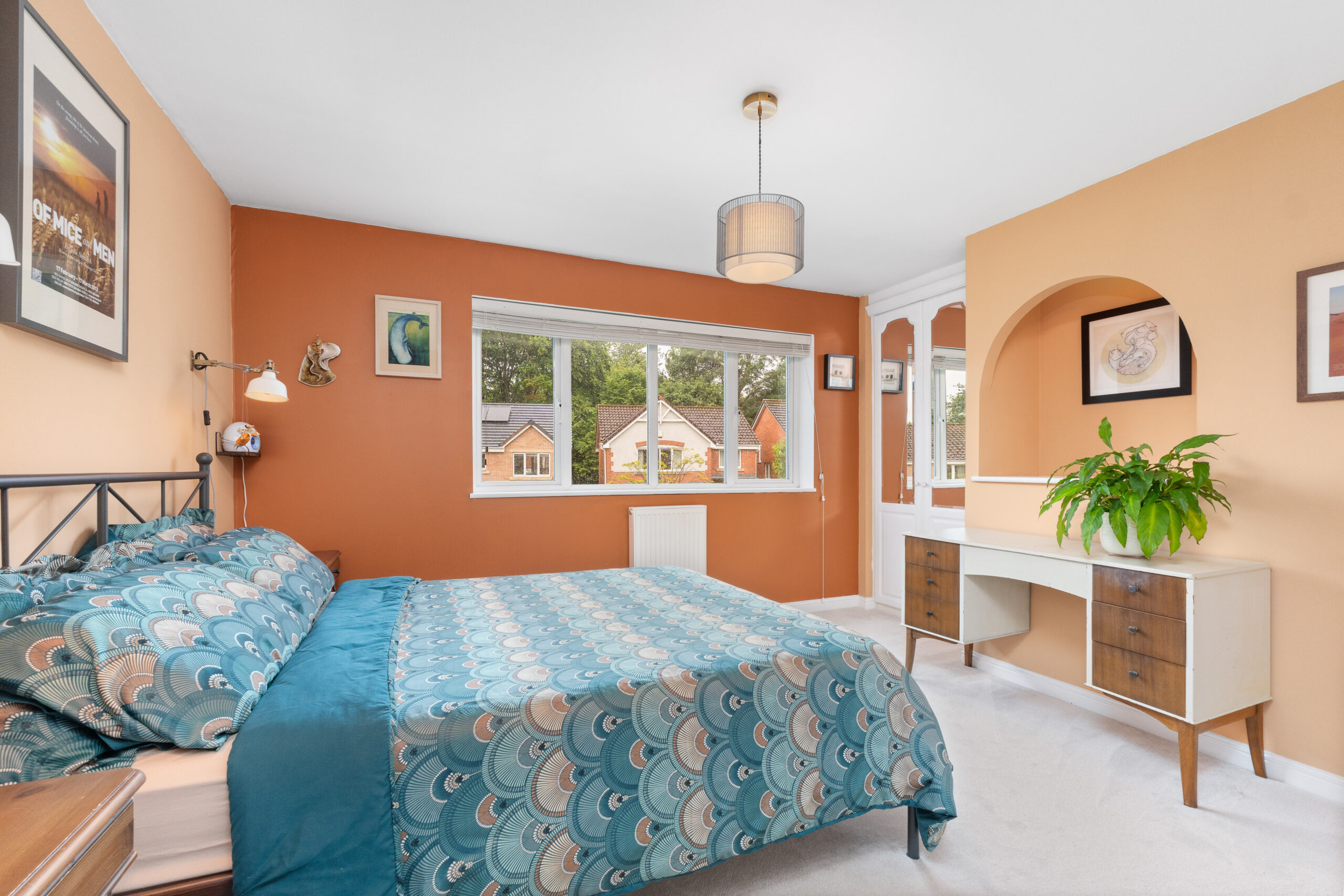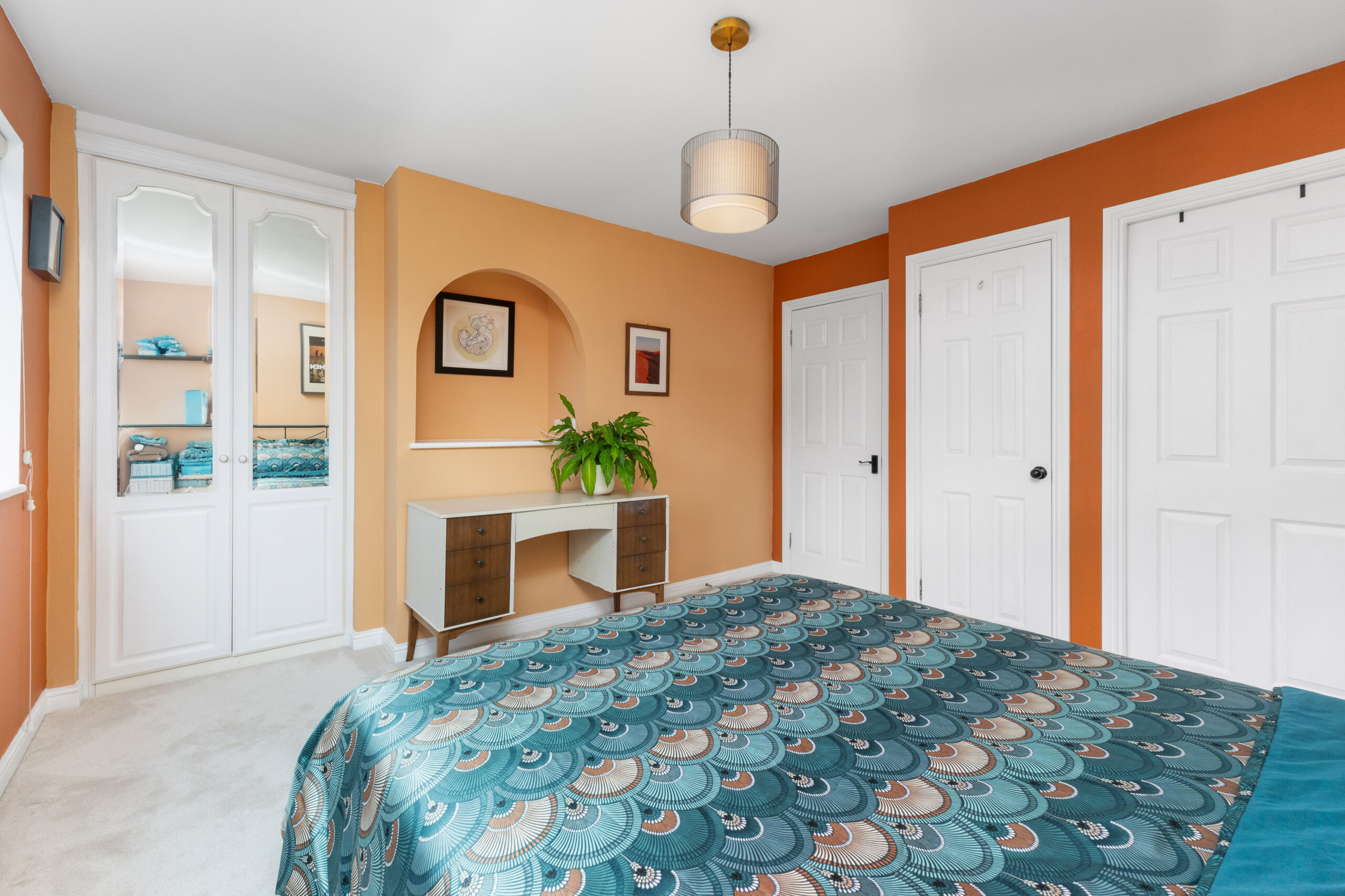 Upstairs, the quality of presentation continues, with thoughtful decor and pops of colour creating a vibrant and welcoming feel. The carpeted landing gives access to four spacious bedrooms, the family bathroom, and two storage cupboards-perfect for keeping everyday essentials neatly tucked away. There is also a hatch leading to the loft.
