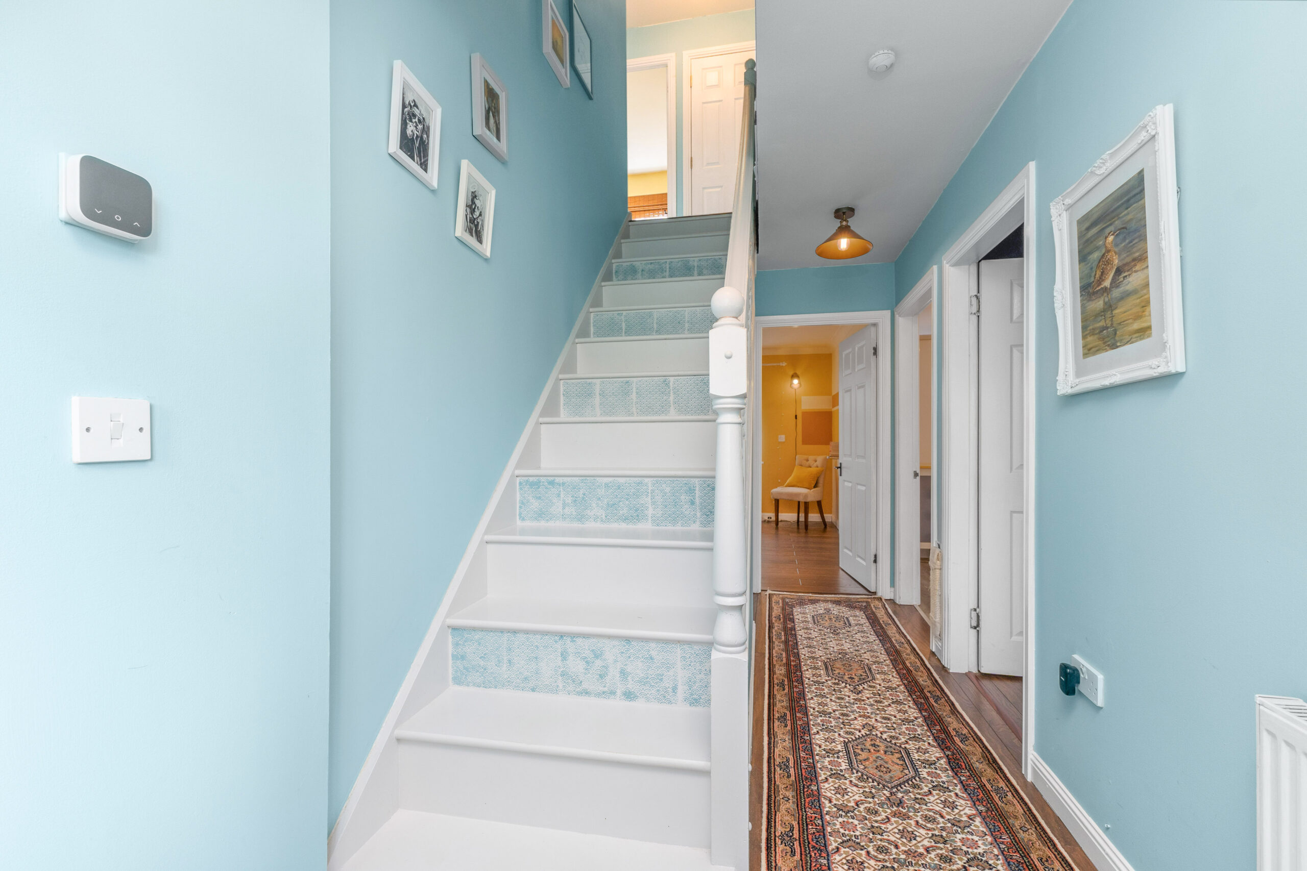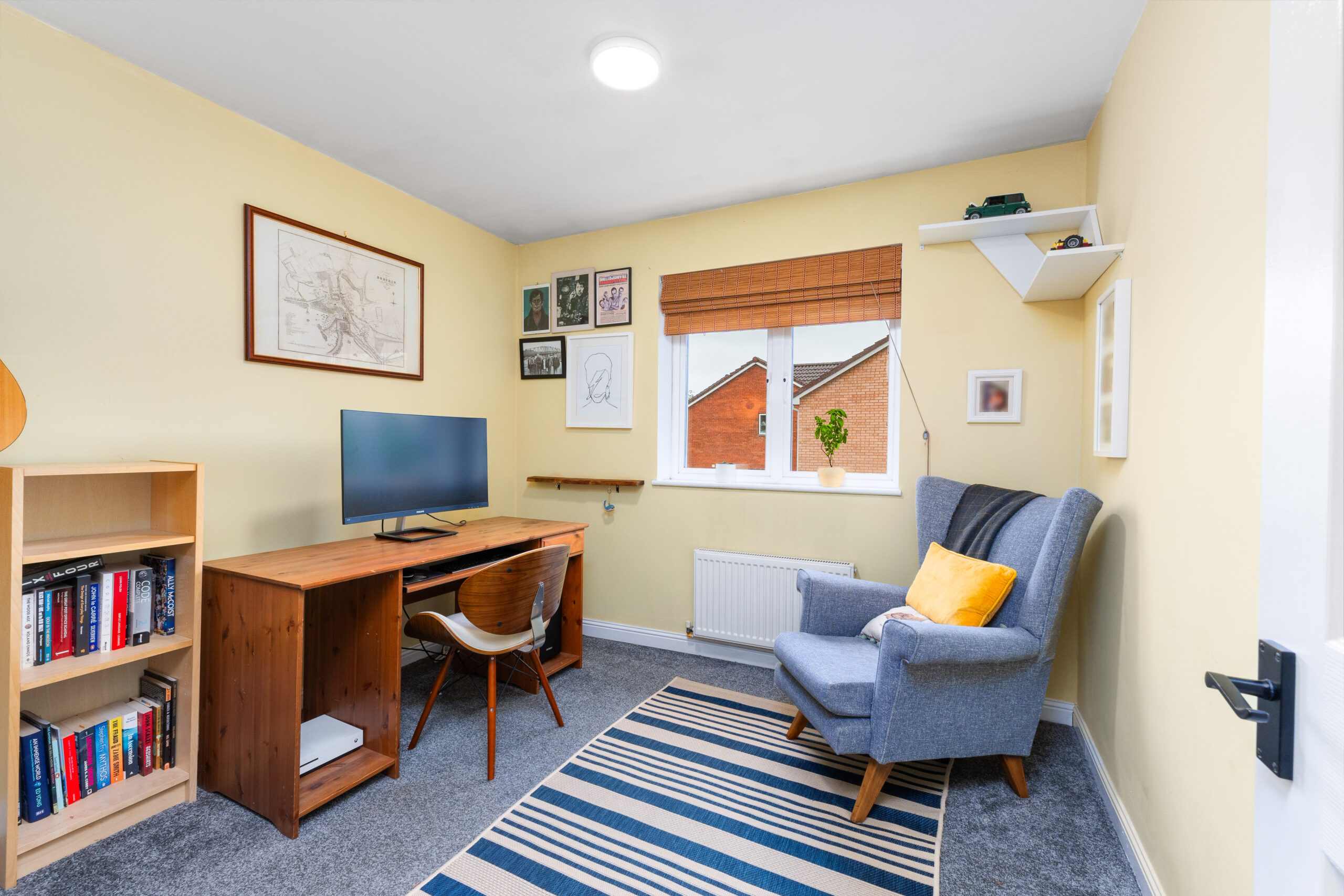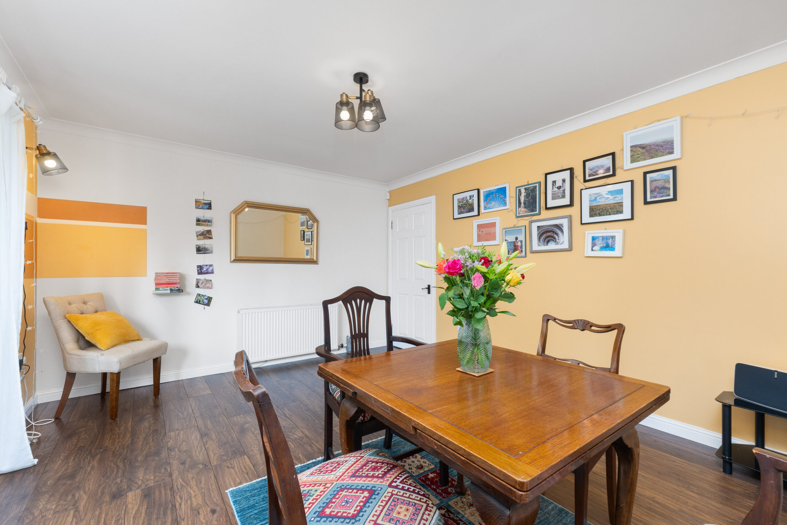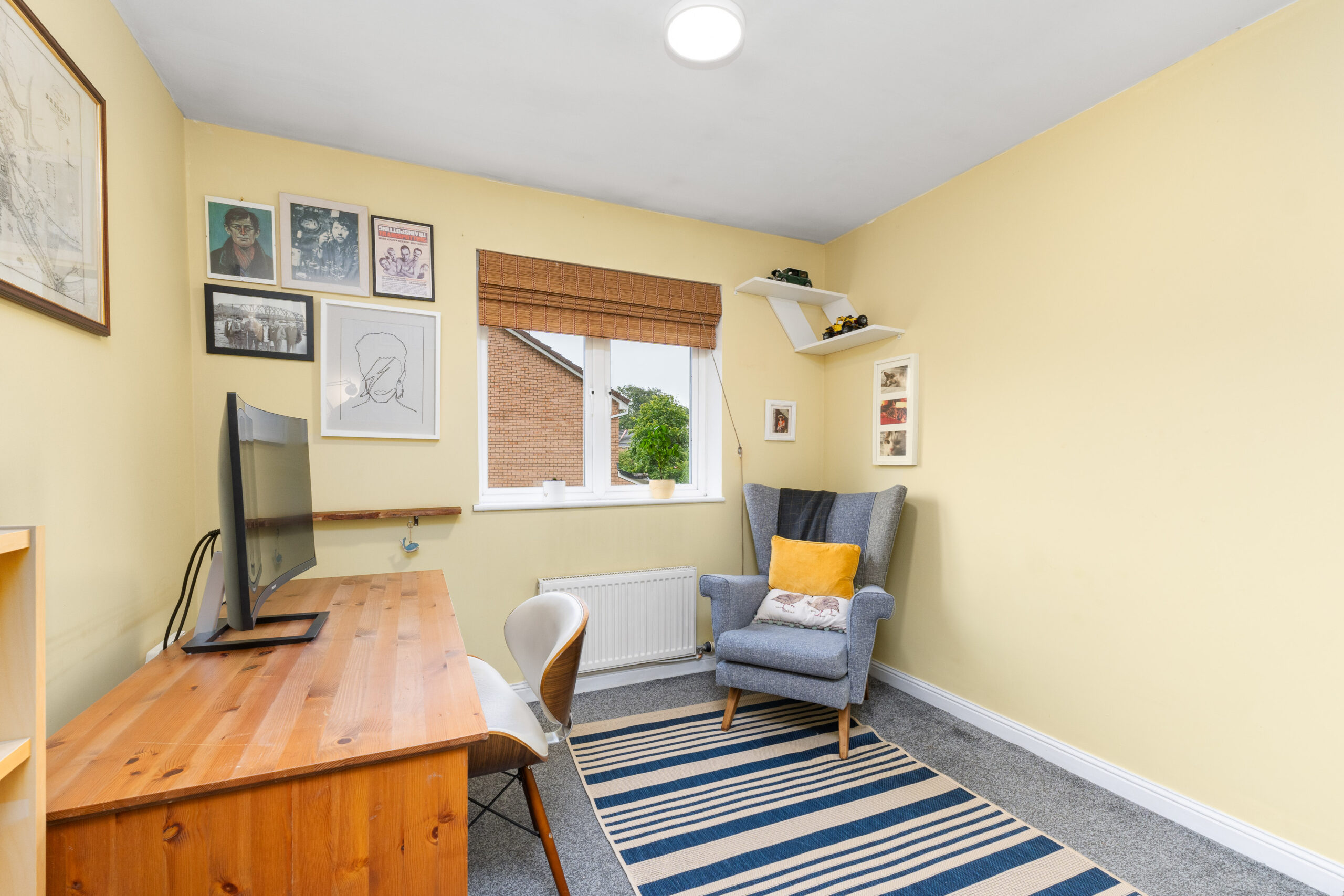 Upstairs, the quality of presentation continues, with thoughtful decor and pops of colour creating a vibrant and welcoming feel. The carpeted landing gives access to four spacious bedrooms, the family bathroom, and two storage cupboards-perfect for keeping everyday essentials neatly tucked away. There is also a hatch leading to the loft.