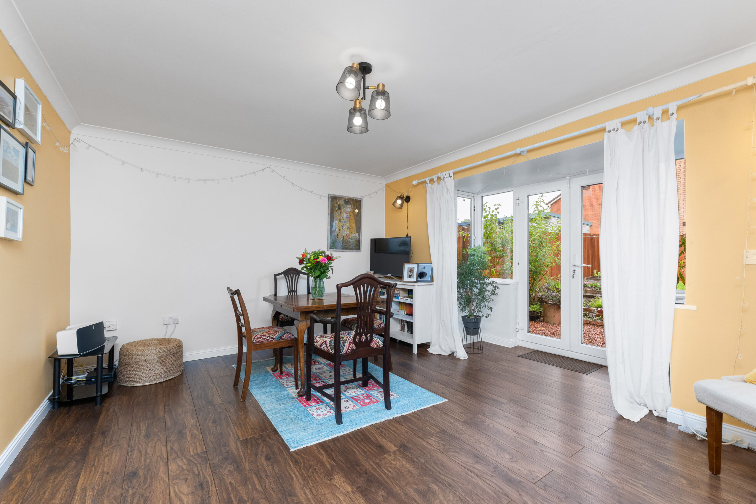 The rear-facing lounge is a real highlight, offering generous proportions and a bay window recess with double doors that open directly to the rear garden. With warm-toned laminate flooring and a lovely outlook, it's the perfect place to relax with family or entertain.