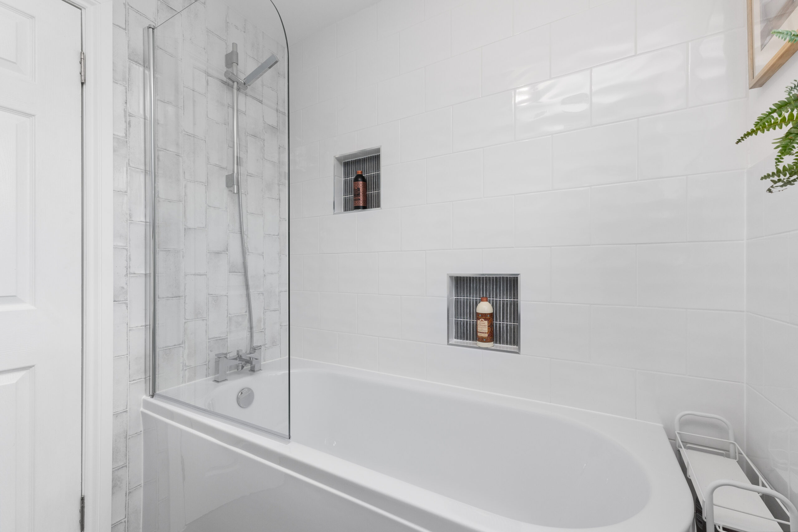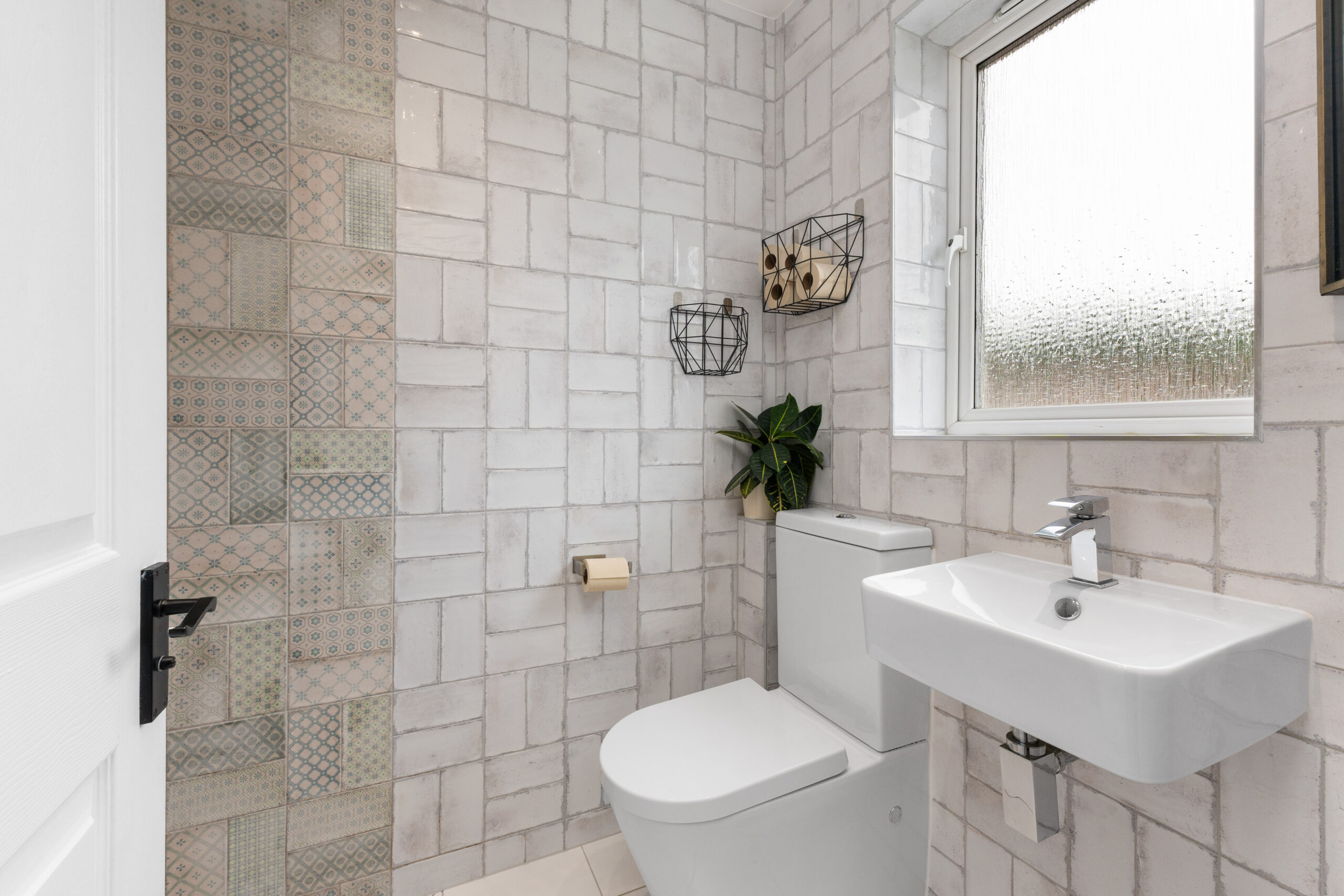 The family bathroom was upgraded in October 2024 and is a standout feature of the home. Designed with a crisp, contemporary style, it includes a white three-piece suite with a shower over the bath, classic white wall tiling, and eye-catching metro tiles around the shower area-offering a clean, modern finish.