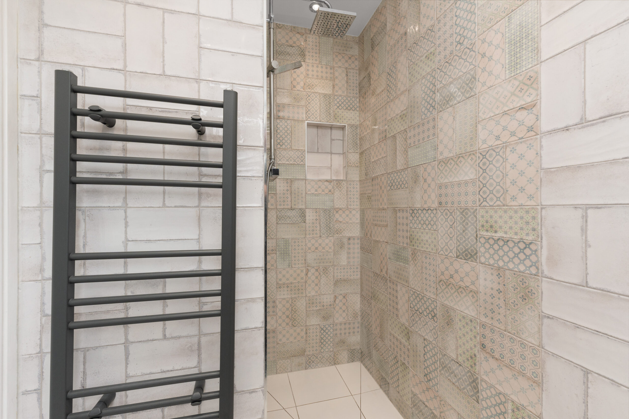 The master bedroom is simply stunning, offering a relaxing retreat with its soothing colour palette, fitted wardrobes, and an additional storage cupboard. It comfortably houses a king-sized bed and benefits from access to a luxurious en suite shower room. Upgraded in 2021, the en suite wet room has been styled to hotel standards, featuring elegant tiling, a rainfall shower with built-in niche shelving, a statement mirror, and a heated towel rail.