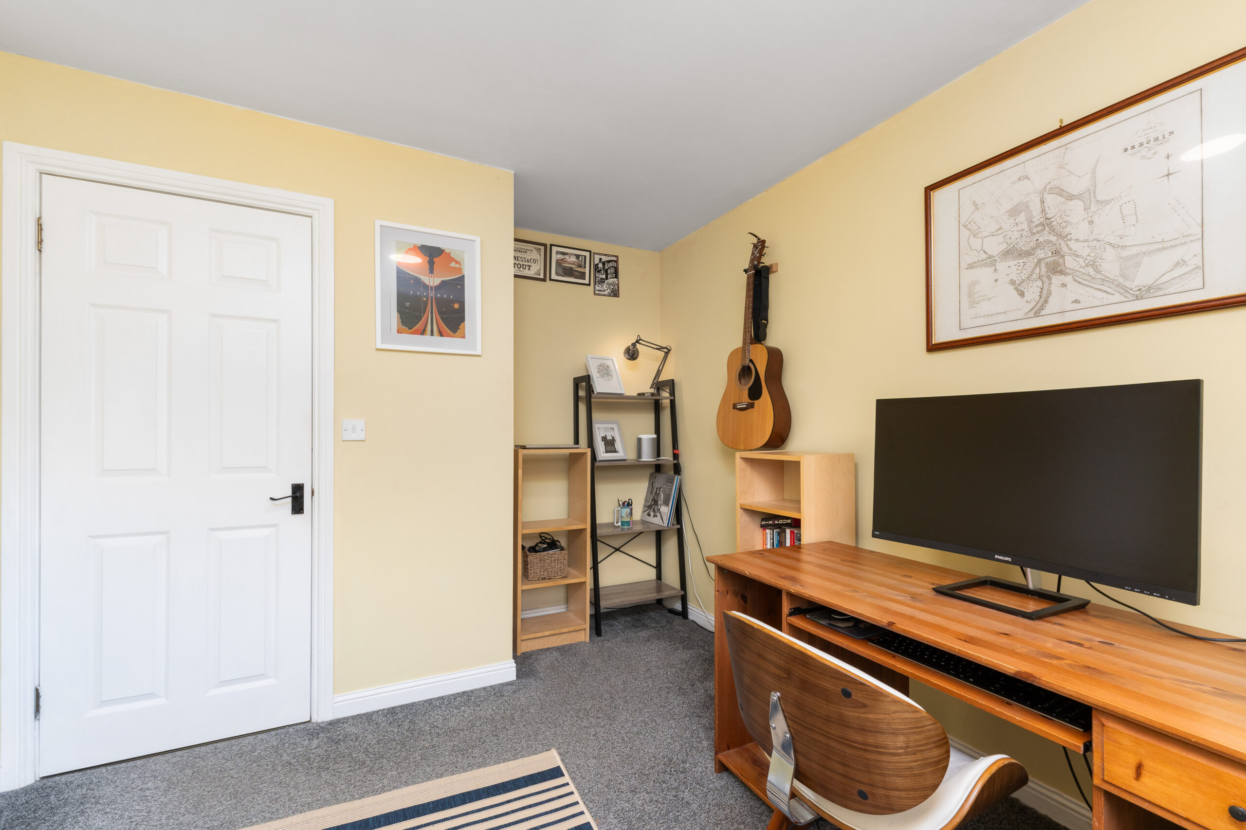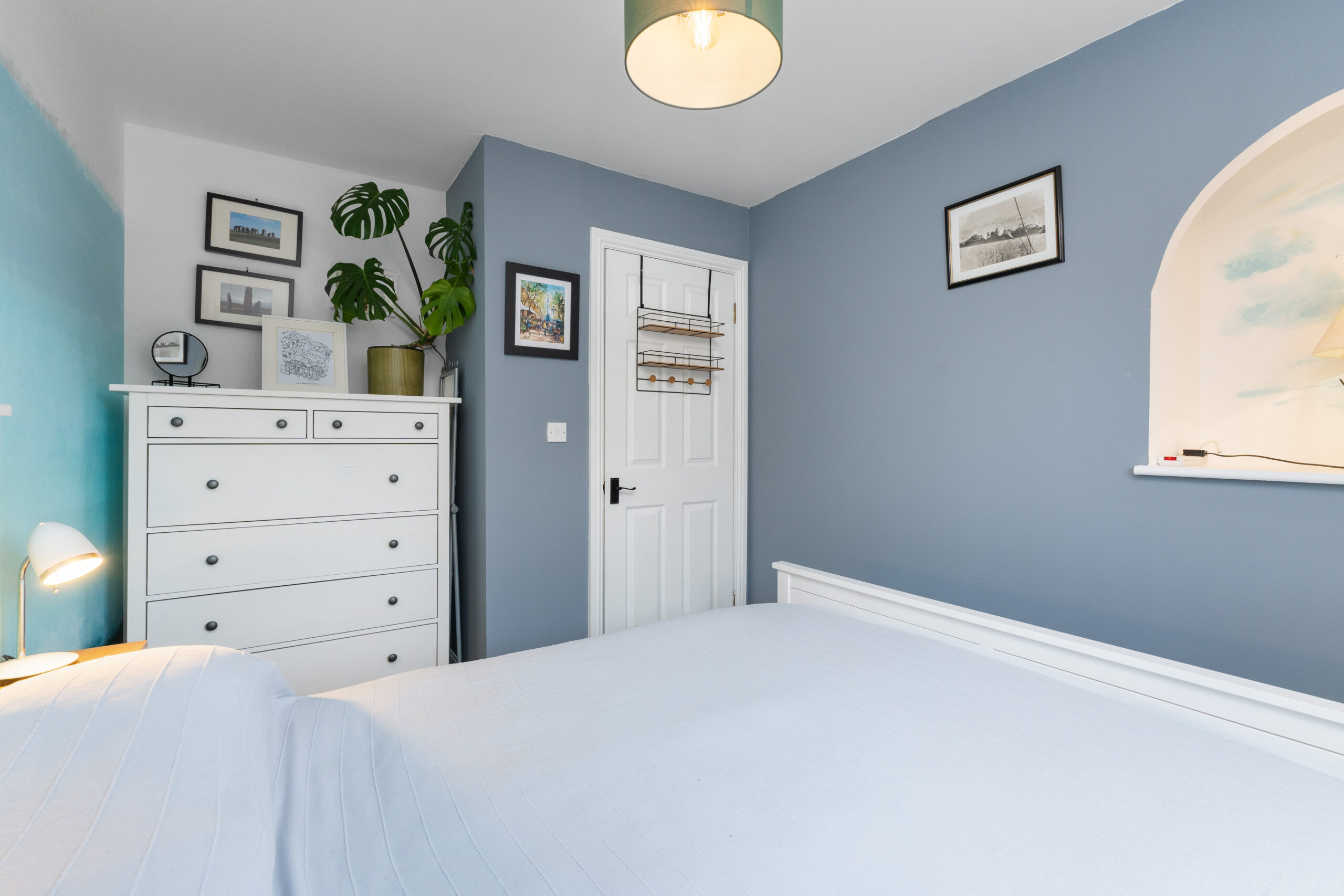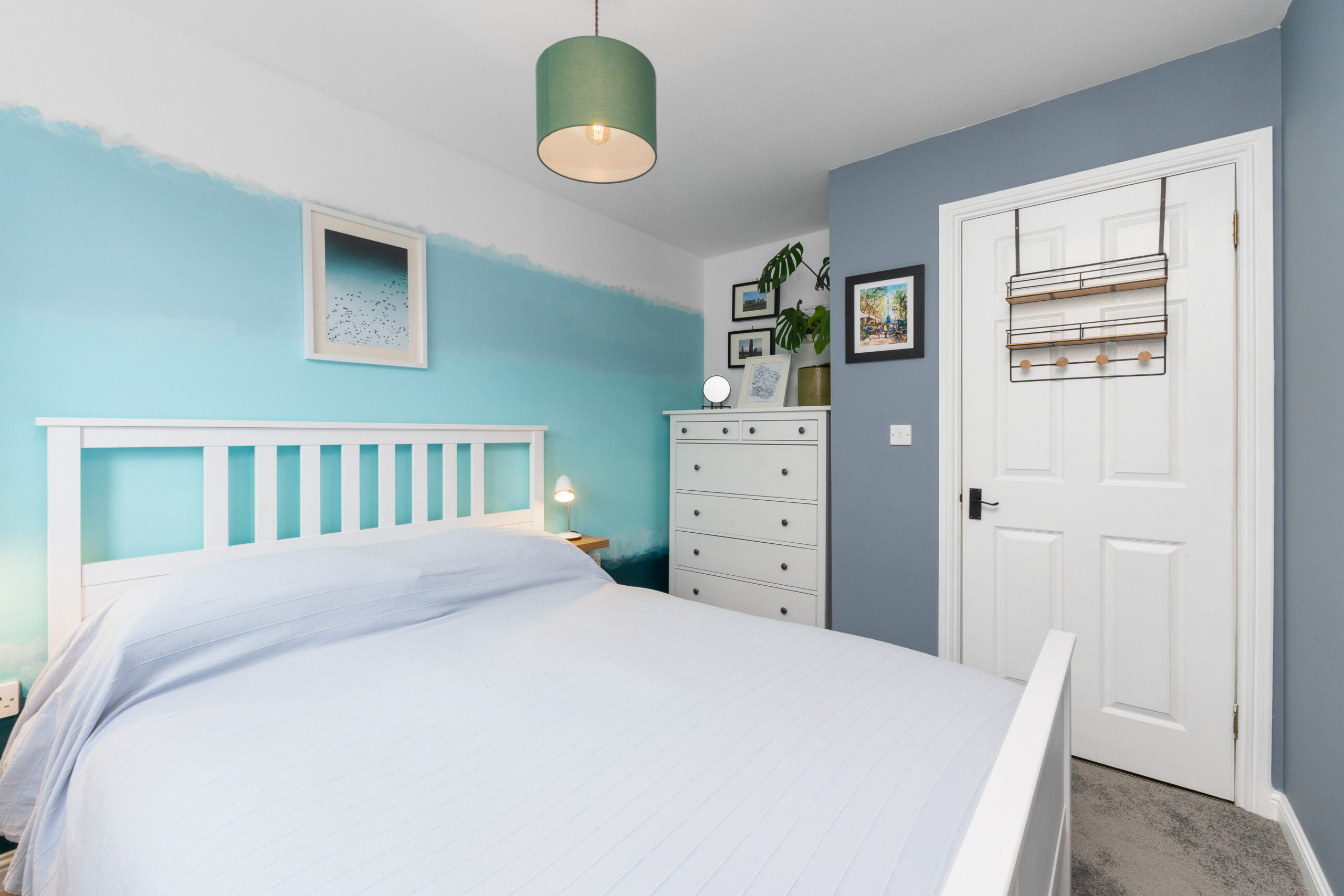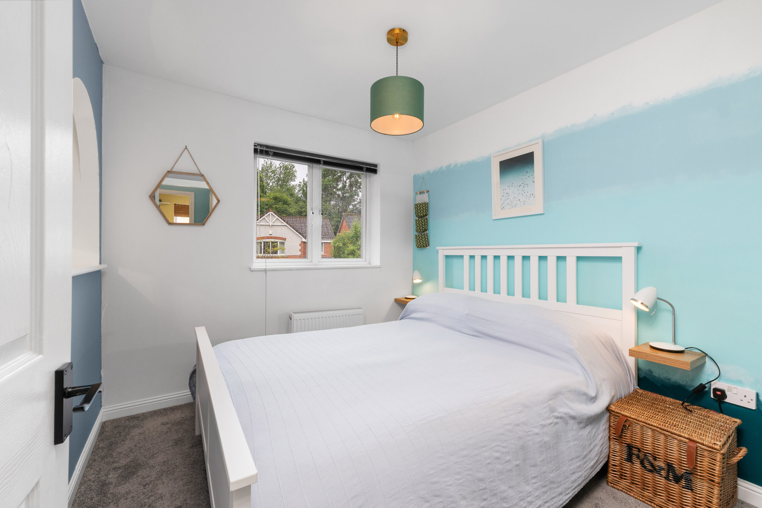 Bedroom two is another generous double, currently home to a king-sized bed, with a hand-painted wall feature and plenty of room for free-standing furniture. Bedrooms three and four are equally impressive in size and finish, both offering ample space and versatility to suit children, guests, or home-working needs.