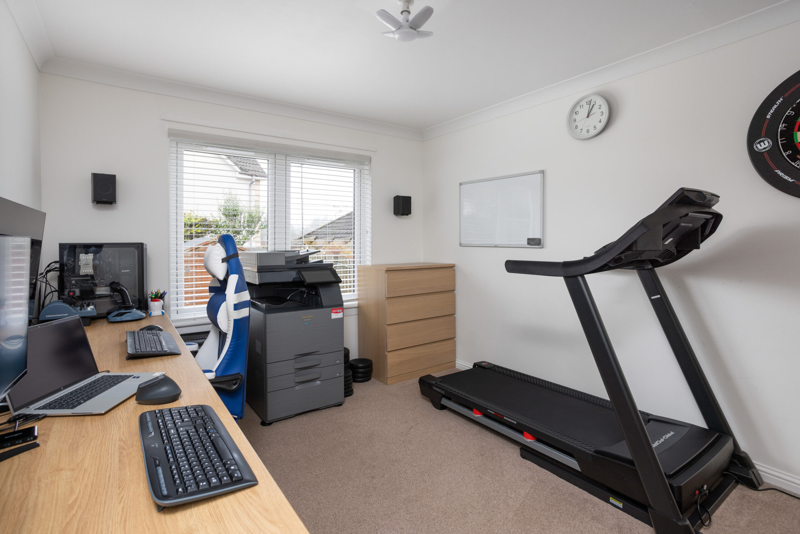 The utility room, which includes a dishwasher and space for a washer and dryer, provides access to the double garage, half of which has been thoughtfully converted into a study or storage area. There is also a modern cloakroom featuring an upgraded WC and sink, offering convenience for guests. A versatile reception room is also located on the ground floor, offering the flexibility to serve as an additional bedroom, a home office, or a formal dining room, depending on your needs.