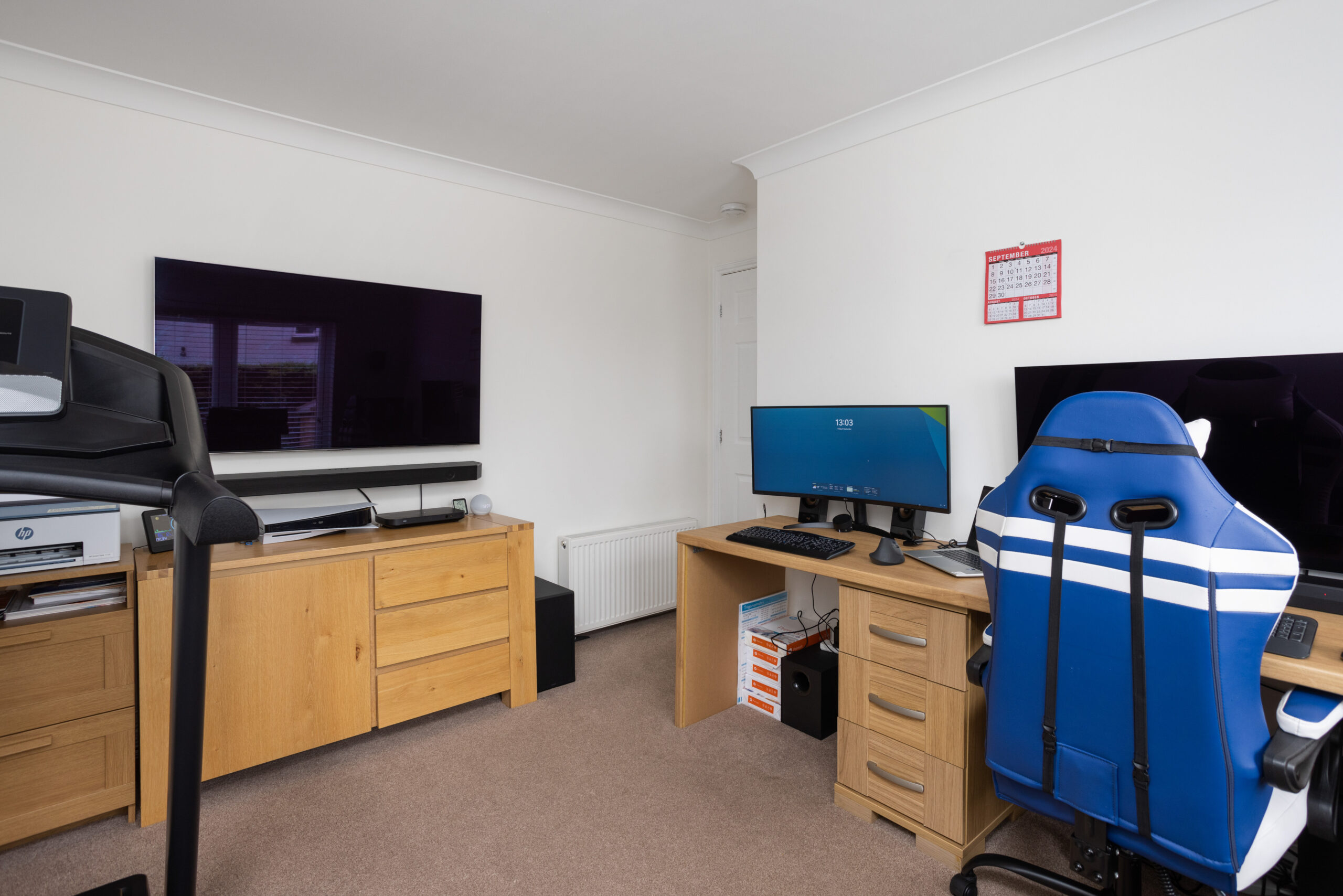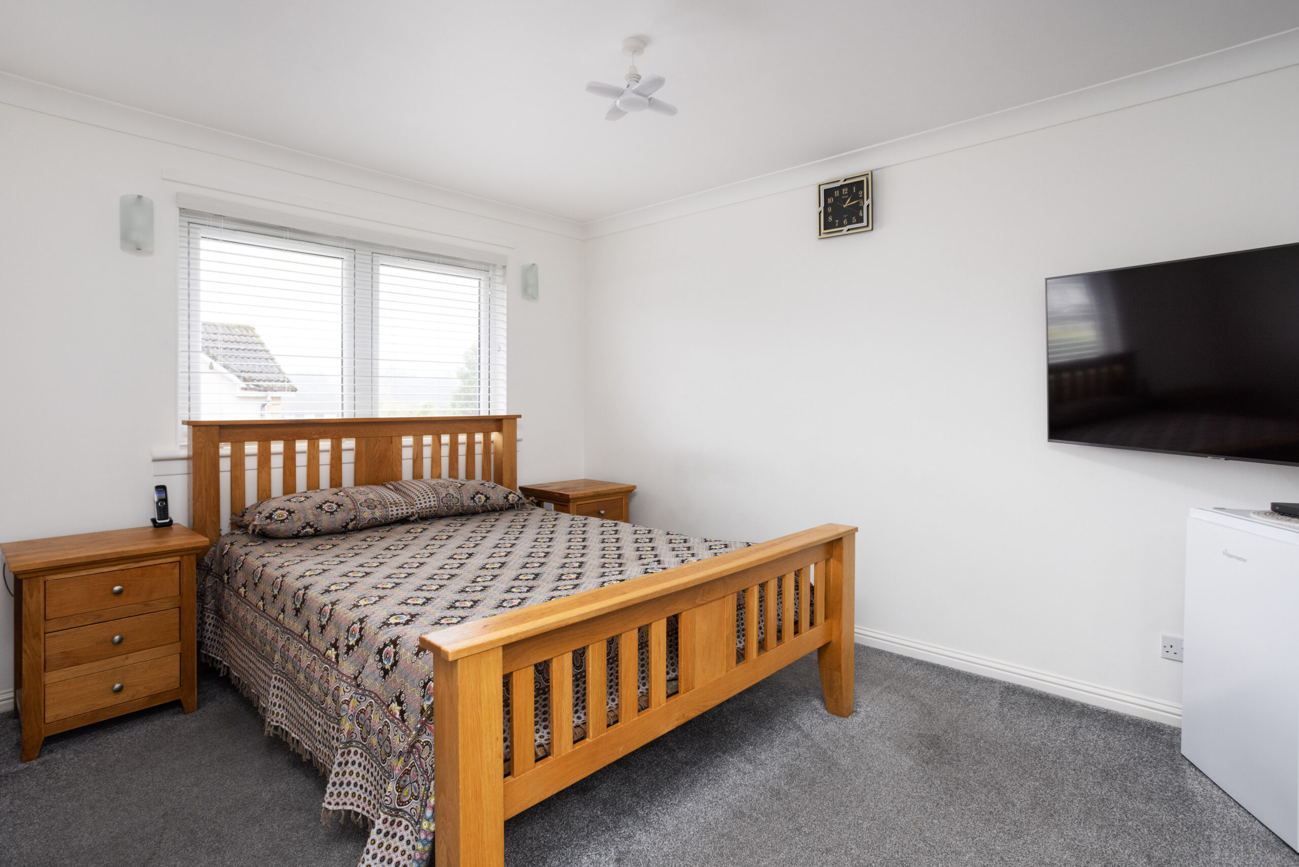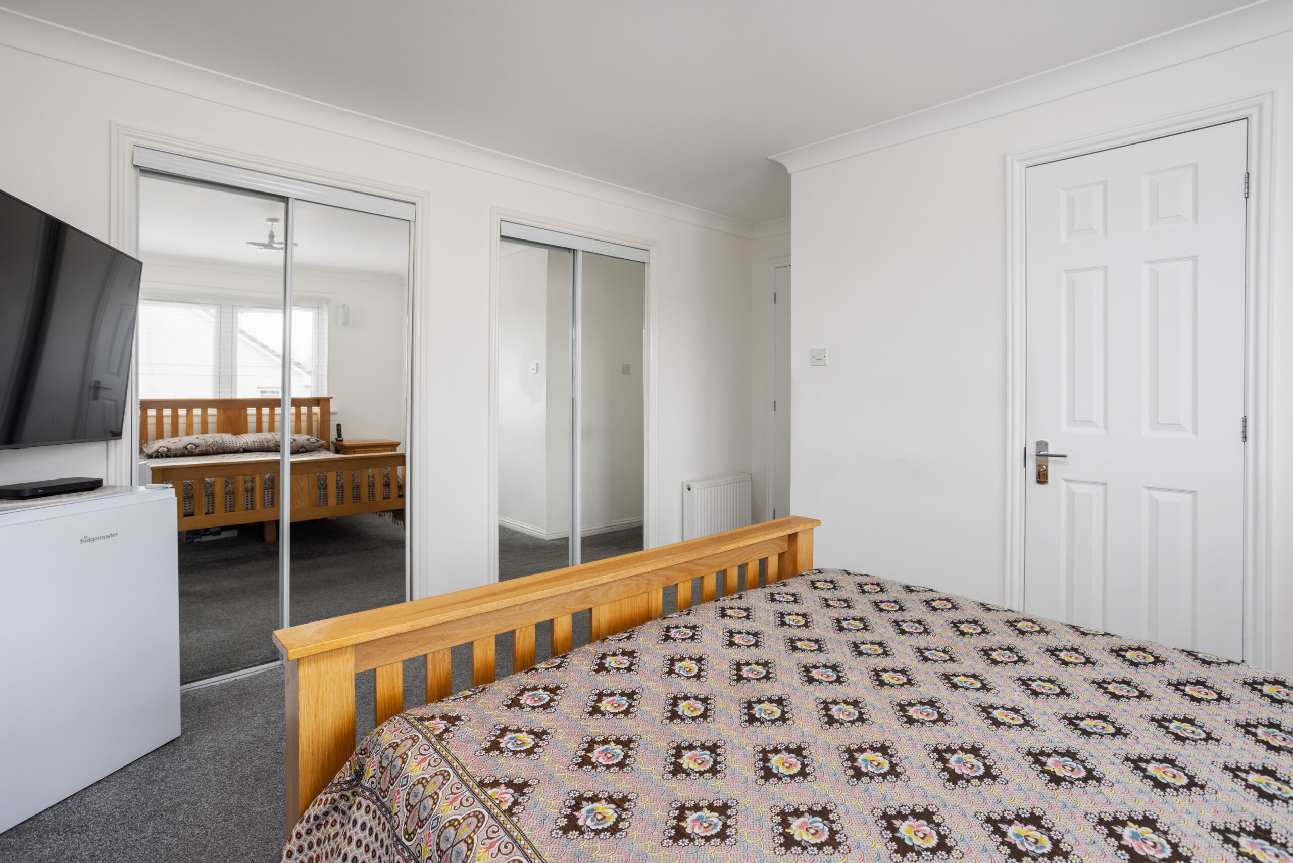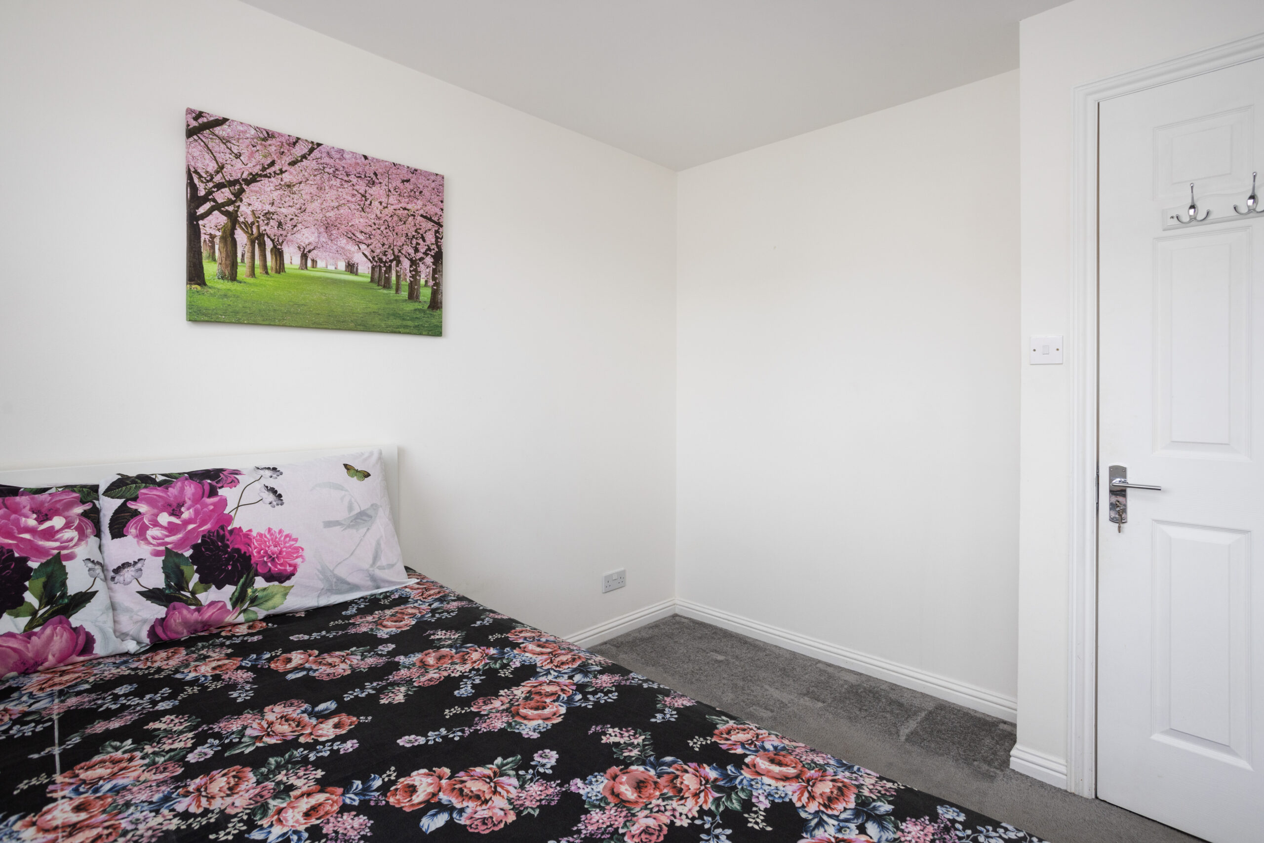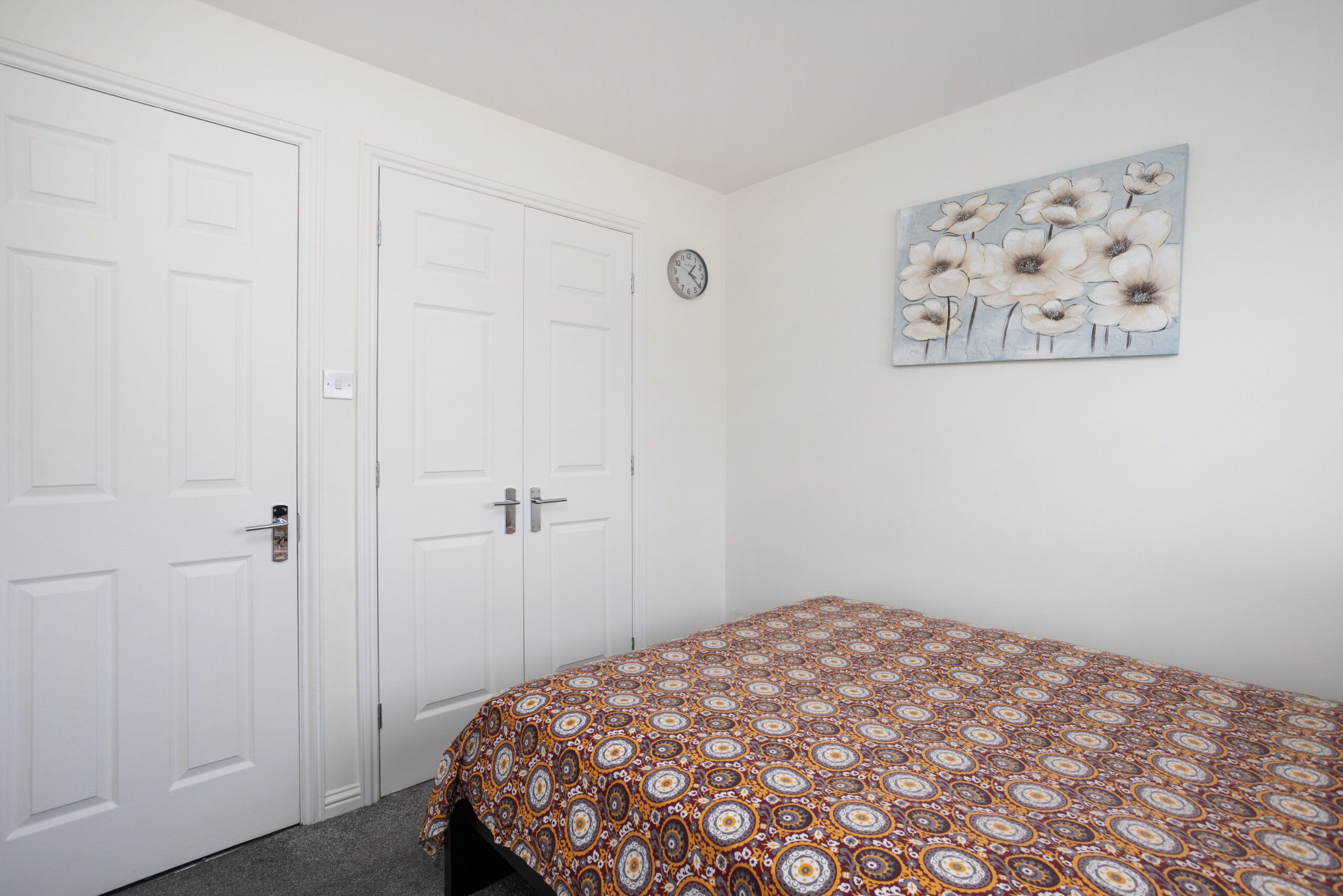 Upstairs, you'll find four generously proportioned double bedrooms, all carpeted for ultimate comfort. The primary suite is a true sanctuary, featuring double-fitted wardrobes with mirrored sliding doors and an en-suite bathroom complete with a shower cubicle, WC, and washbasin. Two of the remaining other double bedrooms also benefit from built-in storage, while the fourth provides ample space for freestanding furniture. The family bathroom boasts a three-piece suite, splashback tiling, and the added benefit of natural light from the window.