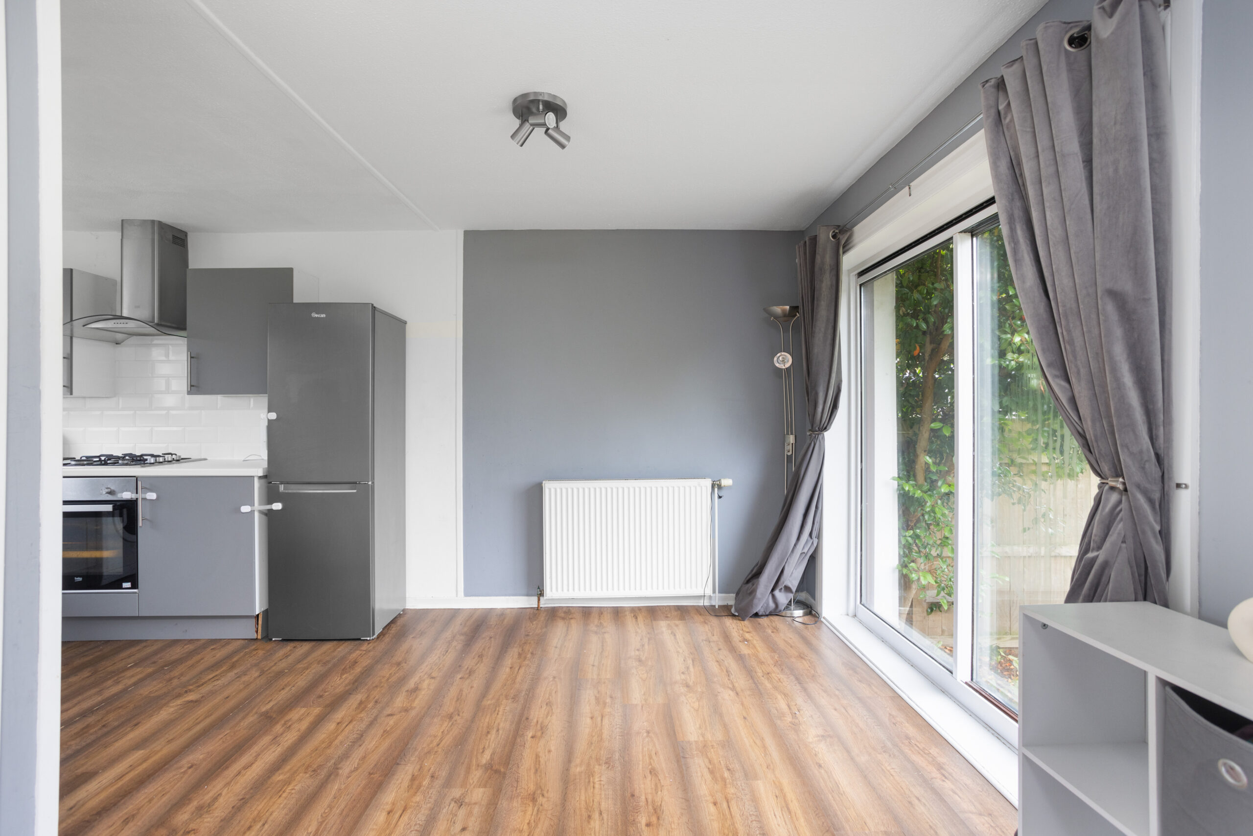 Upon entering, guests are welcomed into a bright hallway, leading to a seamlessly integrated kitchen and living area. The open plan design allows for effortless entertaining and family time, with the lounge space featuring a sizeable window that bathes the room in natural light and offers an inviting view of the garden. A generous store cupboard complements the dining area, which conveniently opens out to the exterior, perfect for those who delight in al fresco dining.