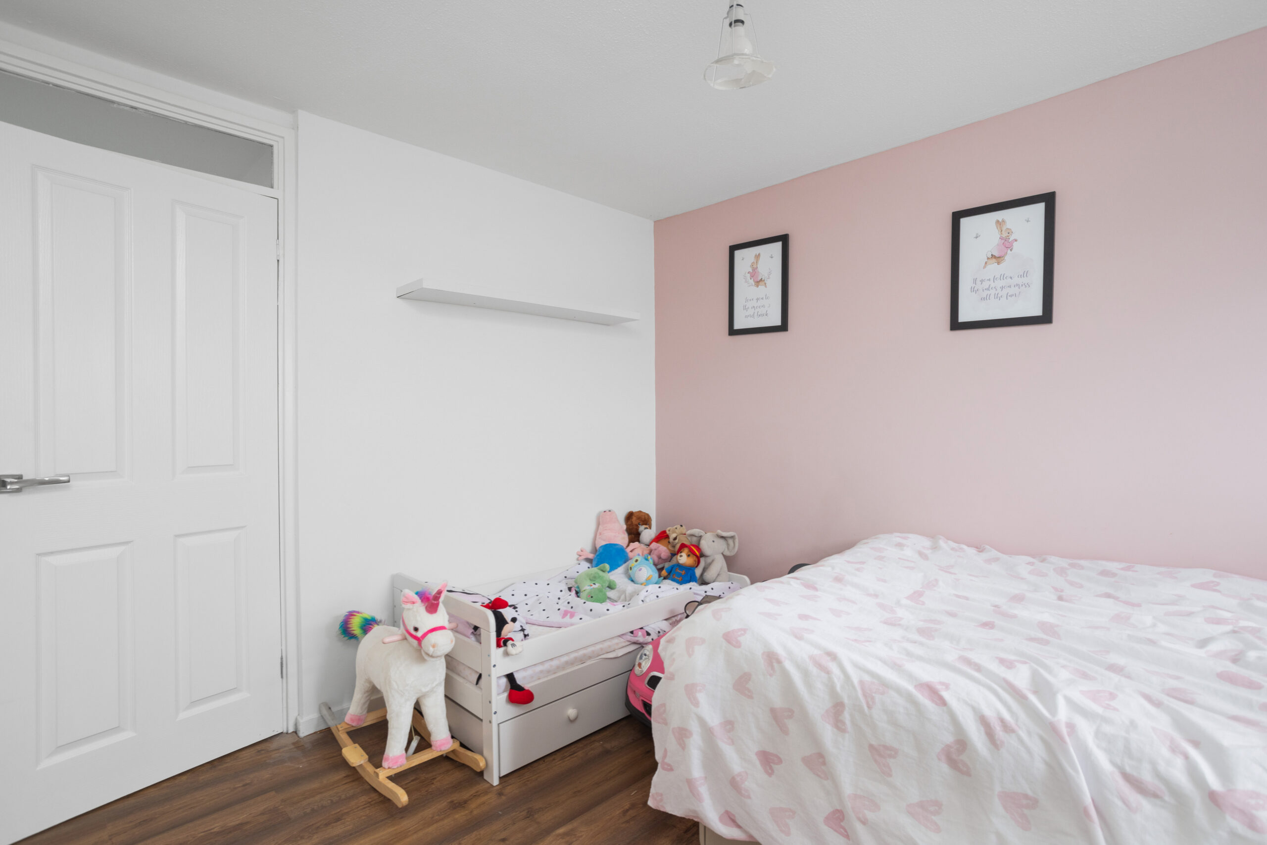 Ascend the carpeted staircase to discover two generously proportioned double bedrooms, both benefiting from built-in wardrobes and ample space for additional furnishings. The residence also includes the invaluable addition of a boxroom, suitable for a home office or nursery. All bedrooms have laminate flooring.
