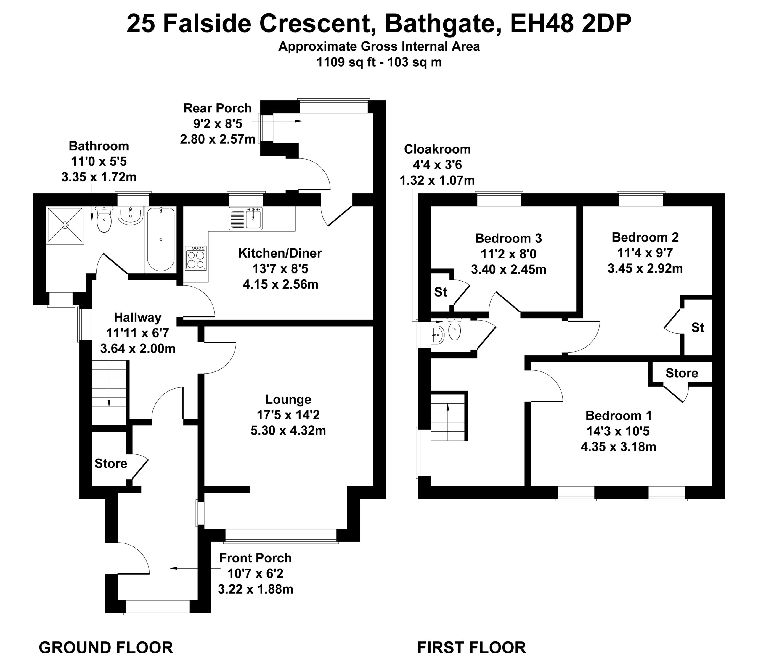 • Schedule Text: Nestled within the sought-after locale of Bathgate, 25 Falside Crescent stands as a testament to family living, having been cherished by the same household for an impressive seven decades. This extended semi-detached home awaits its new owners looking for a great home brimming with warmth and comfort. Upon approach, the entrance vestibule, complete with practical storage solutions for all your household essentials, welcomes you, adorned with parquet flooring. Leading to the entrance hallway which branches into the kitchen, the lounge, and a recently refurbished bathroom, boasting a four-piece suite with modern wet wall panelling. The upgraded bathroom was fitted in September 2022. The extended lounge, bathed in natural light, provides a tranquil retreat, perfect for unwinding. A gas fire complements the cosy ambience, while the space easily accommodates family gatherings. The kitchen/diner offers ample space for a dining table and chairs for enjoying family meals, with a rear porch serving as a utility area, conveniently vented for a dryer and providing access to the outdoors. Ascend the carpeted stairs to discover three generously proportioned bedrooms, each featuring built-in storage solutions and ample space for free-standing bedroom furniture in each room as required (bedroom 3 houses the boiler) A cloakroom with w,c and sink and access to a partially floored loft space complete the upper floor amenities. Outside, the property is encircled by low-maintenance gardens to front side and rear, secure and delightful for both children and pets, complemented by two garden sheds. The robustness of this home is assured by gas heating, double glazing, reharled brickwork, and a roof that has seen recent renewal. With its expansive accommodation and endearing character, 25 Falside Crescent is a gem within West Lothian, ideally suited for families and first-time buyers eager to create new memories.