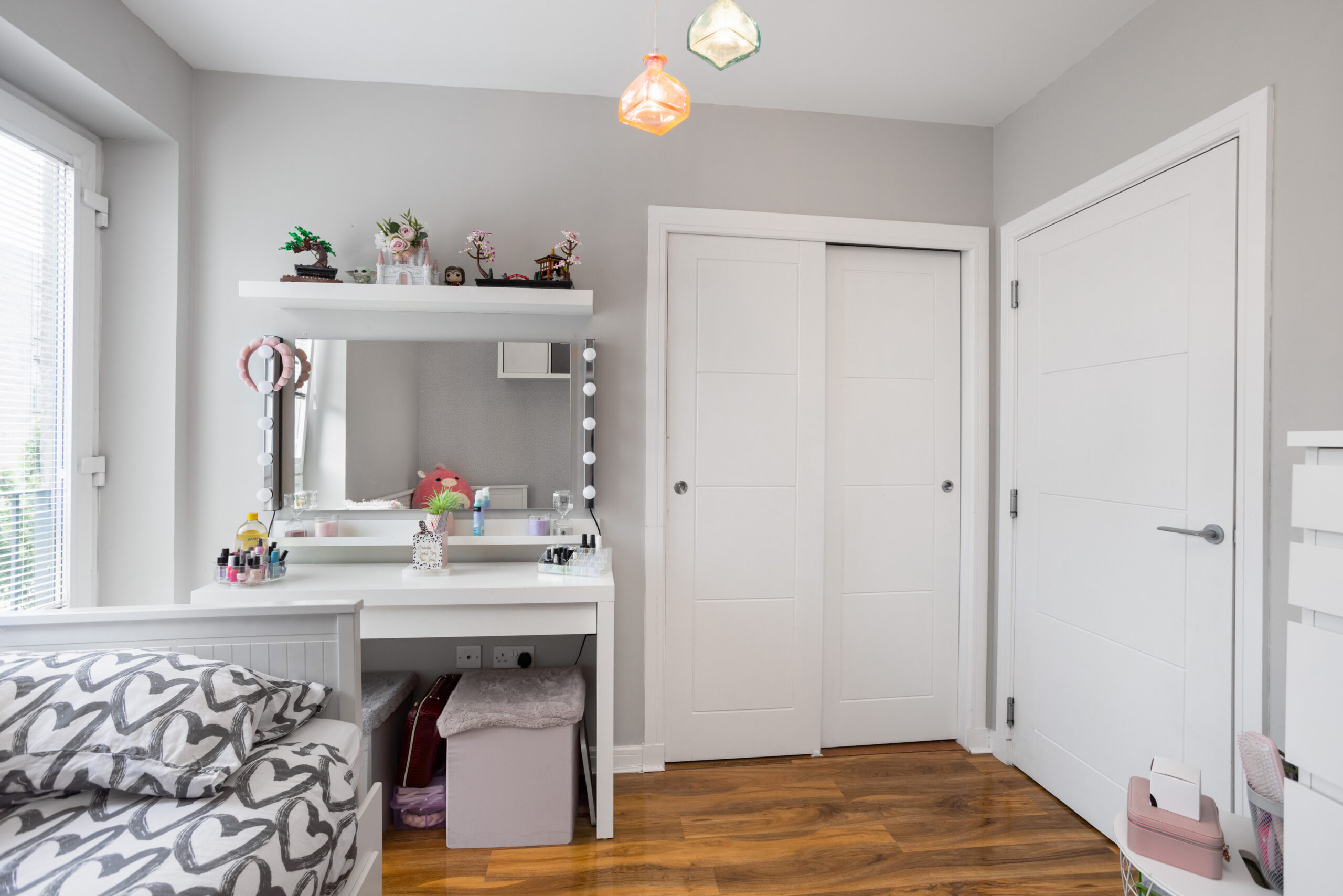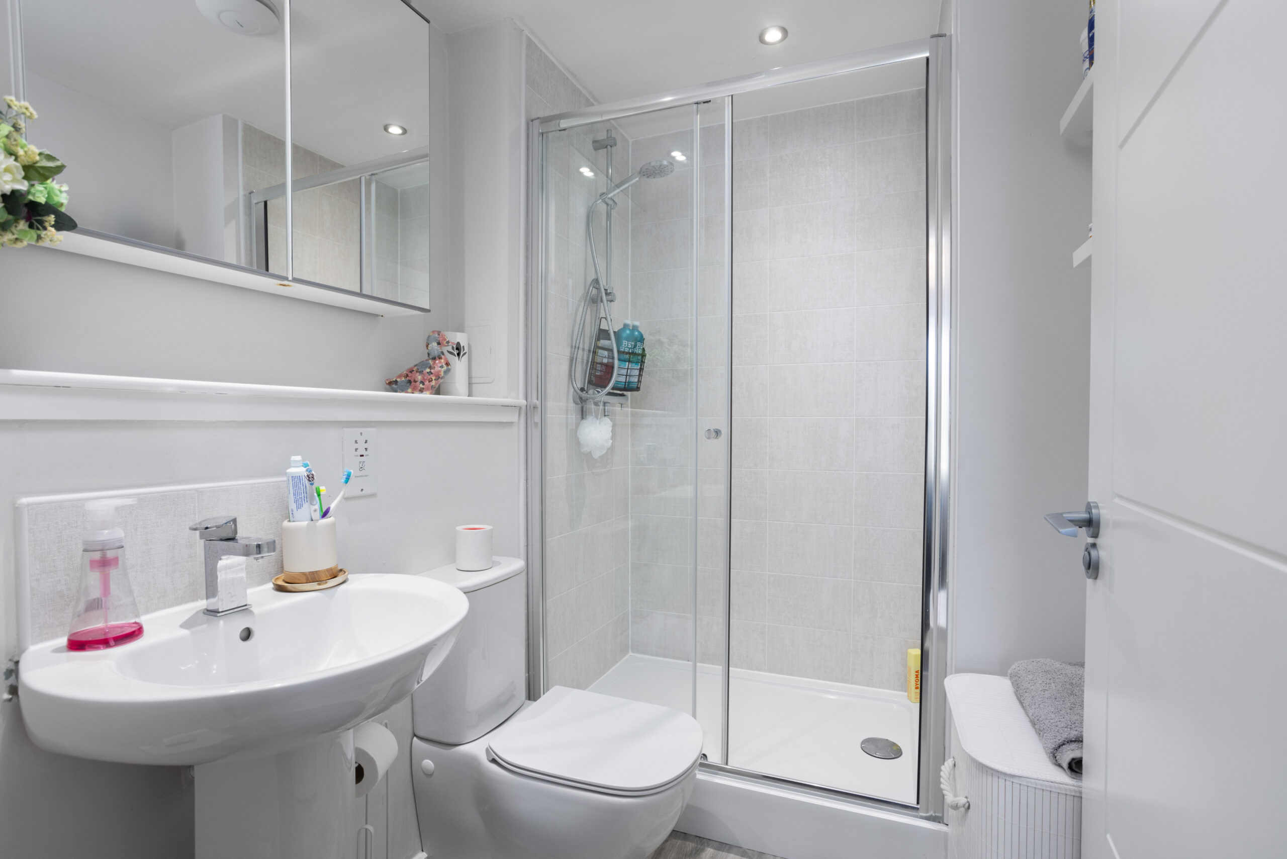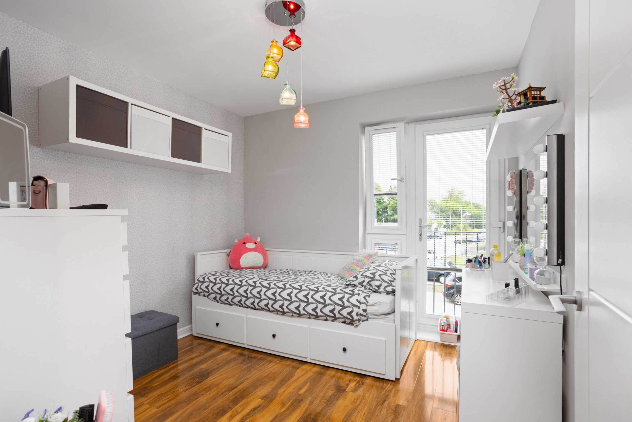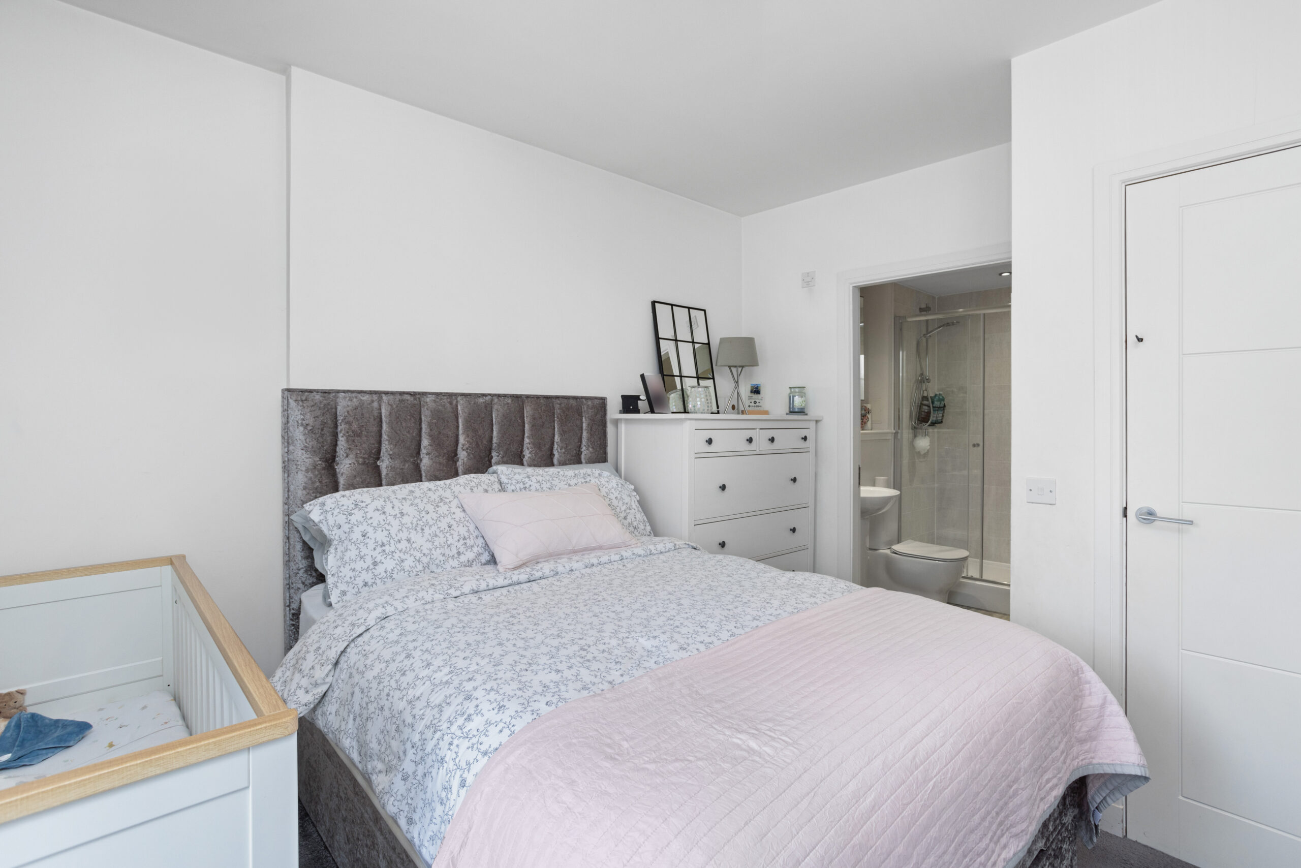 The master bedroom is a sanctuary of comfort with built-in wardrobes, a Juliette balcony, and access to a luxury en suite featuring sleek splashback tiling. Bedroom two does not fall short, offering another sizeable double with built-in wardrobes and ample space for additional bedroom furniture and another Juliet balcony, a lovely feature of this well-appointed property.