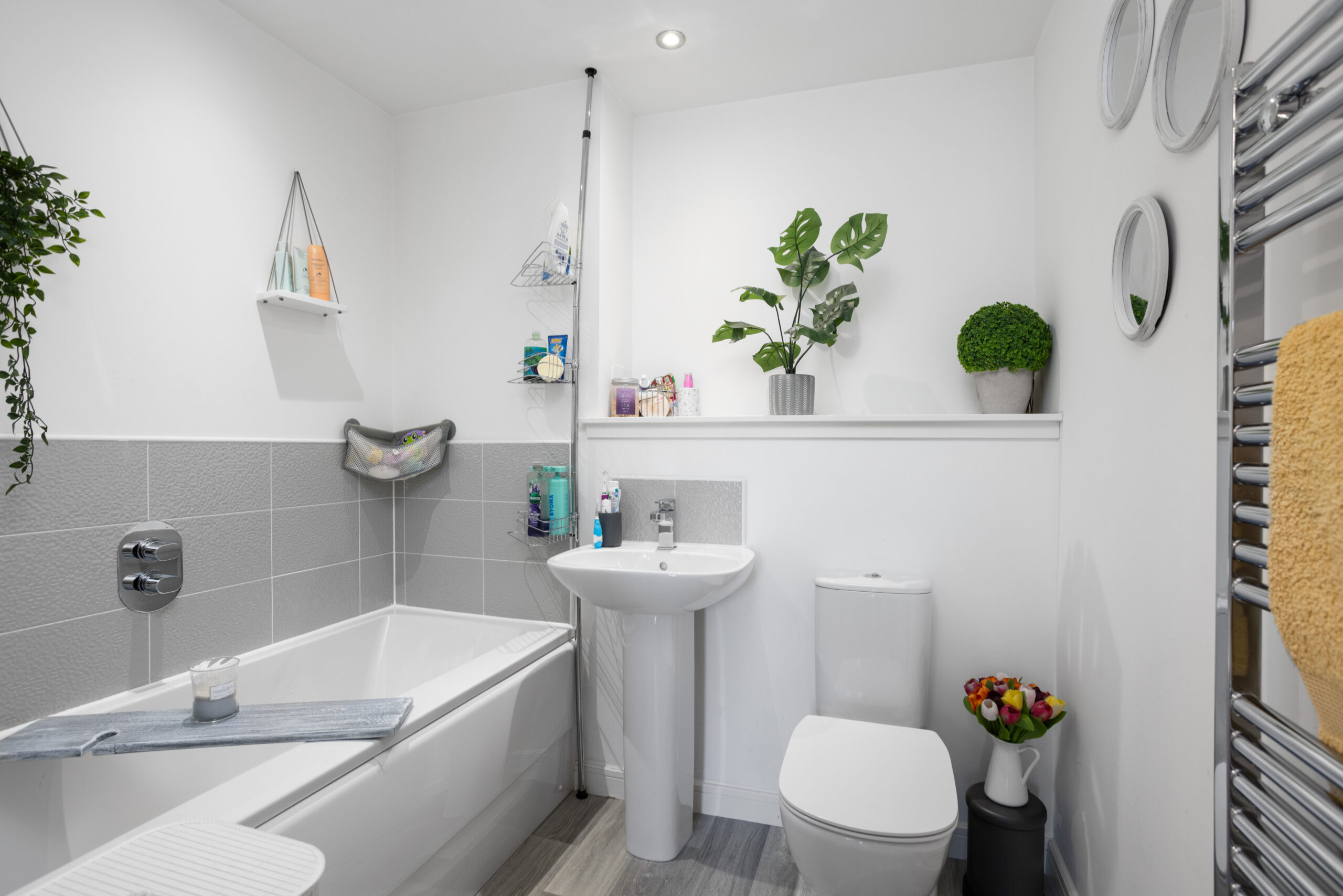 Completing the accommodation is a chic bathroom with a white suite, stylish splashback tiles, and a plank-effect vinyl floor. The benefits of gas heating and double glazing ensure your comfort throughout the seasons.
