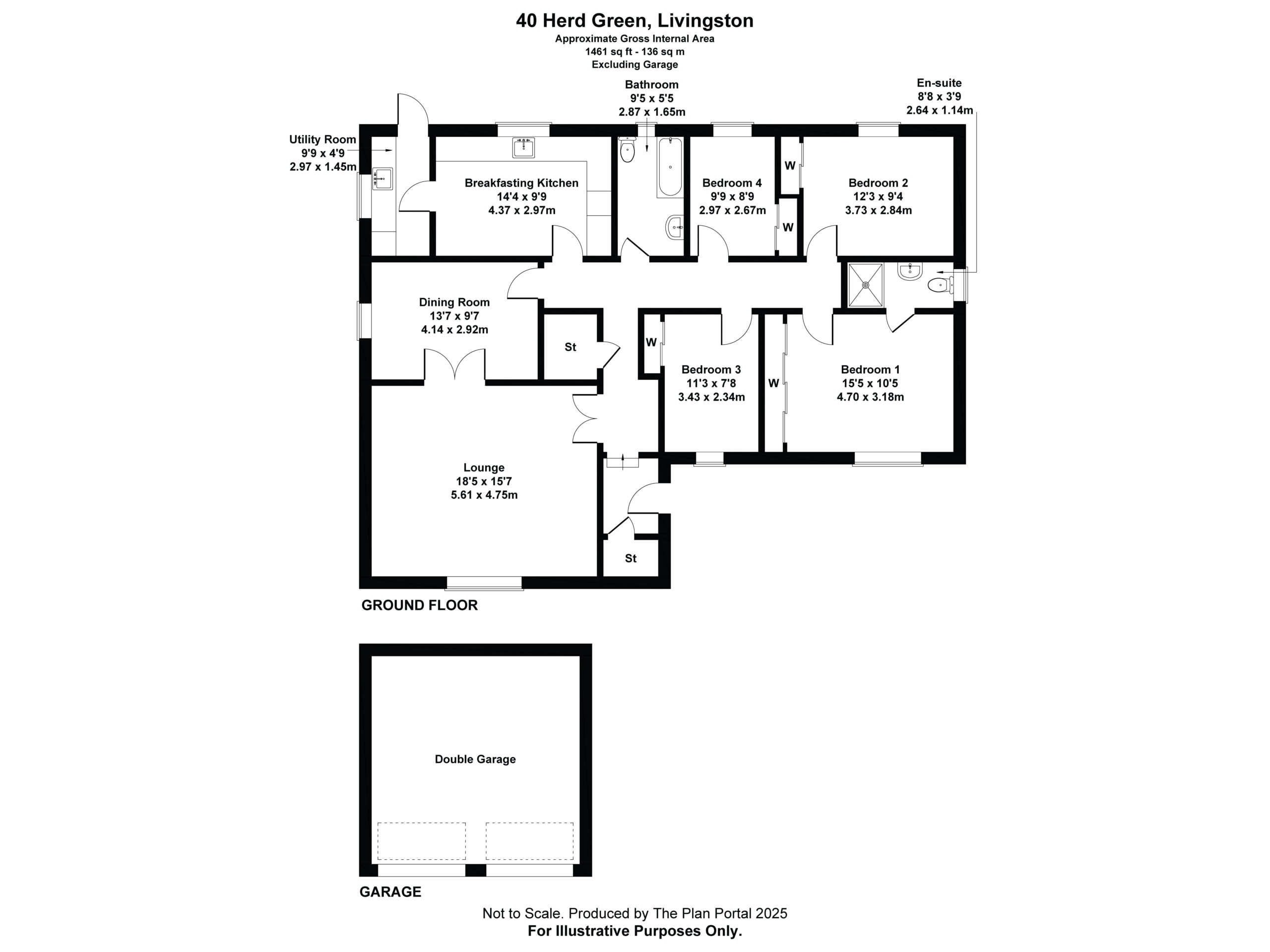 Externally, the property sits within a substantial plot. To the front, there is ample parking for several vehicles on the large driveway, which leads down to a double garage positioned below the main living accommodation. The garage is equipped with power, lighting, and a water tap, providing excellent storage and workspace potential.