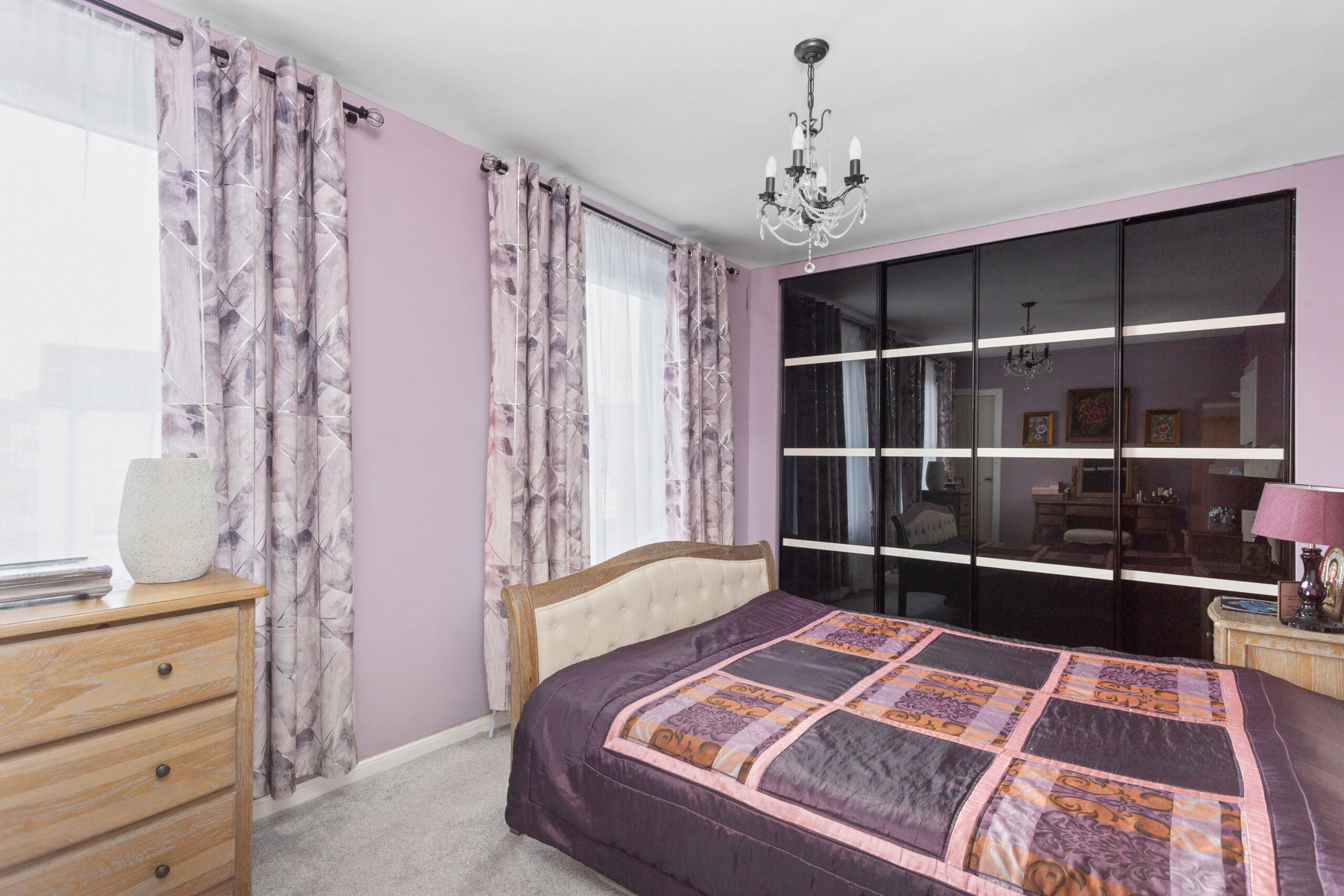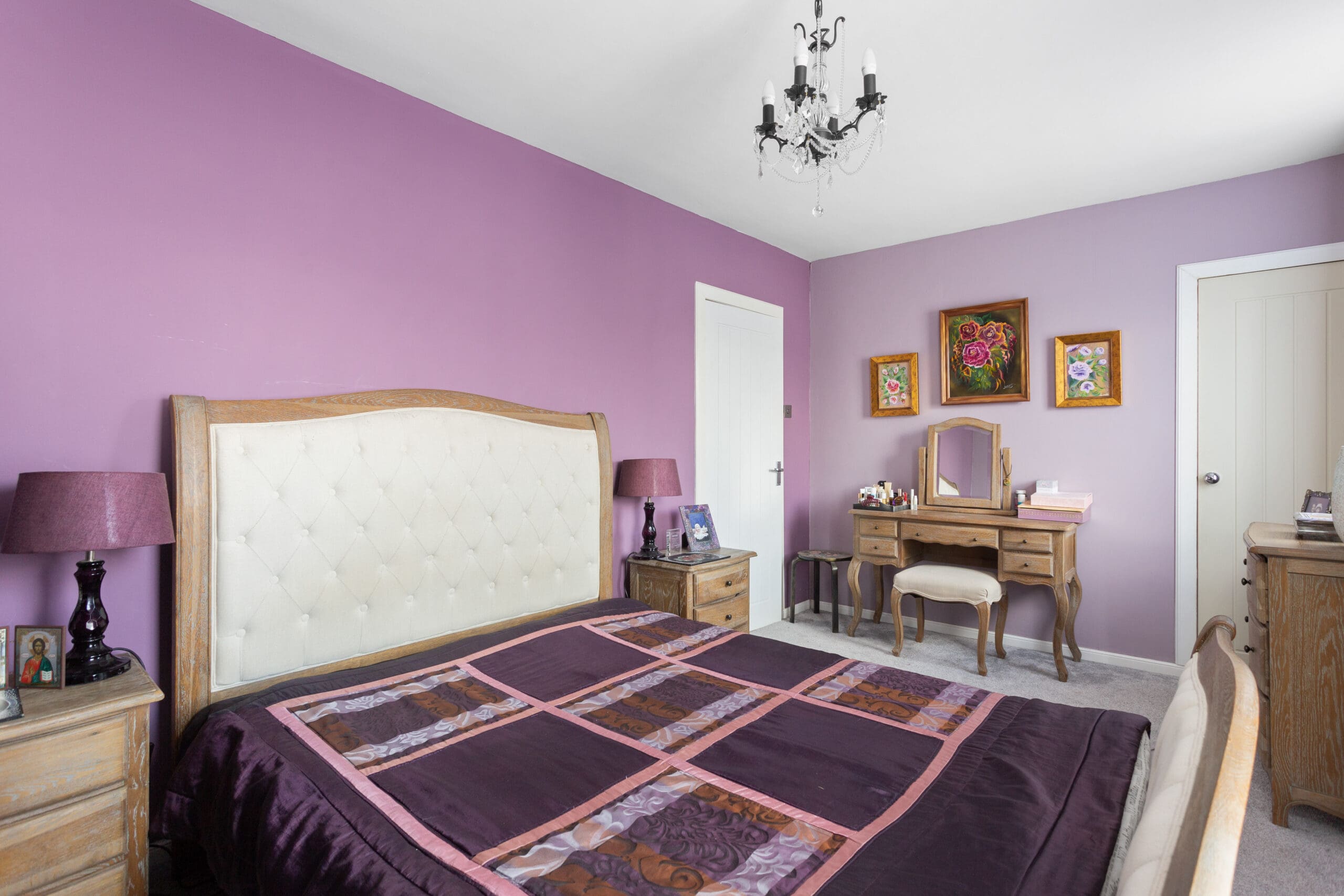 Upstairs, three well-appointed bedrooms invite rest and repose all with fitted carpets for maximum comfort. The master bedroom features fitted wardrobes with sliding doors along with an additional store cupboard for all your belongings to be neatly stored away. Bedroom 2 is another generous double and bedroom 3 is beautifully finished in a relaxing pastel green and all rooms offer space for free-standing bedroom furniture.