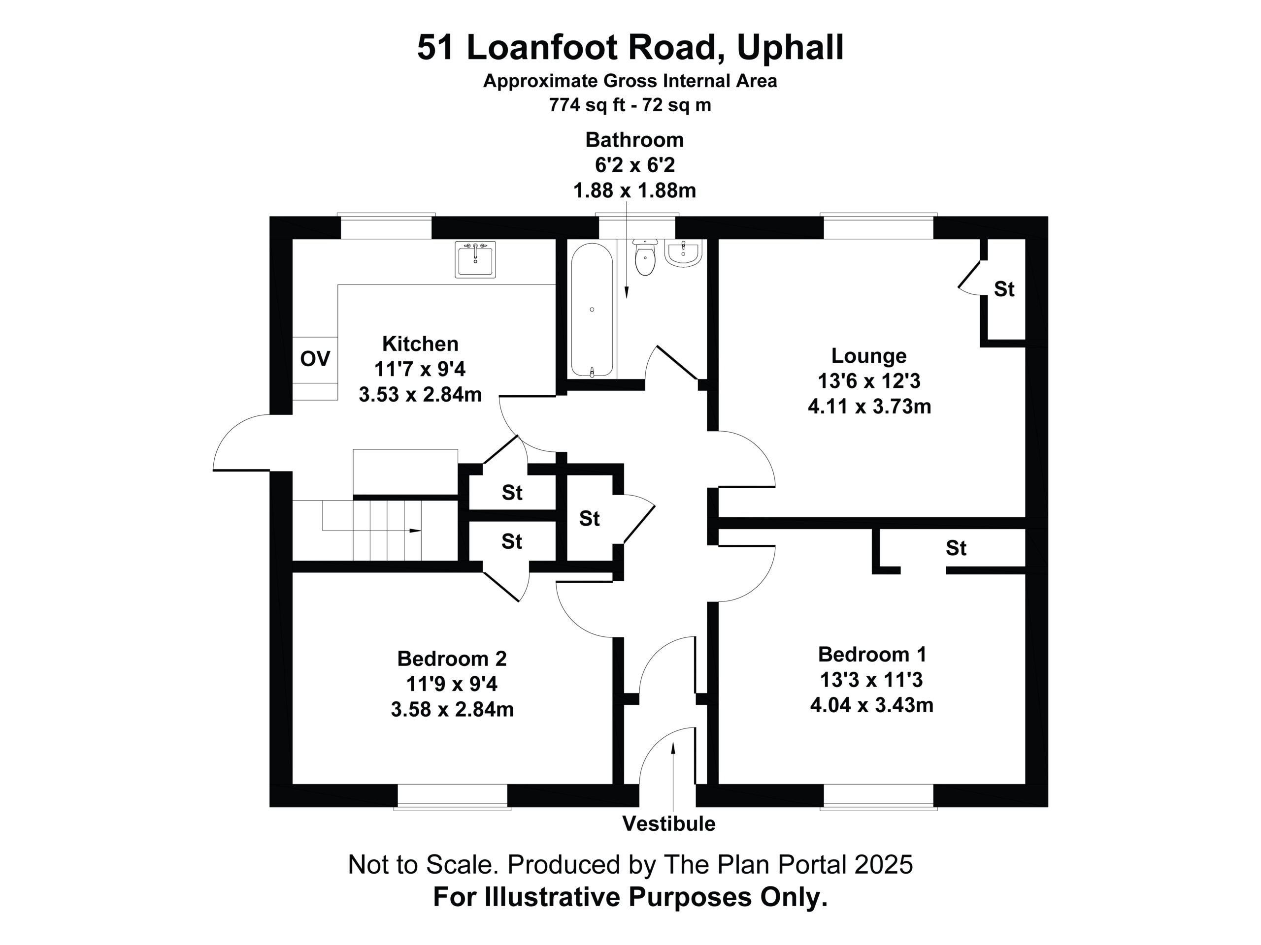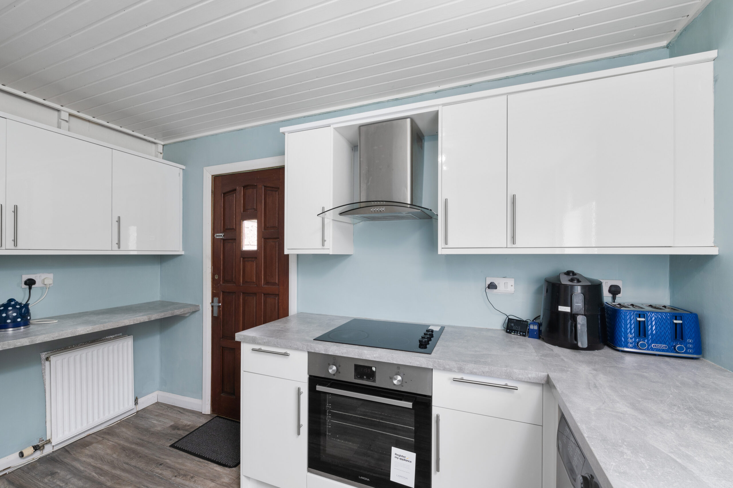 • Schedule Text: A Fantastic Ground Floor Apartment with Driveway and Private Garden in Popular Uphall Nestled within the tranquil locale of Uphall, West Lothian, lies a charming ground floor main door apartment, beckoning first-time buyers, savvy downsizers, or astute investors. Welcome to 51 Loanfoot Road, a delightful residence that promises both comfort and convenience. Step through the front door into a welcoming vestibule, which leads into a central hallway providing access to all rooms within the home. A handy shelved storage cupboard in the hall offers excellent space for coats, shoes, or household essentials, while the laminate flooring enhances the sense of warmth and continuity throughout. To the rear of the property, the bright and comfortable lounge enjoys views over the garden, creating a peaceful and relaxing space to unwind. A store cupboard within the lounge discreetly houses the boiler, keeping the space practical as well as stylish. A feature papered wall adds a bold touch to the neutral decor. The kitchen has been designed with both style and functionality in mind. Fitted with sleek white high-gloss base and wall units, grey worktops, and modern integrated appliances including an oven, induction hob, dishwasher, and extractor hood, sure to inspire culinary endeavours. There is also ample room for a free-standing washing machine and fridge/freezer, and the additional pantry-style cupboard provides fantastic extra storage. A door from the kitchen leads directly out to the rear garden, offering convenient outdoor access. There are two generous double bedrooms in the property, both offering great proportions and built-in storage. The principal bedroom features a subtle wallpaper feature on one wall and soft carpeting underfoot, creating a calm and restful atmosphere. The second bedroom is equally well-appointed, with its own built-in storage space. Completing the accommodation is the family bathroom, fitted with a crisp white three-piece suite and a shower over the bath. Wall panelling ensures easy maintenance while adding a polished finish. Further benefits include gas central heating and double glazing throughout, providing comfort and efficiency all year-round. Externally, the apartment benefits from a monoblock driveway providing ample parking for two vehicles, while the private rear garden is laid to lawn and offers a decked area - a great spot for relaxation or entertaining.