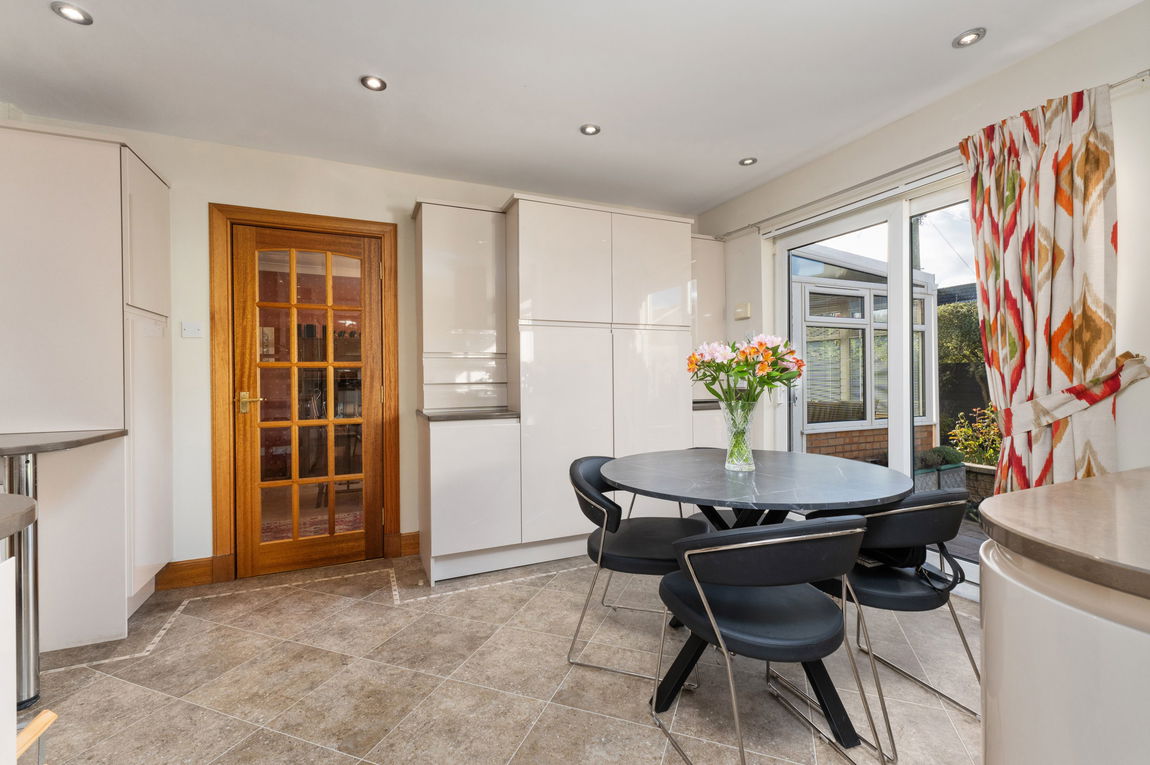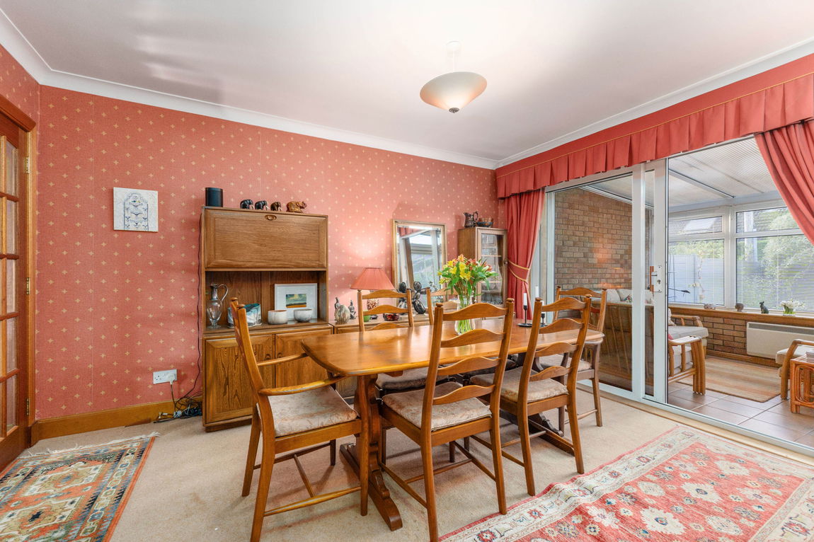 The spacious front-facing lounge is a bright and inviting room, with a large triple-glazed window overlooking the front garden. A brick-surround fireplace provides a cosy focal point, and double doors lead seamlessly into the dining room - perfect for entertaining or family gatherings. The dining area is a versatile space ideal for everyday meals or special occasions and connects to both the conservatory and the kitchen/diner, allowing for easy flow between the main living areas.