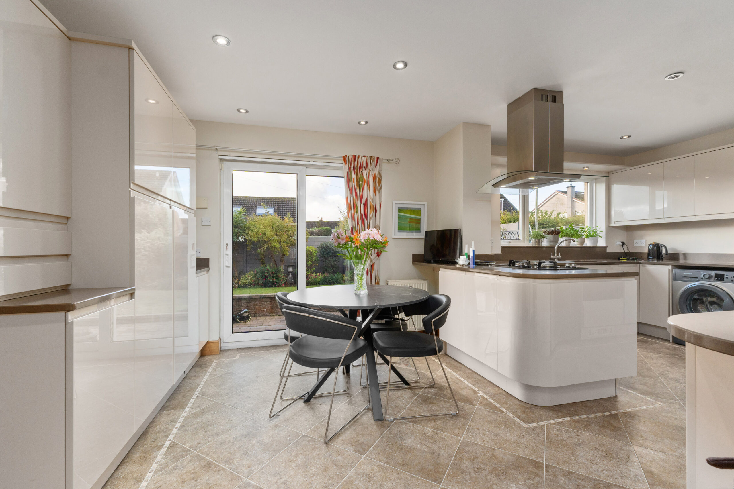 This rarely available extended family home, nestled in a quiet, leafy cul-de-sac in the heart of Uphall, offers a wonderful blend of space, style, and comfort. From the moment you arrive, the property's attractive exterior makes an impression, with a monoblocked driveway providing ample parking and leading to a single garage fitted with an electric door, power, and lighting. The garage has been lined for added practicality, while the front garden, attractively chipped and adorned with a variety of mature trees and shrubs, adds charm and kerb appeal. Behind the stunning front door, featuring decorative stained-glass panels, lies a home full of warmth and character.