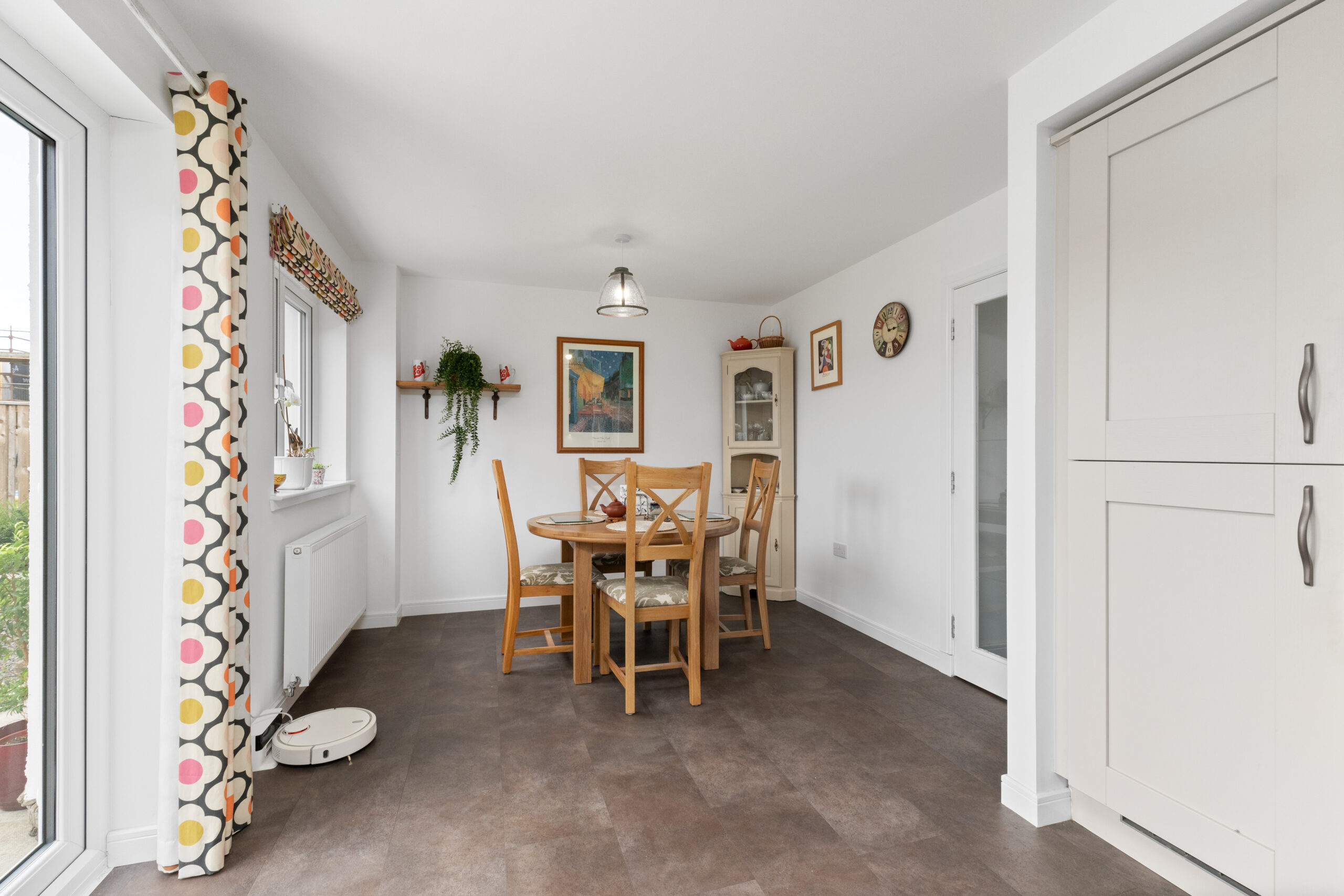 Inside, the home is equally impressive. On entering the home, you're welcomed into a bright and well-proportioned hallway, where two built-in storage cupboards provide the perfect spot for neatly storing coats, shoes, and everyday essentials-keeping the space clutter-free and organised from the moment you walk in. The lounge sits to the front of the property and benefits from dual-aspect windows that flood the room with natural light creating a bright, comfortable setting-perfect for both entertaining and quiet nights in.