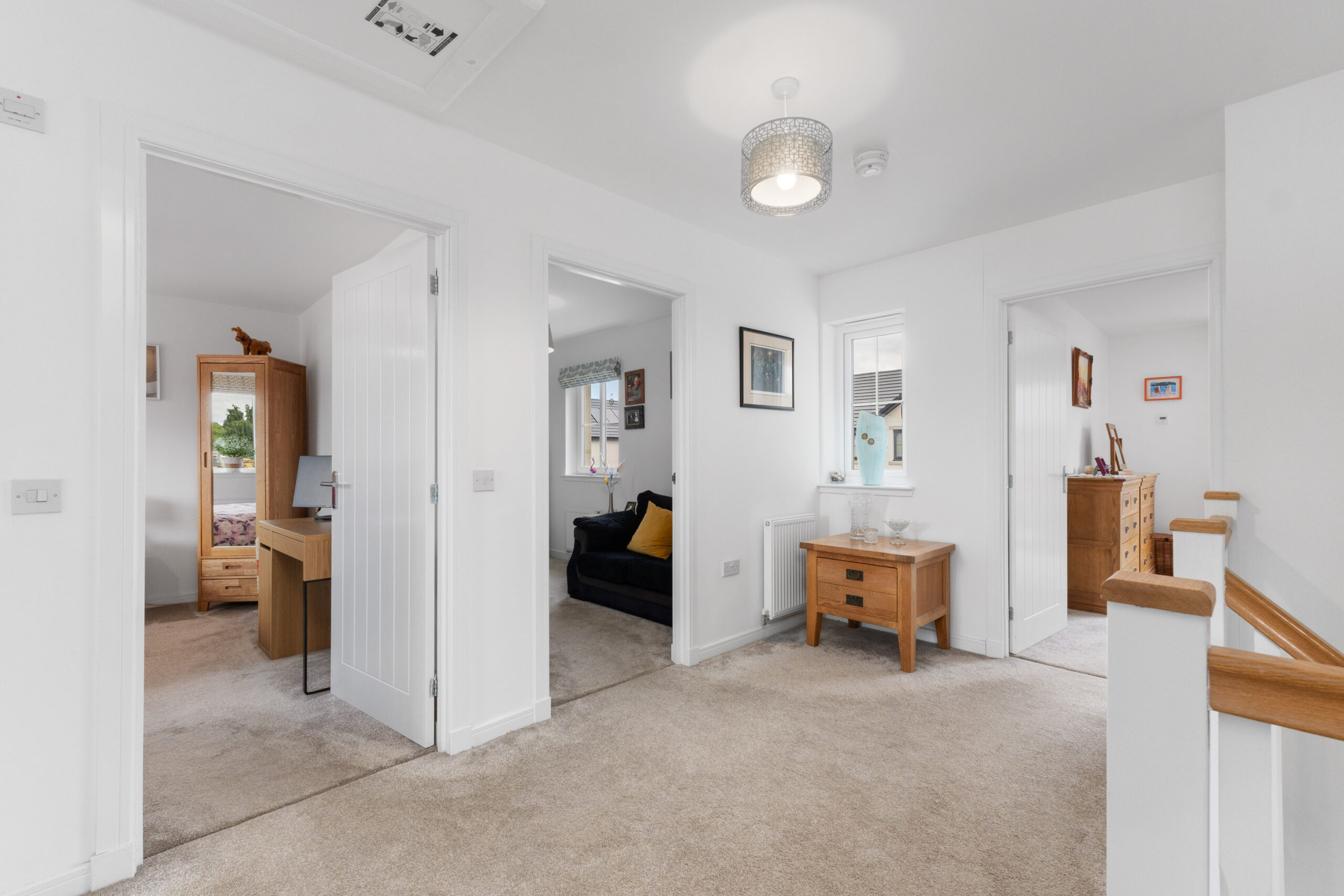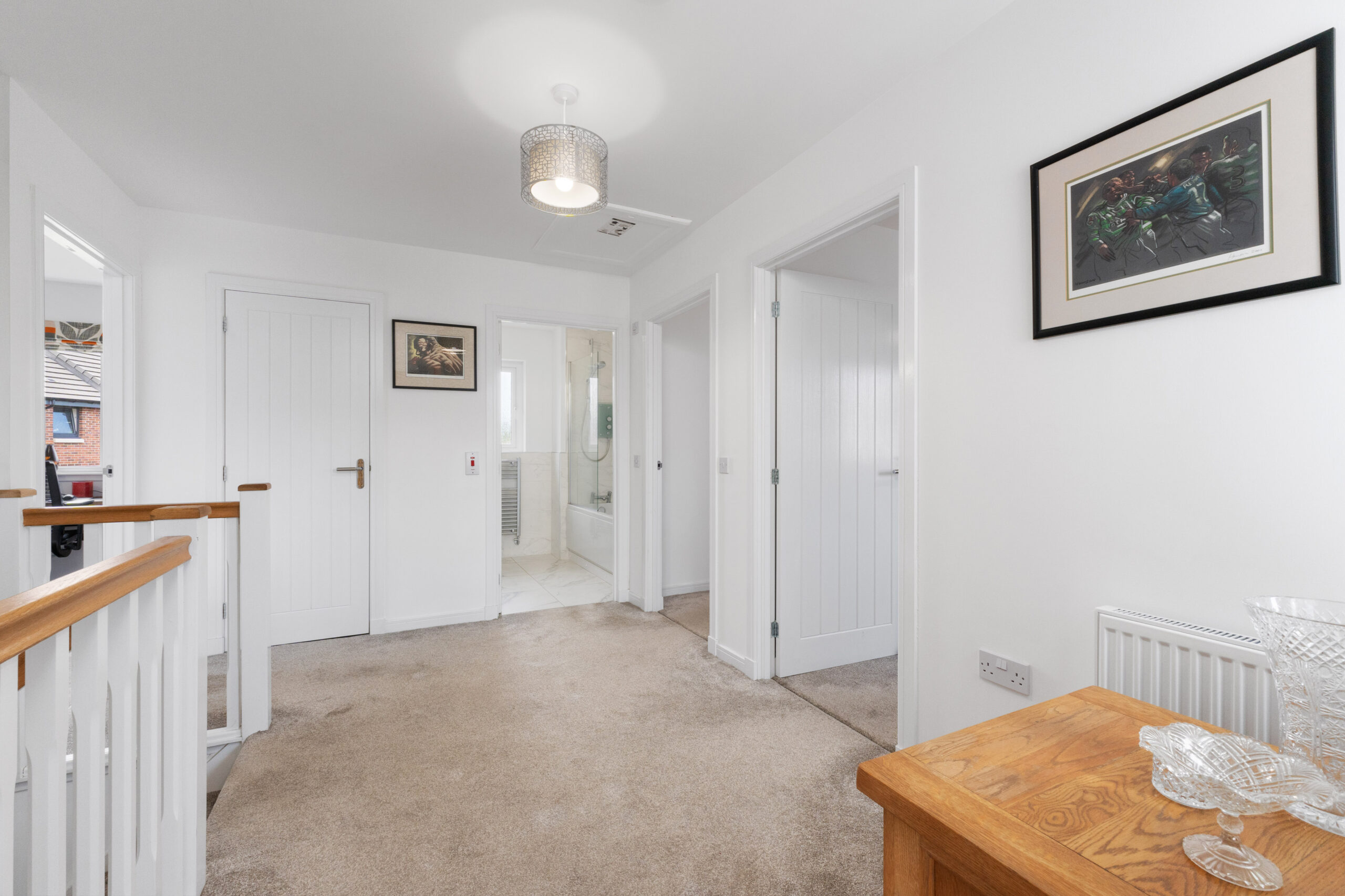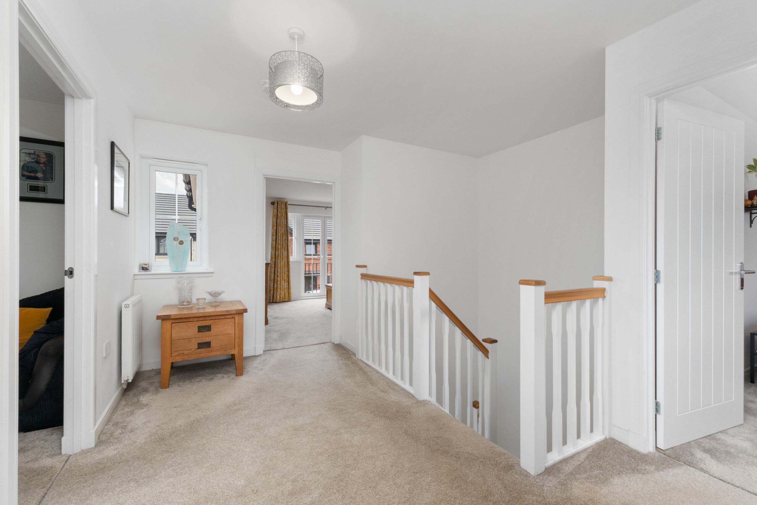 Upstairs, the home continues to deliver on space and light. A particularly large upper landing provides a real feeling of openness-not just a corridor, but a flexible space that could be used as a reading corner or simply enjoyed for its sense of flow and proportion. The hallway enjoys yet another store.