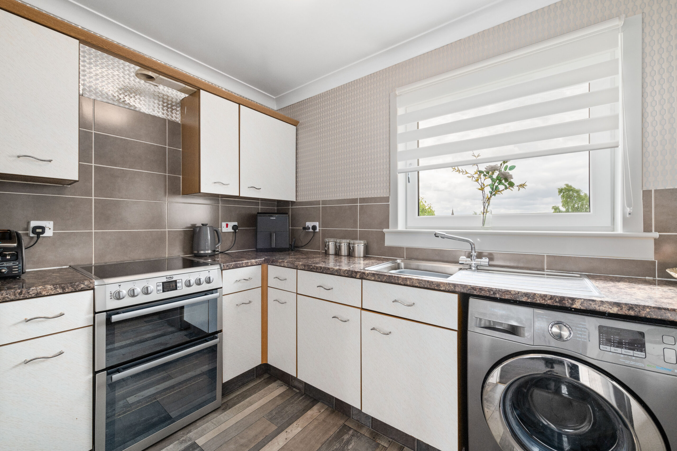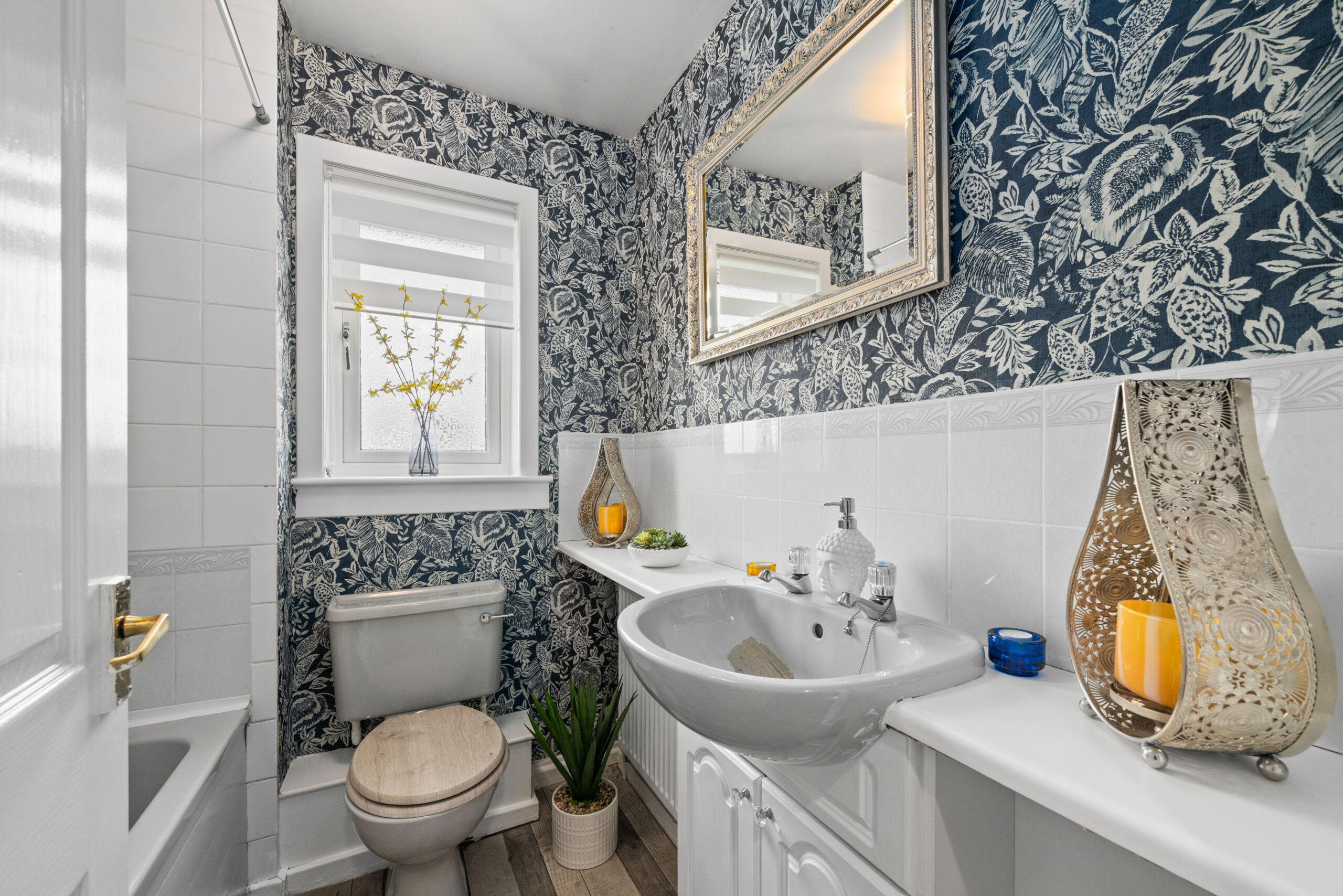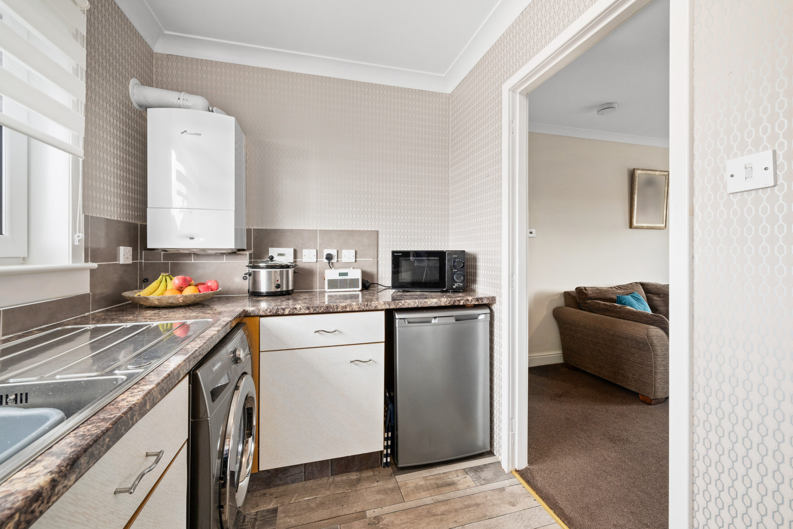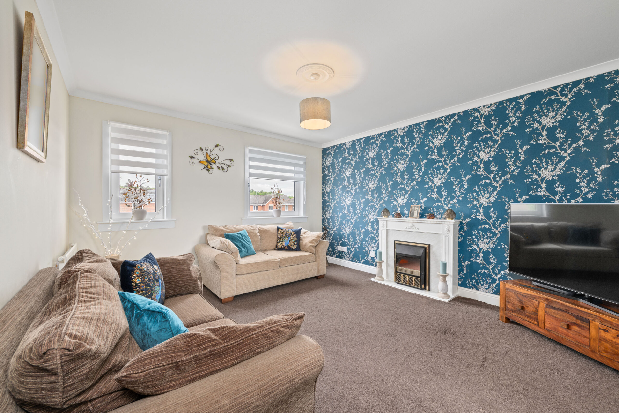 • Schedule Text: Welcome to 31 Nicol Place, a charming main door upper apartment nestled in the heart of Broxburn, West Lothian. This delightful property presents an exceptional opportunity for first-time buyers and astute investors alike, offering all the conveniences for modern living in a sought-after locale. As you step through the double-glazed entrance, a carpeted staircase invites you up to a well-proportioned landing, boasting generous storage space for all your essentials and a handy hatch to the partially floored loft area. The lounge is a haven of comfort, bathed in natural light from the front-facing windows. The room features tasteful neutral decor complemented by a striking feature wallpaper to one wall, a cosy carpet underfoot, and an elegant fire surround-perfect for relaxing evenings in. Adjacent to the lounge, the kitchen, a well-equipped space with a wide range of base and wall units. It includes space for a free-standing cooker, fridge, and washing machine (included as seen, with no warranty) set against splashback tiles and plank-effect vinyl flooring. Bedroom one offers a serene retreat with its lovely bright double space, adorned with very pretty wallpaper and fitted wardrobes over plush carpeting. Bedroom two is a generously sized second room with contemporary grey walls, overlooking the private garden, and ample space for free-standing furniture. The bathroom is presented with a w.c., wash hand basin, and bath complete with a shower above. To the rear, the garden is a low-maintenance paved area with a drying space, ideal for those sunny days. With the added benefits of gas heating, double glazing, allocated parking alongside ample visitor spaces, and your own slice of the outdoors, 31 Nicol Place is a smart choice for anyone seeking a delightful abode in West Lothian. Don't miss out on this splendid opportunity. Extras: Floor coverings, blinds, light fittings (except hallway and lounge) free-standing cooker, washing machine and washing machine. The fire and surround.