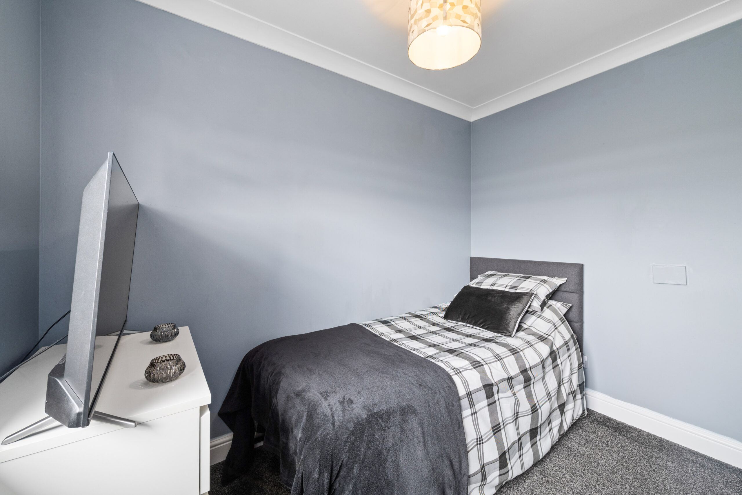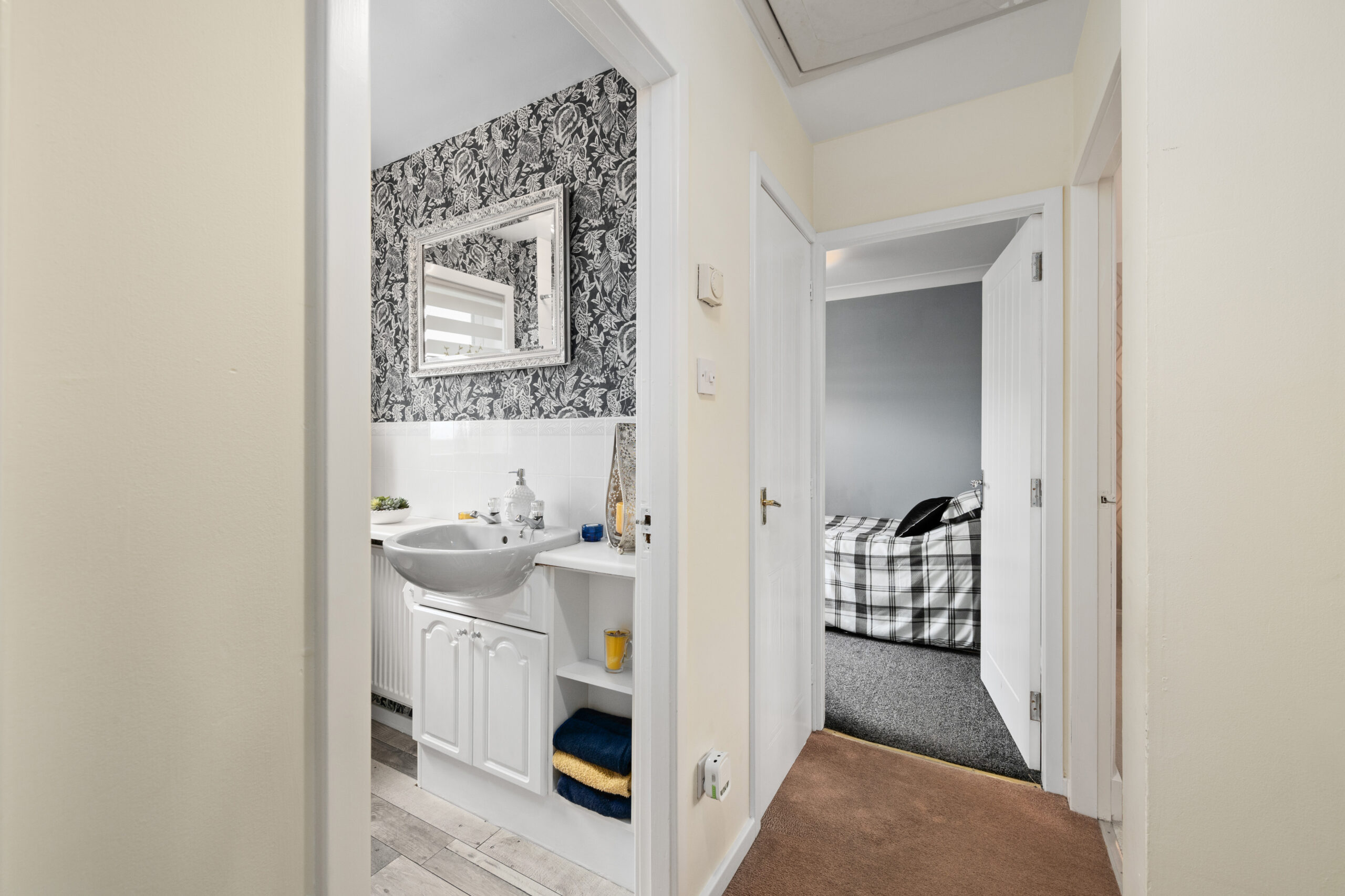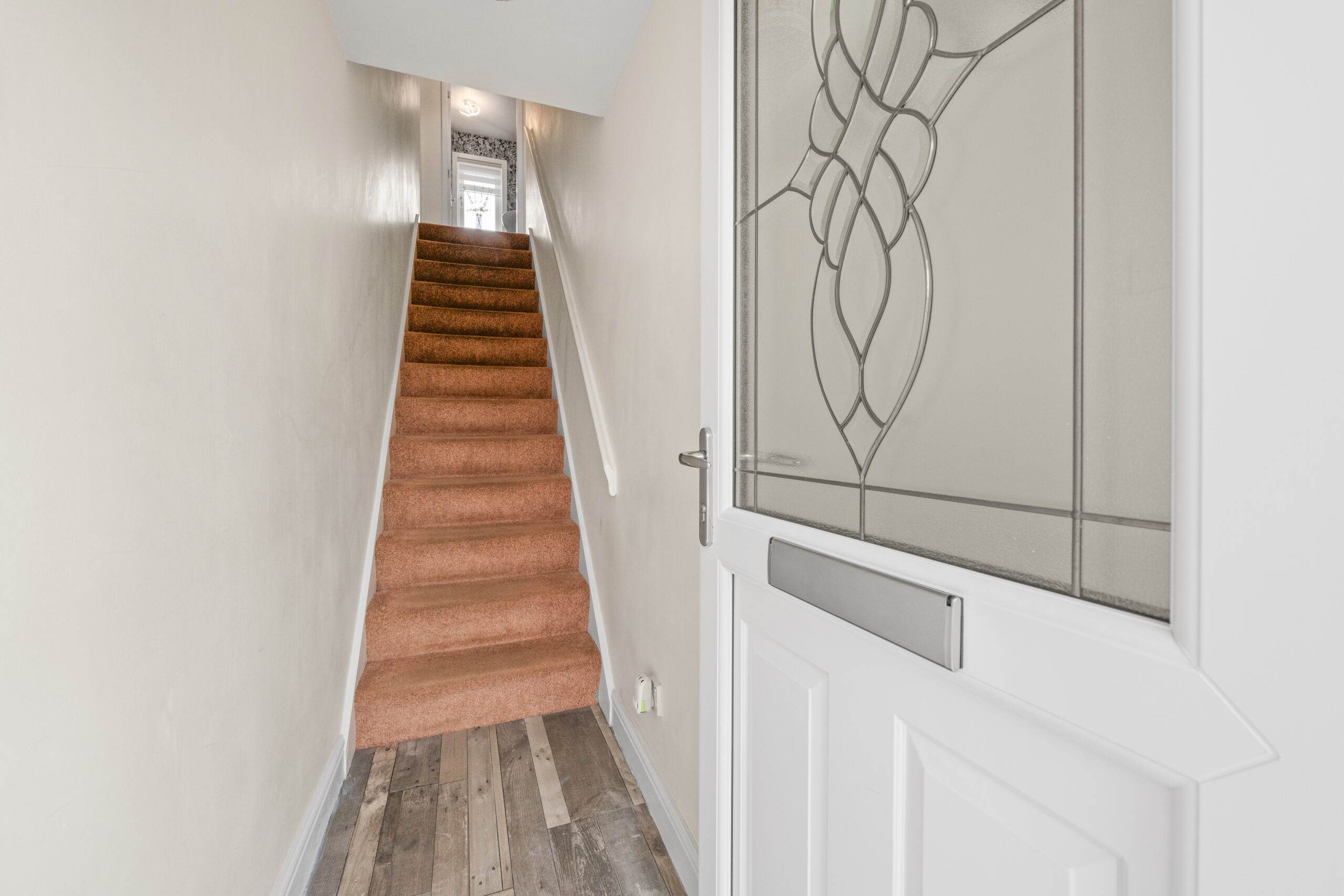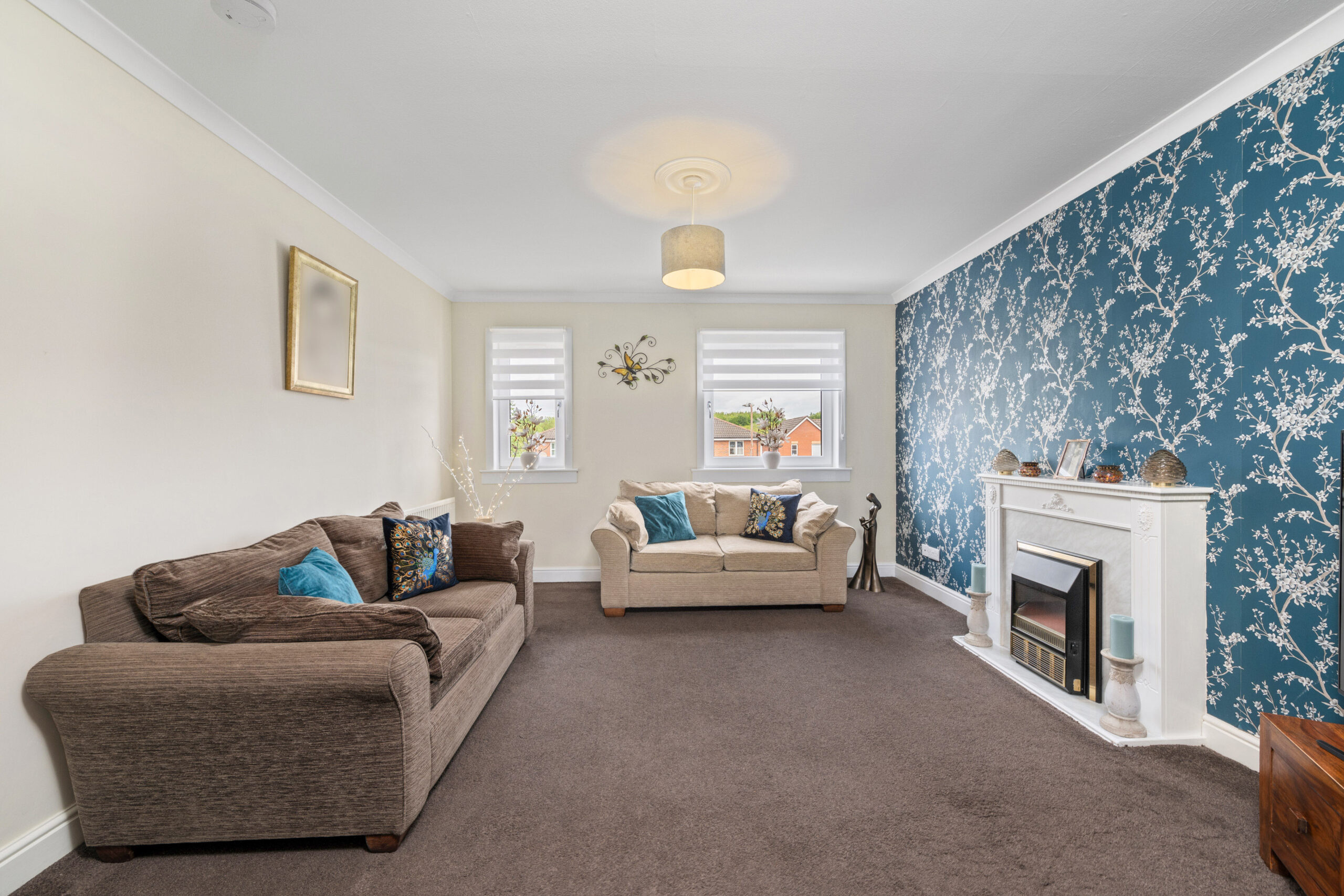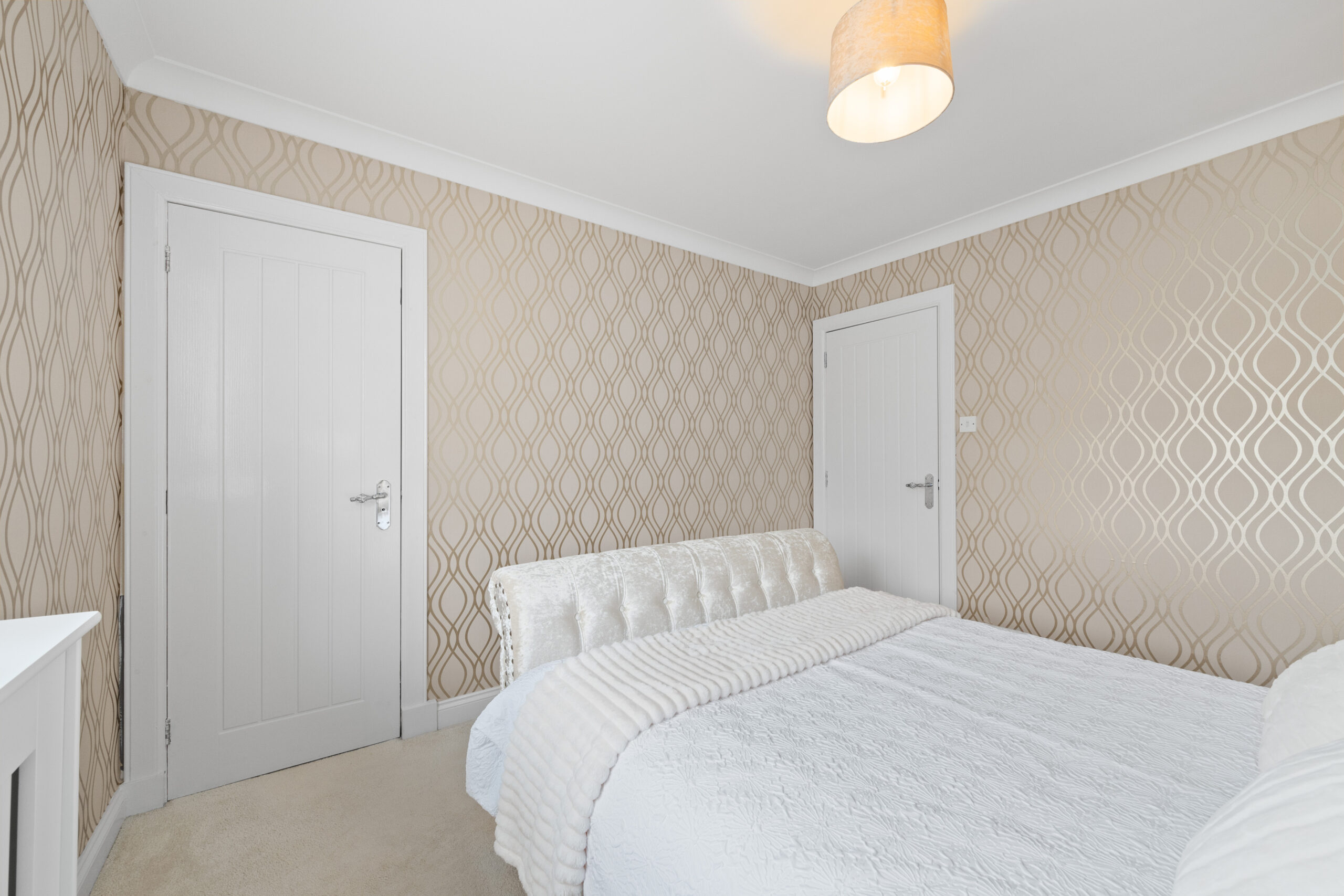 • Schedule Text: Welcome to 31 Nicol Place, a charming main door upper apartment nestled in the heart of Broxburn, West Lothian. This delightful property presents an exceptional opportunity for first-time buyers and astute investors alike, offering all the conveniences for modern living in a sought-after locale. As you step through the double-glazed entrance, a carpeted staircase invites you up to a well-proportioned landing, boasting generous storage space for all your essentials and a handy hatch to the partially floored loft area. The lounge is a haven of comfort, bathed in natural light from the front-facing windows. The room features tasteful neutral decor complemented by a striking feature wallpaper to one wall, a cosy carpet underfoot, and an elegant fire surround-perfect for relaxing evenings in. Adjacent to the lounge, the kitchen, a well-equipped space with a wide range of base and wall units. It includes space for a free-standing cooker, fridge, and washing machine (included as seen, with no warranty) set against splashback tiles and plank-effect vinyl flooring. Bedroom one offers a serene retreat with its lovely bright double space, adorned with very pretty wallpaper and fitted wardrobes over plush carpeting. Bedroom two is a generously sized second room with contemporary grey walls, overlooking the private garden, and ample space for free-standing furniture. The bathroom is presented with a w.c., wash hand basin, and bath complete with a shower above. To the rear, the garden is a low-maintenance paved area with a drying space, ideal for those sunny days. With the added benefits of gas heating, double glazing, allocated parking alongside ample visitor spaces, and your own slice of the outdoors, 31 Nicol Place is a smart choice for anyone seeking a delightful abode in West Lothian. Don't miss out on this splendid opportunity. Extras: Floor coverings, blinds, light fittings (except hallway and lounge) free-standing cooker, washing machine and washing machine. The fire and surround.