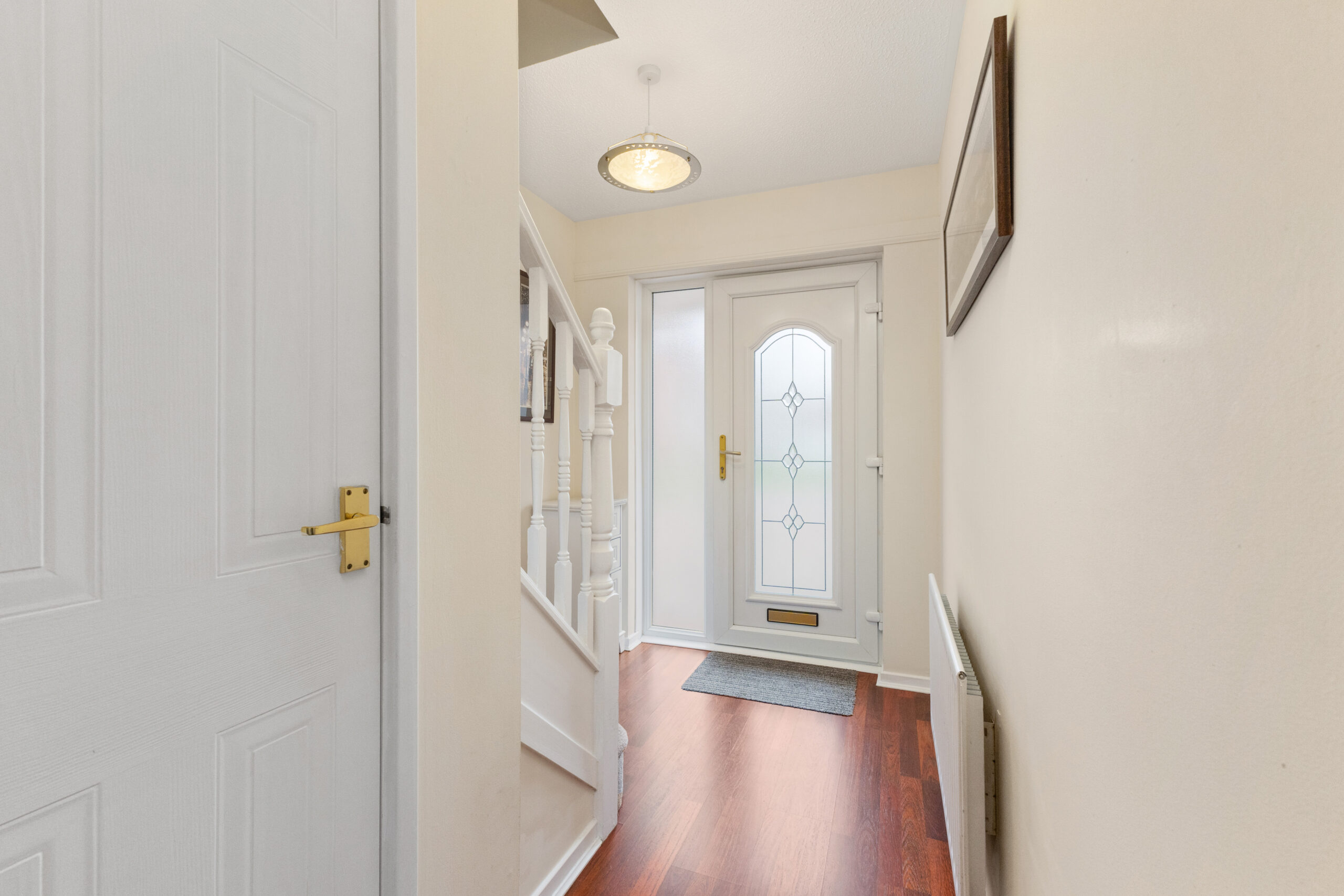 The homes charming exterior and immaculate double monoblocked driveway sets the tone for what lies within. Step through the front door into a welcoming entrance hallway, where a handy under-stair cupboard ensures there's a place for everything. The hallway leads to the lounge, breakfasting kitchen, dining room, and a convenient cloakroom, offering a practical and well-connected ground floor layout.