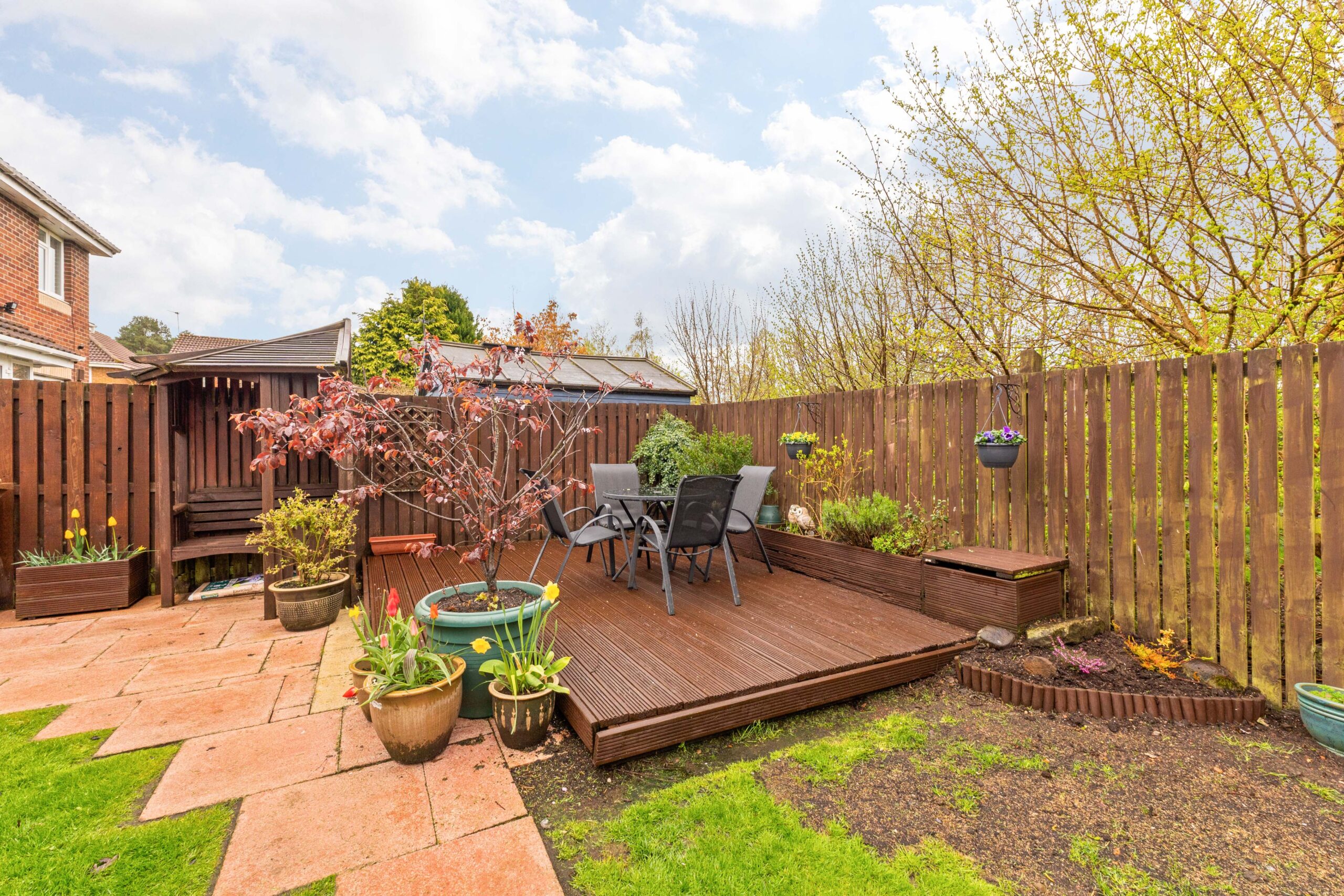 Outside, the home continues to impress. The front garden is neat and low maintenance, framed by mature plants and shrubs that soften the landscaping. The double driveway leads to an integral garage, providing further parking or storage space. To the rear, the fully enclosed garden is a private oasis-safe for children and pets and designed for enjoyment. A spacious lawn offers plenty of room to play, while a paved patio and raised decking area with arbour provide spots to unwind and entertain. A garden shed adds extra storage, and the peaceful woodland backdrop enhances the sense of tranquillity and seclusion, making this garden truly special and rarely available in such a central location.