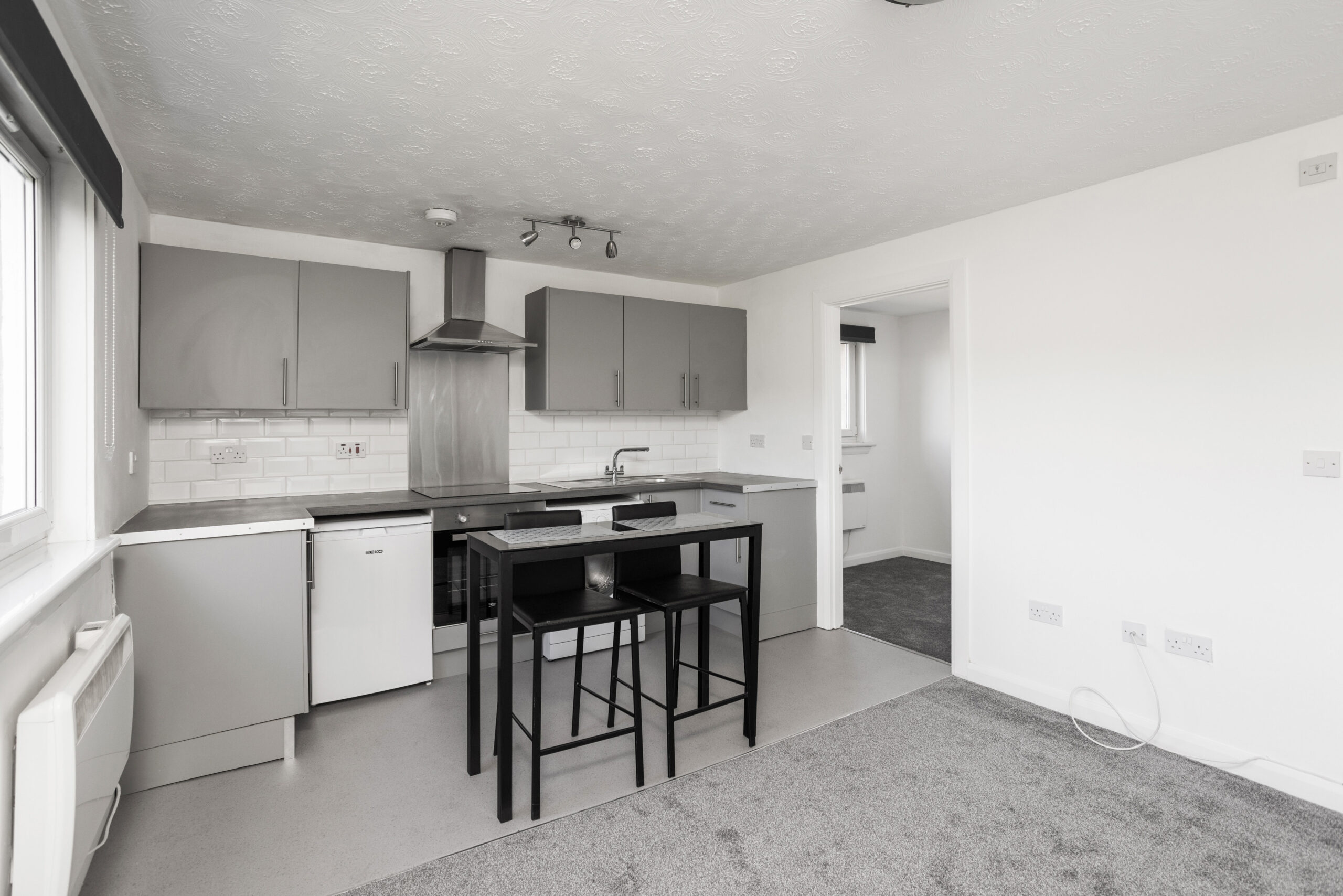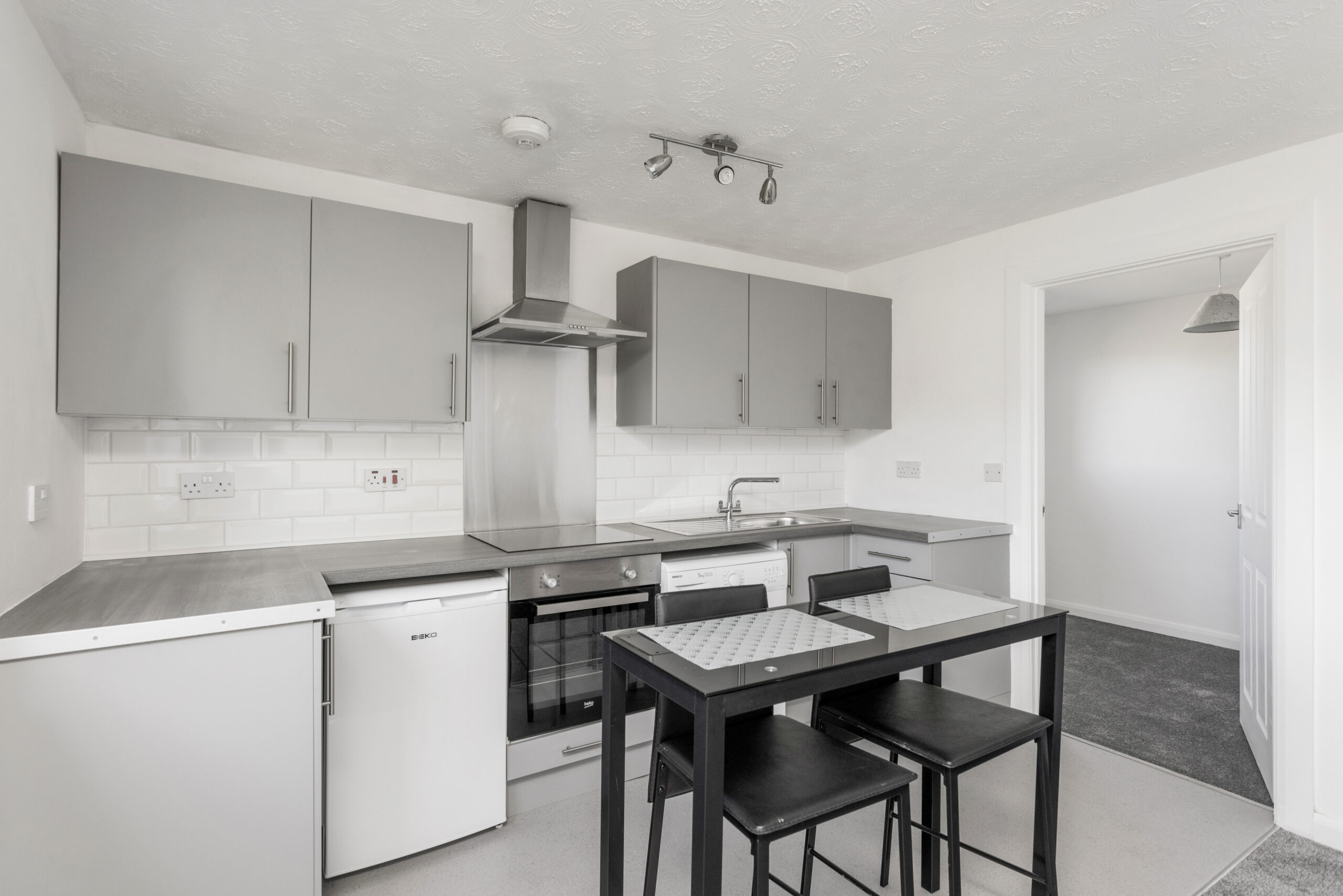 Upon entry, you're greeted by a hallway boasting a capacious storage cupboard, ideal for keeping your living space uncluttered. A door invites you into the heart of the home - an open plan lounge/kitchen/dining area suffused with natural light pouring through two windows. The kitchen is a testament to modern convenience, with sleek light grey units, an integrated oven, hob, and essential spaces for a washing machine and fridge, all included. Chic white metro-style tiles provide a fashionable splashback, complementing the crisp white walls and new flooring throughout, ensuring a fresh, move-in-ready appeal.