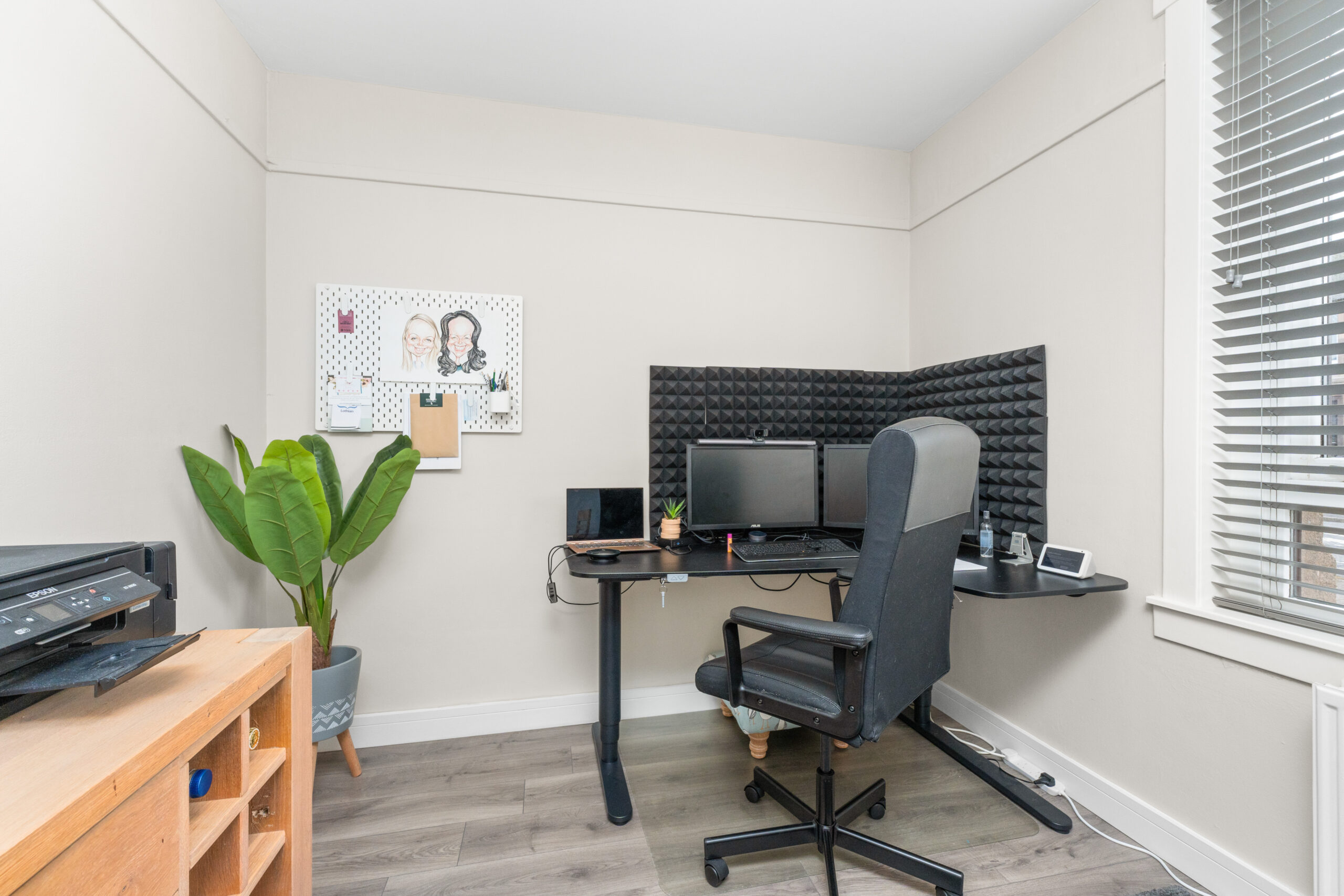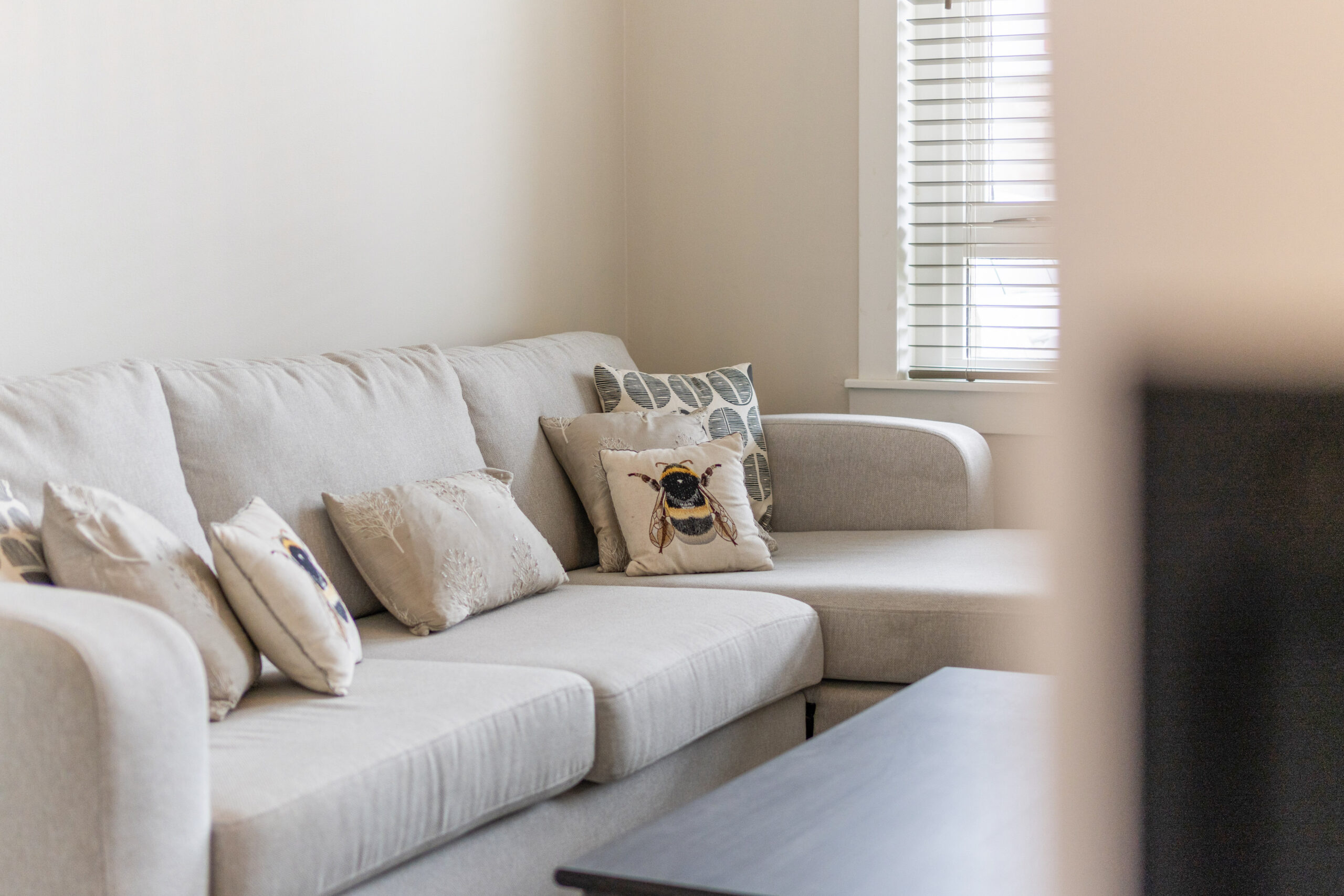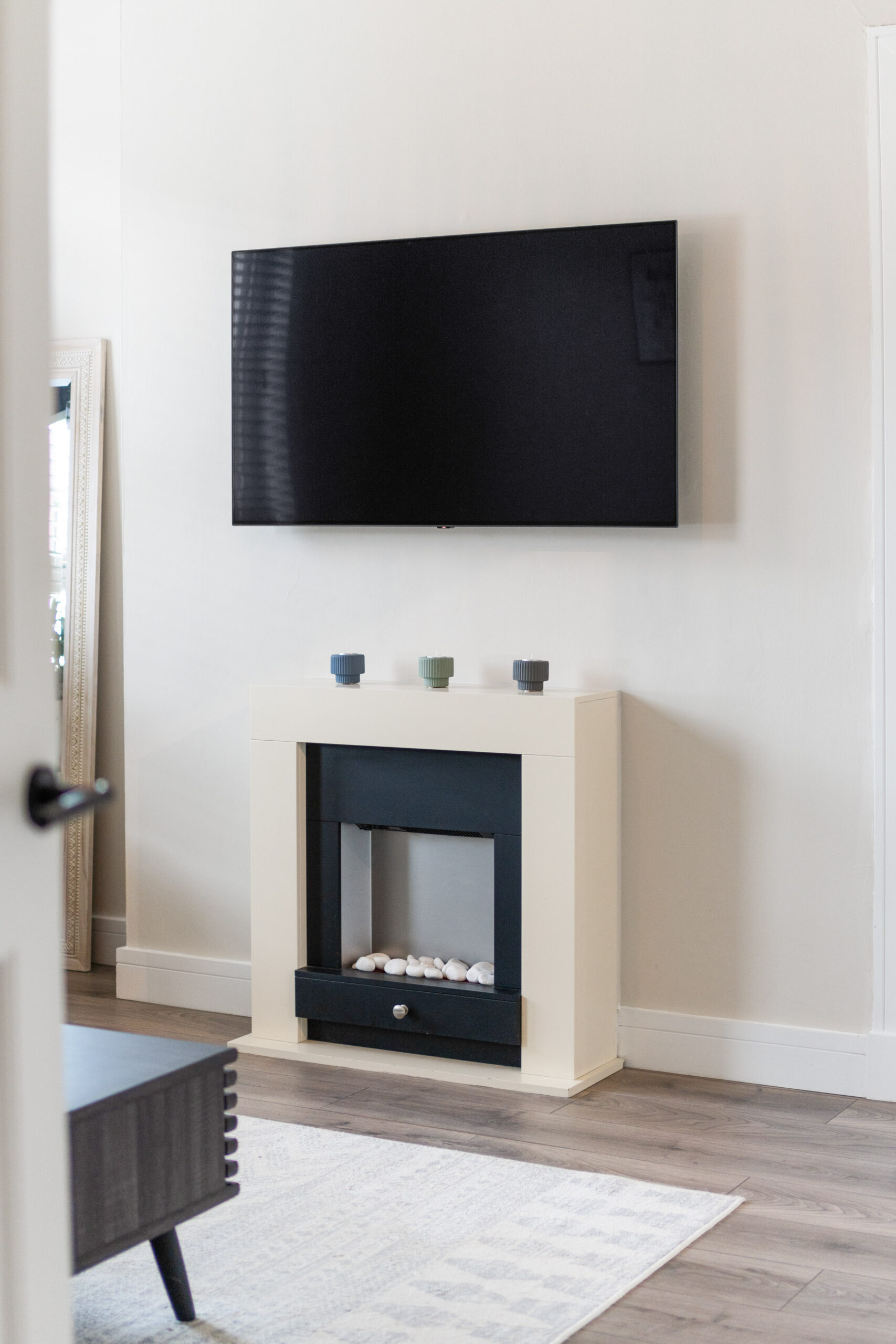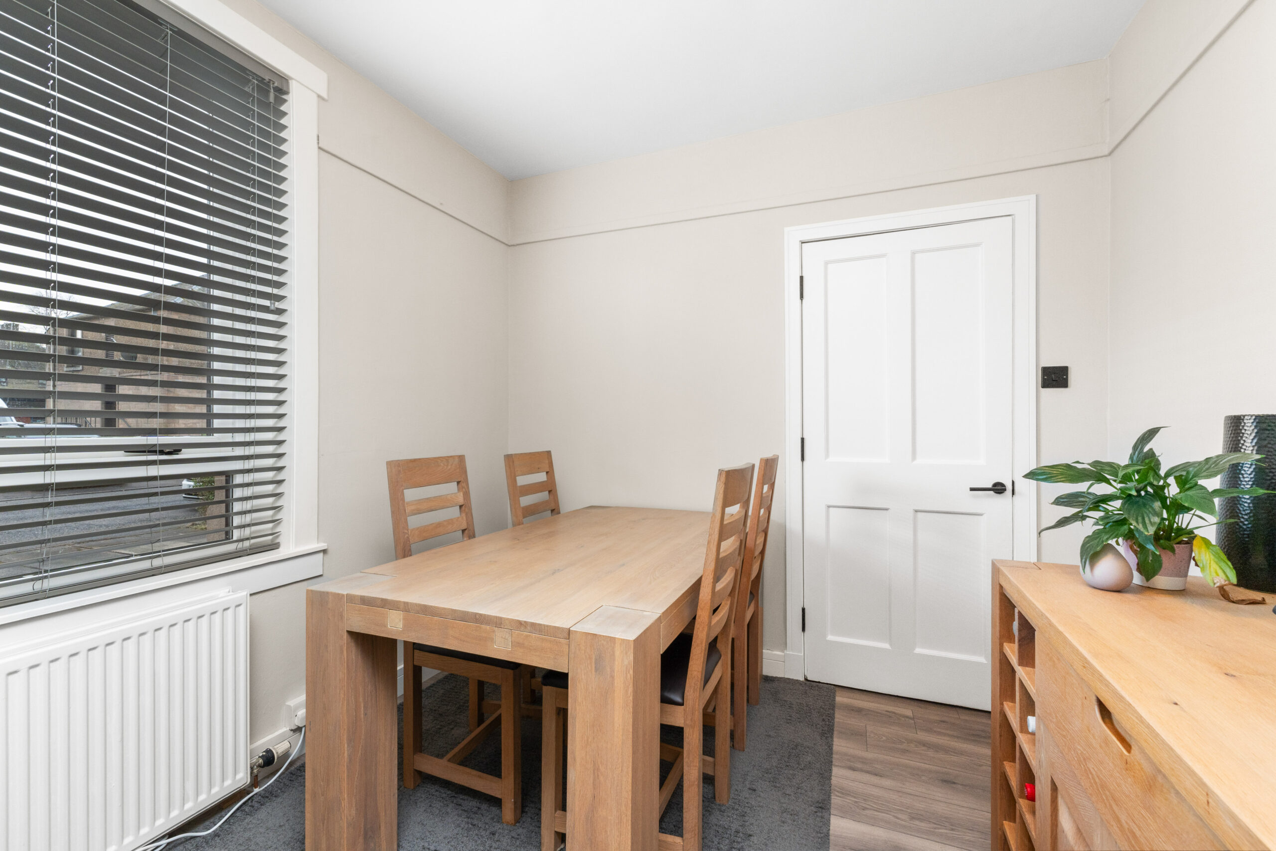 Both bedrooms exude tranquillity. The main bedroom is a generous double, overlooking the rear garden, and features calming neutral tones with a chic accent wall. A fitted wardrobe offers excellent storage, and the niche is perfectly suited for a dressing/makeup table. The second bedroom, positioned at the front of the property, is another spacious double, featuring bright neutral decor, laminate flooring and ample space for free-standing furniture.