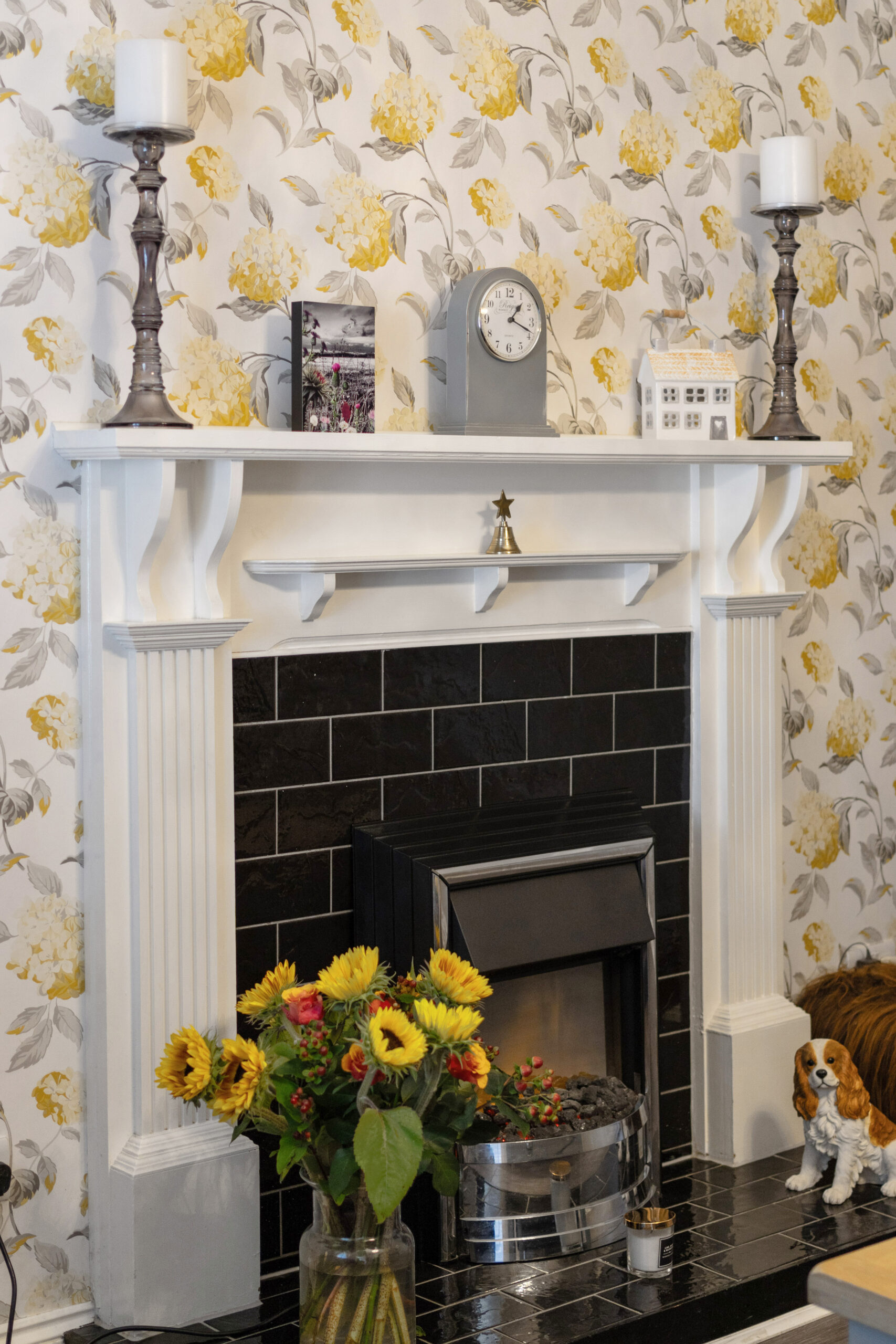 Upon arrival, one is greeted by a driveway leading to the welcoming front door accessed by the shared pathway escorting you inside. An entrance vestibule with a stunning ornate tiled floor unfolds into a hallway that guides you to the first of the two double bedrooms, a cloakroom, and an inviting lounge adorned with half-height panelled walls and eye-catching wallpaper. The lounge, offering serene garden views, features an electric fire with surround, a convenient storage cupboard, and a staircase ascending to the upper landing.