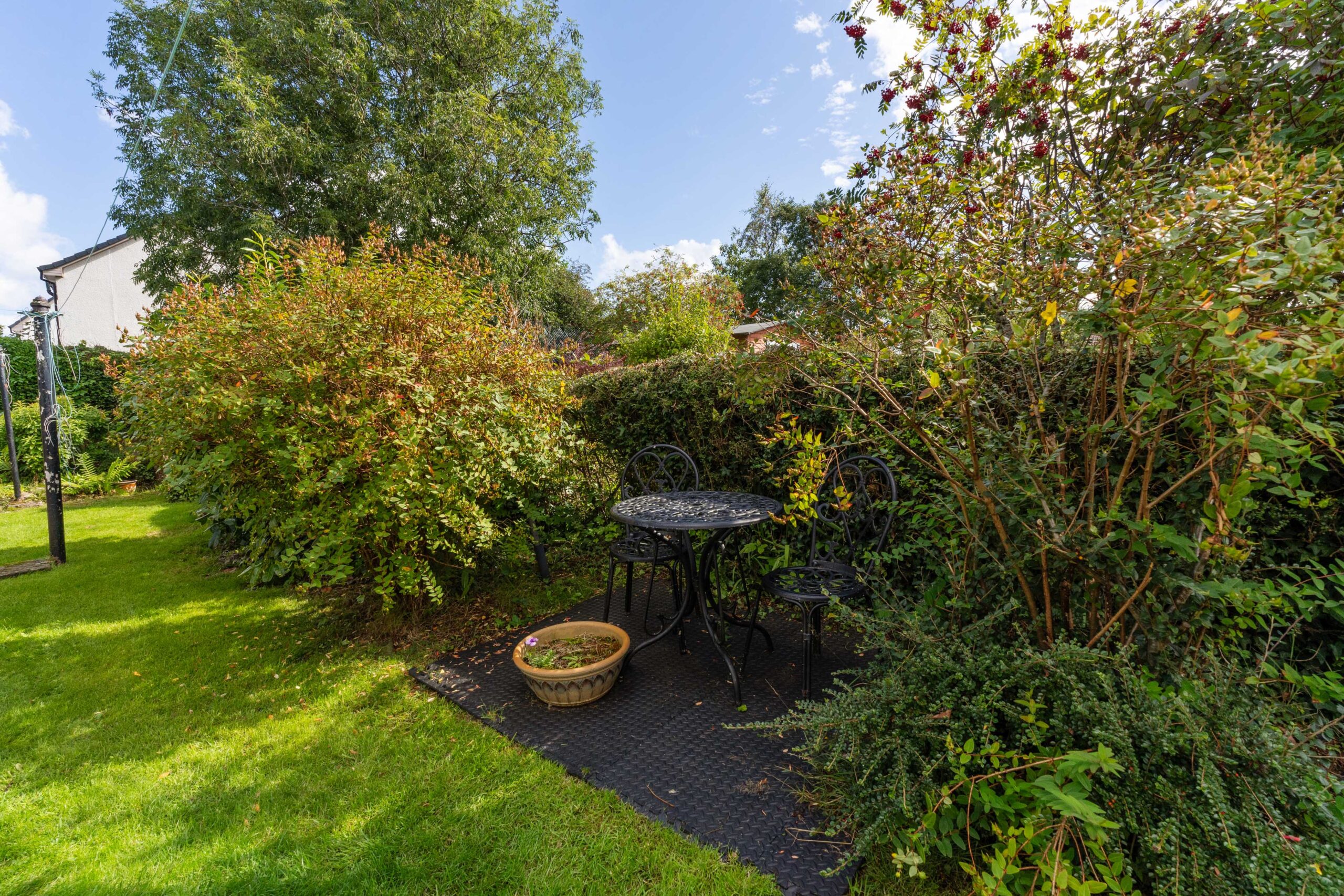 Extras: Floor coverings, window fittings, light fittings, white goods, fire and surround, wardrobes in bedroom 1, garden ornaments and furniture (except the fountain) and the garden shed. The furniture including the sofas (except the lounge furniture and bed in bedroom)can be included as a separate negotiation.