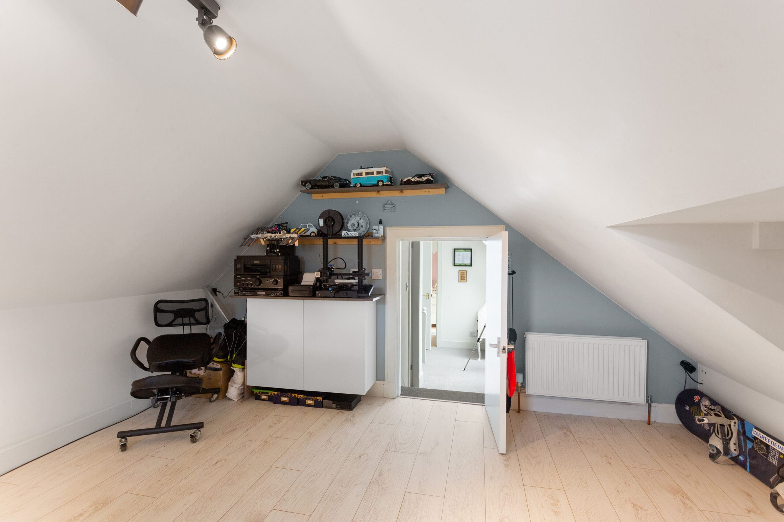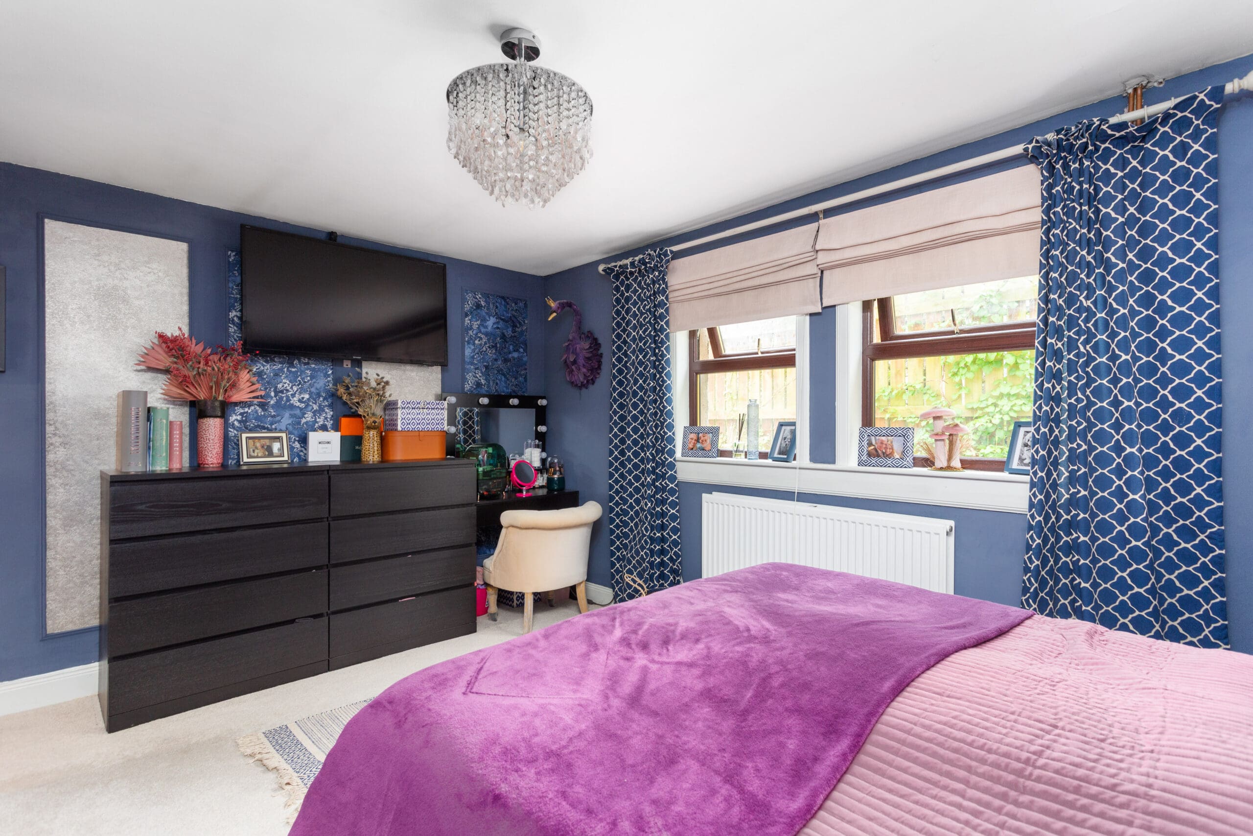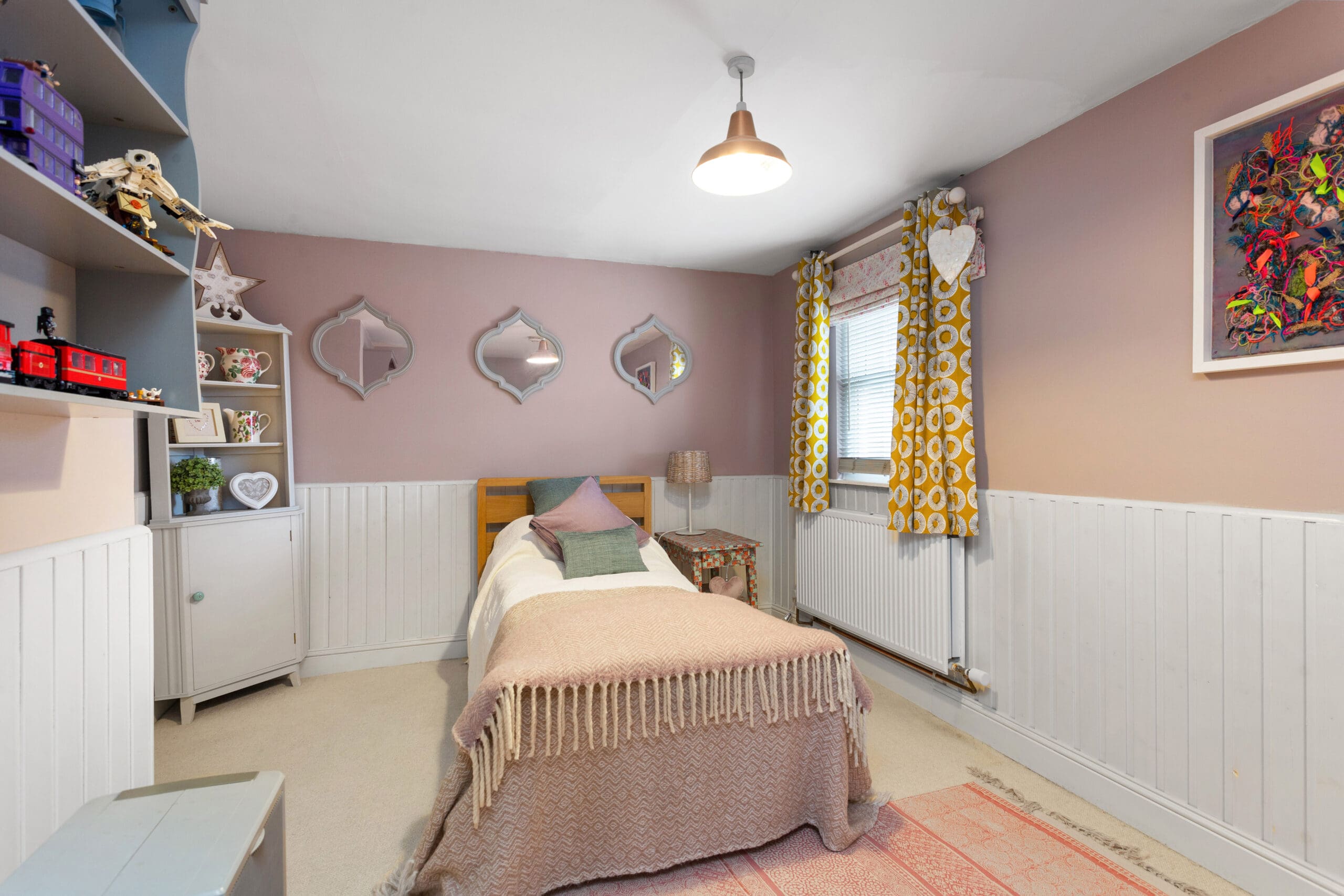 For quieter moments, the snug/conservatory provides a serene escape, with views and access to the enchanting rear garden, a true sanctuary for summertime joy. The family bathroom, resplendent with a crisp white suite, serves the two ground-floor bedrooms. The master suite indulges occupants with a plush en suite shower room and dressing room next door, whilst the second bedroom offers ample space for additional furnishings and enjoys half height wall panelling for that added cosy feel.