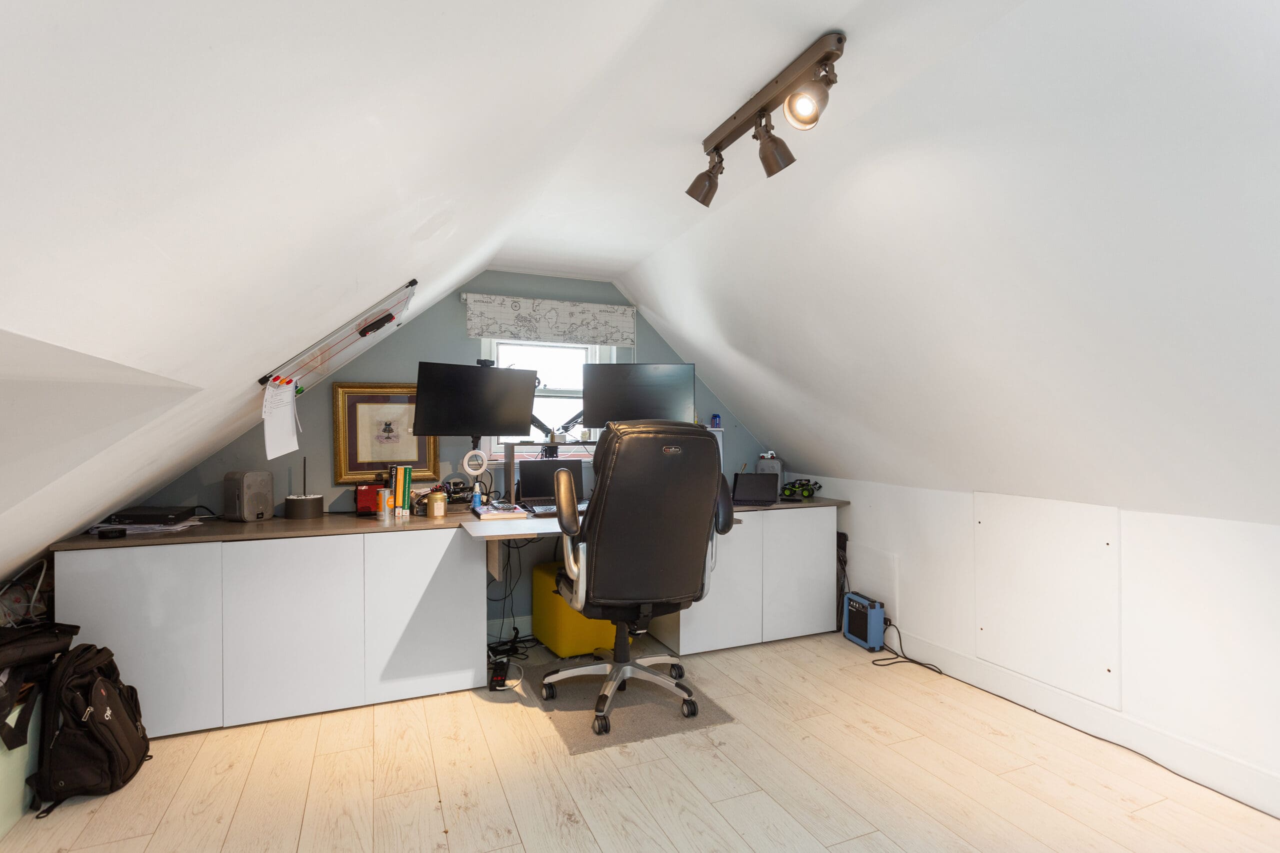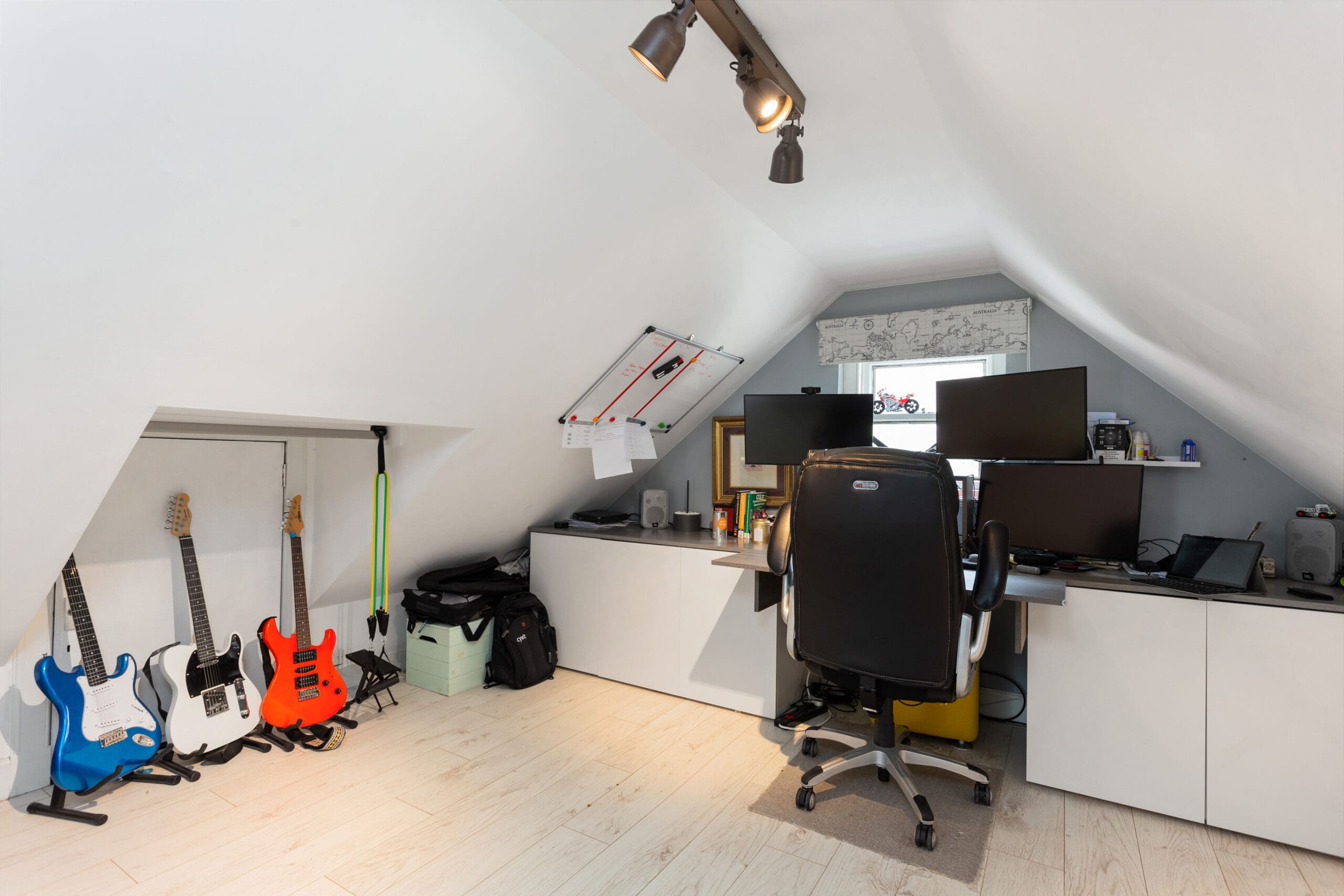 Ascend to the first floor to discover an elegantly styled third bedroom bathed in a soothing pastel pink feature wall and the others are finished in a fresh neutral, along with a study/office area ideal for remote working. A convenient cloakroom and additional storage complete this upper retreat.