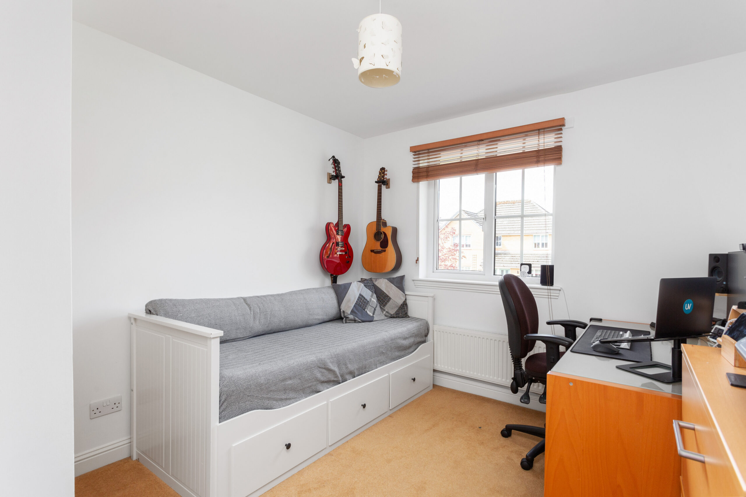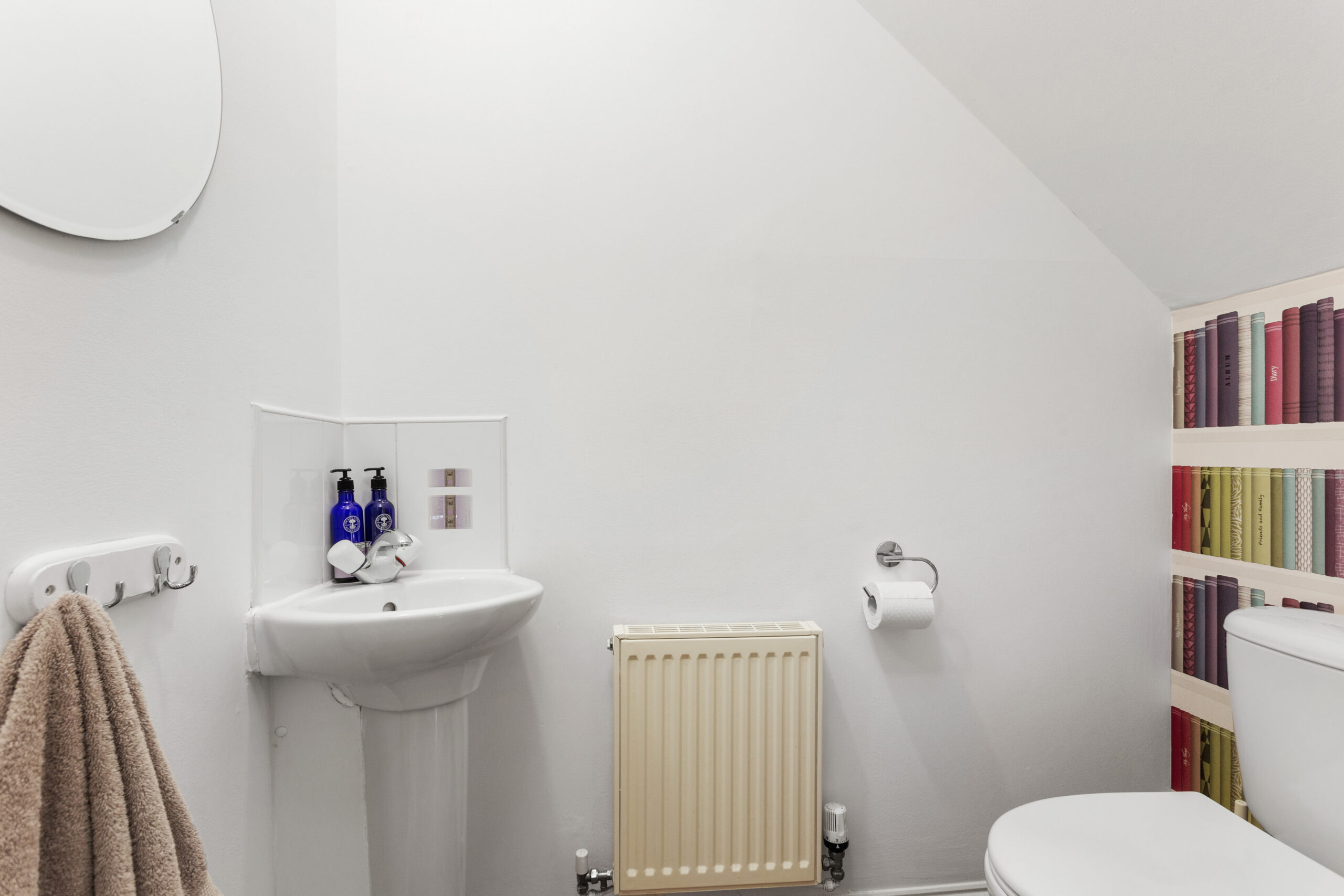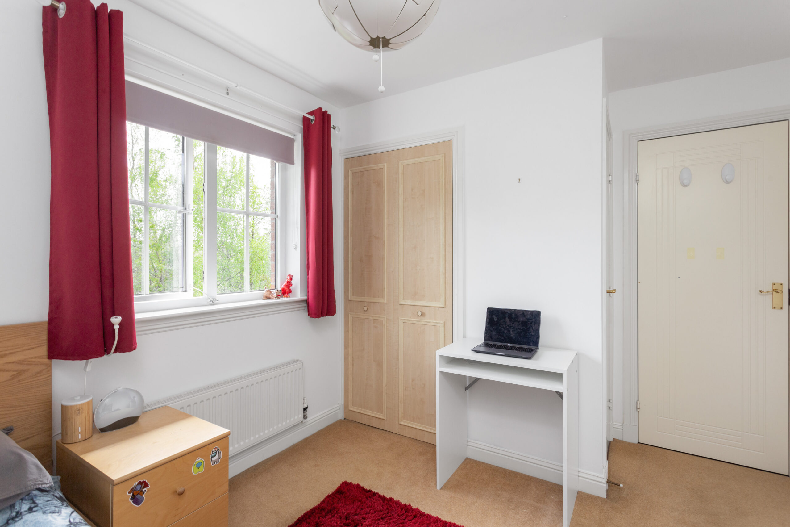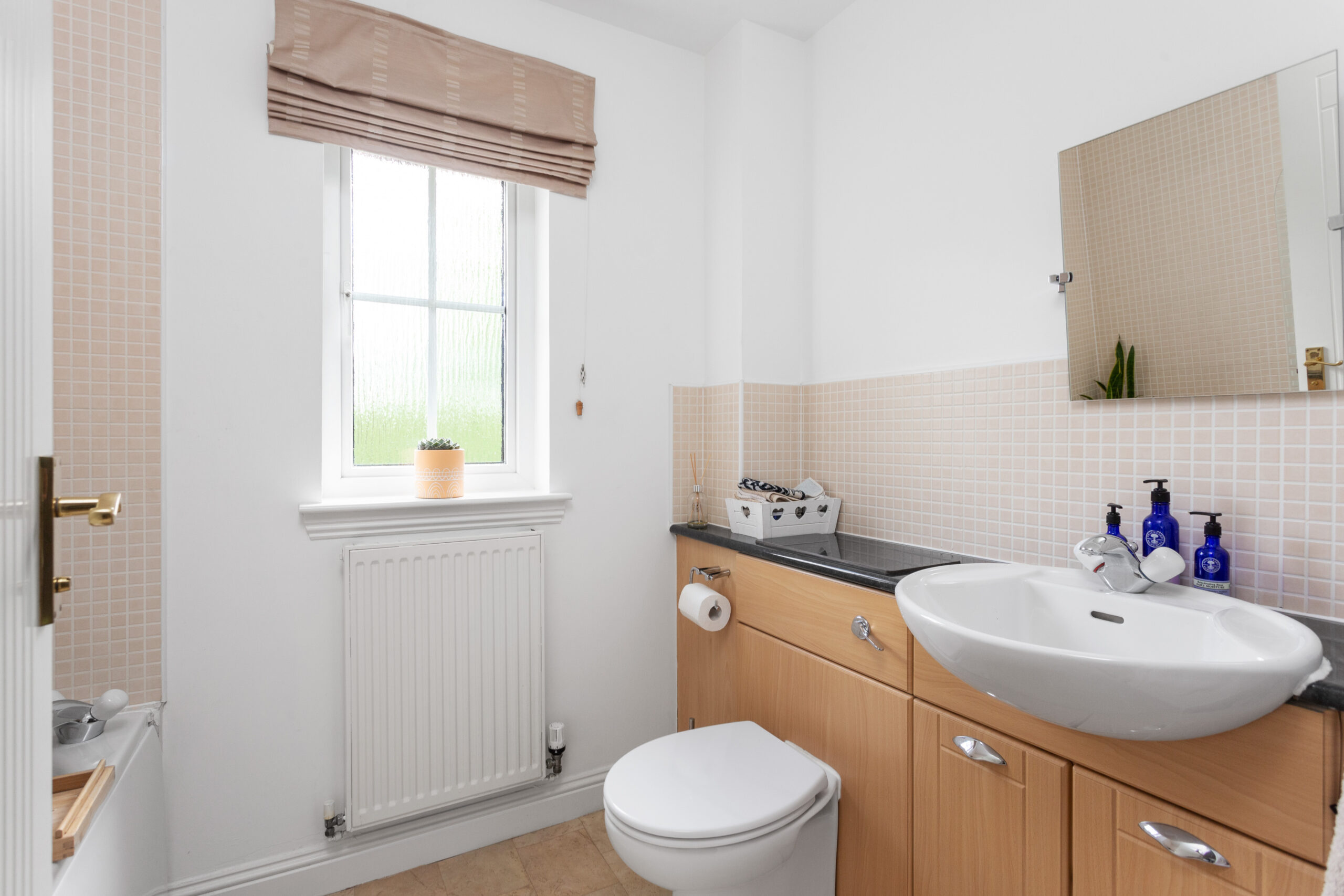 Ascending the carpeted staircase reveals four sumptuous bedrooms, each presenting a fresh, move-in-ready canvas. The master bedroom, a serene retreat, currently houses a king size bed and enjoys double fitted wardrobes and an en suite shower room with crisp splashback tiles. All three other bedrooms are of sizeable proportions and equally as fresh and inviting. The family bathroom with its three-piece suite and shower caters to the rest of the household.