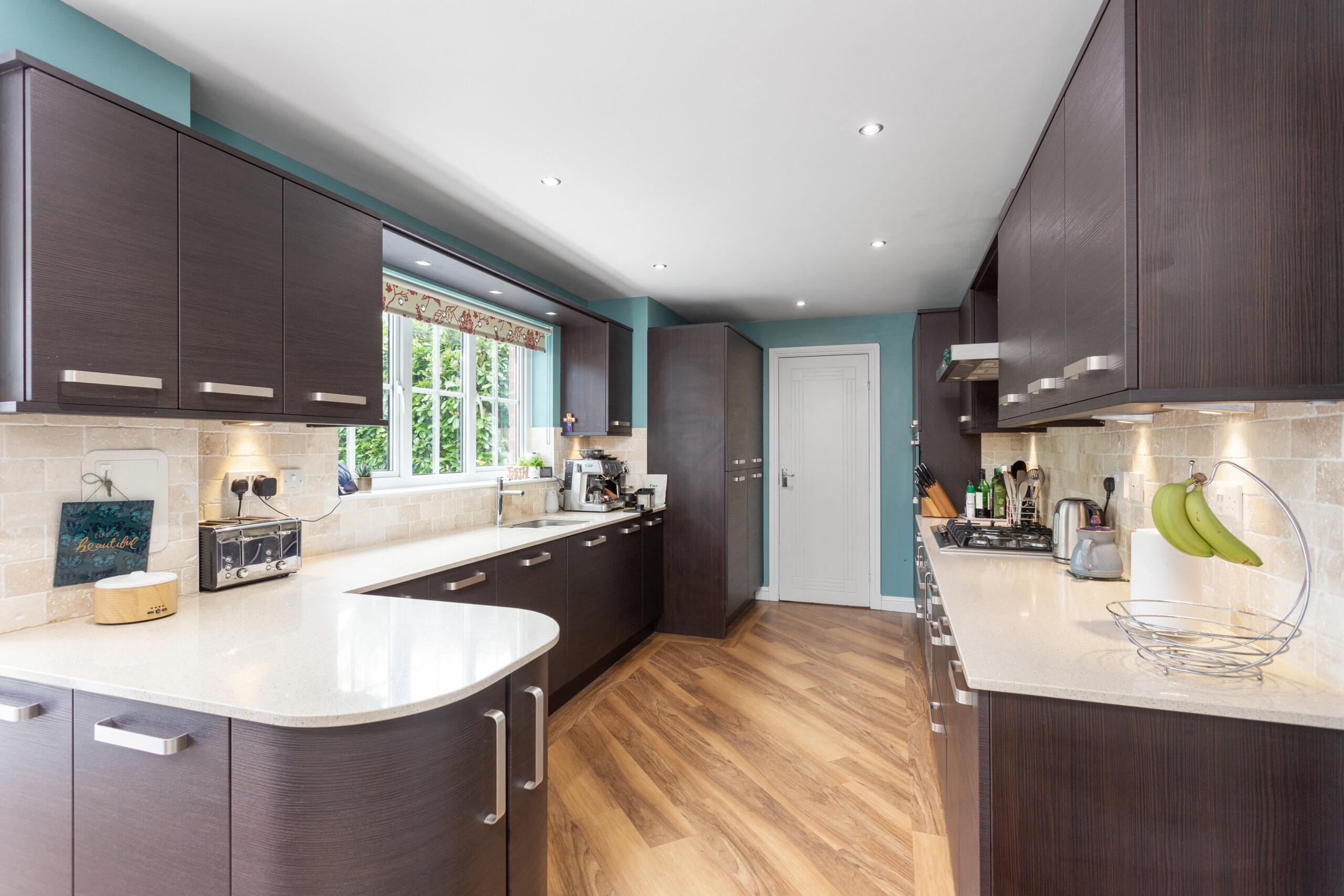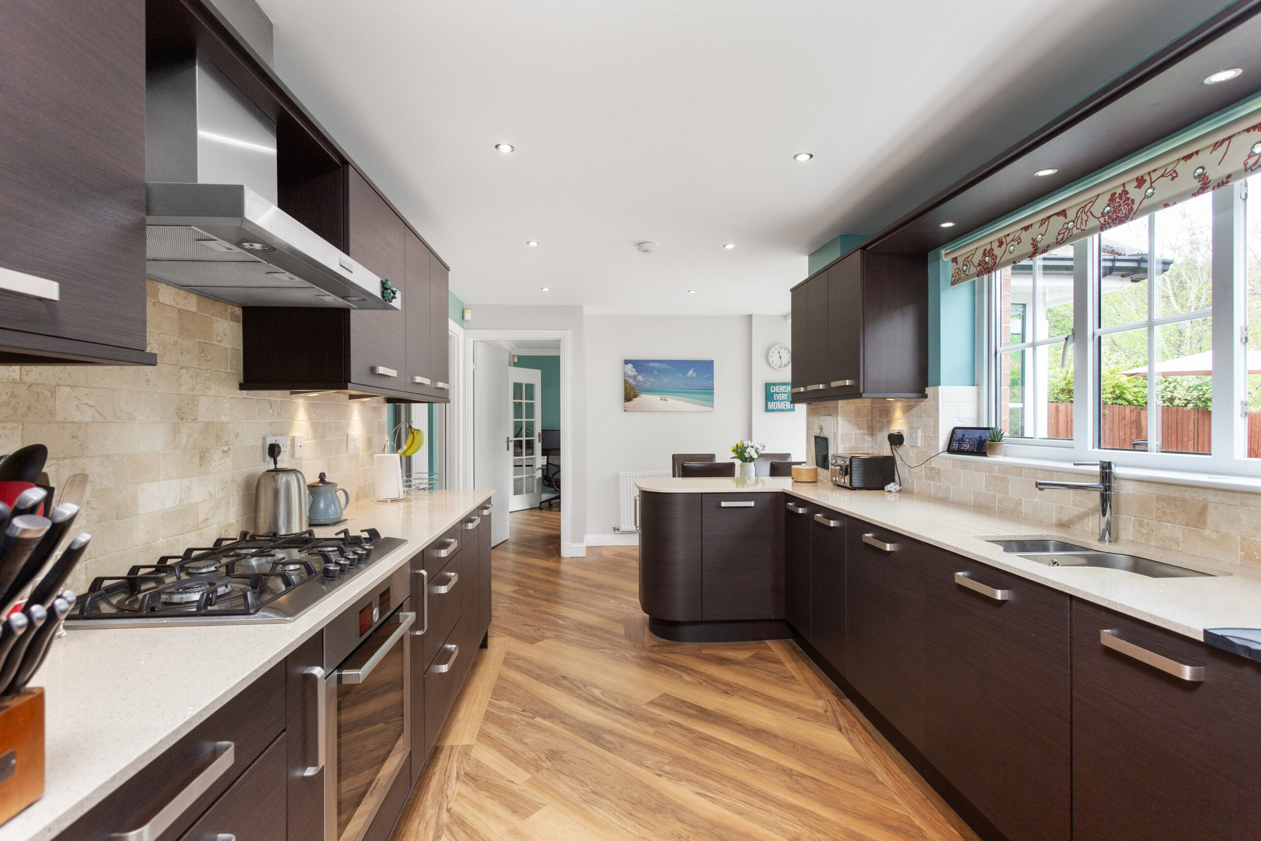 The kitchen is known as the heart of the home, and for good reason with this stunning property. An amazing space to gather, share stories and eat together. A culinary delight, featuring top-tier integrated appliances including a gas hob, oven, dishwasher, and double fridge and freezer, ideal for large families, generous worktops, and spotlights complete the look perfectly. Doors open to the rear garden for a spot of al fresco dining.