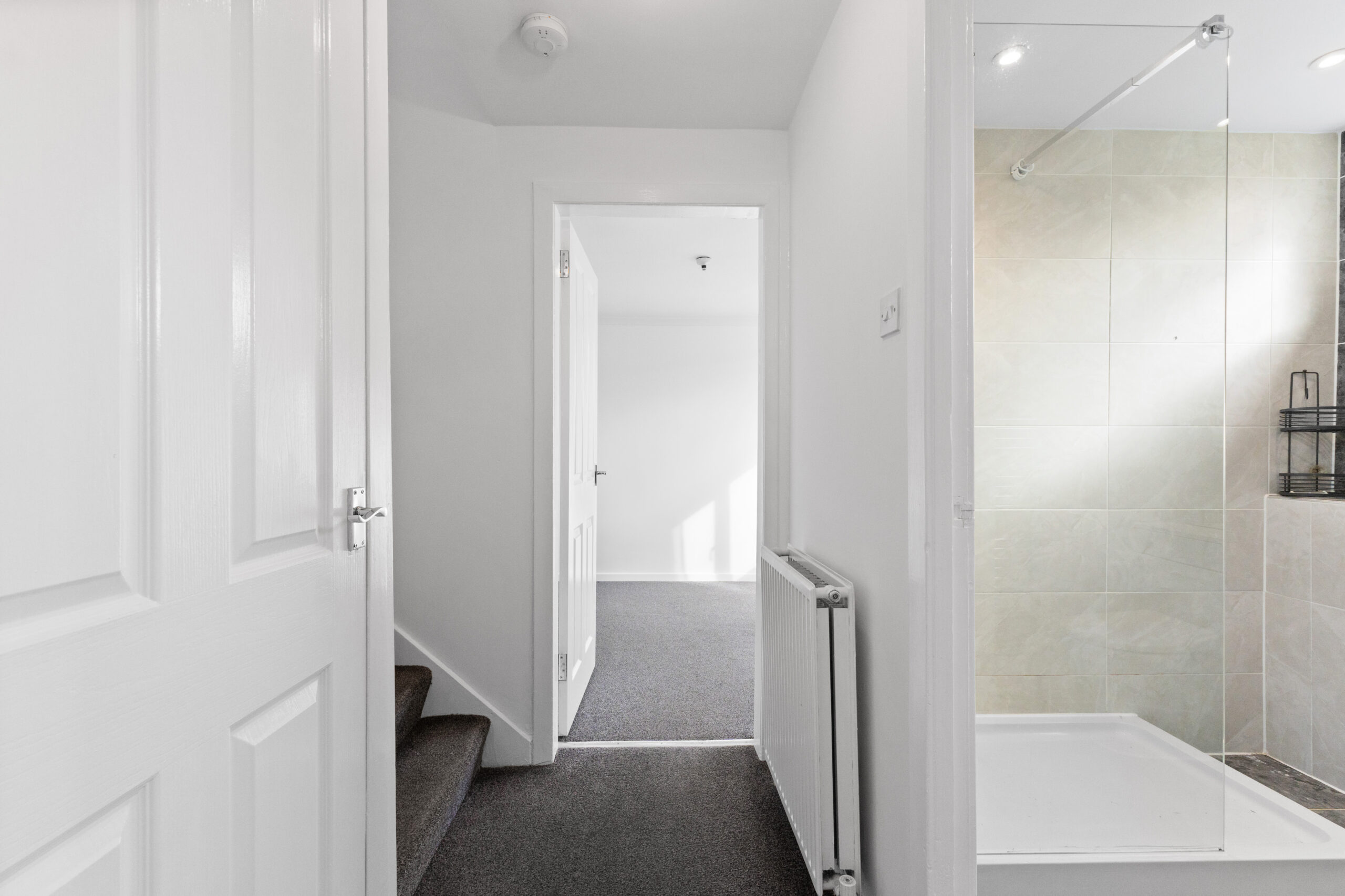 On the ground floor, there are two bright and generous bedrooms, each offering space for free-standing furniture and fitted carpets for comfort. A useful store cupboard provides additional storage.